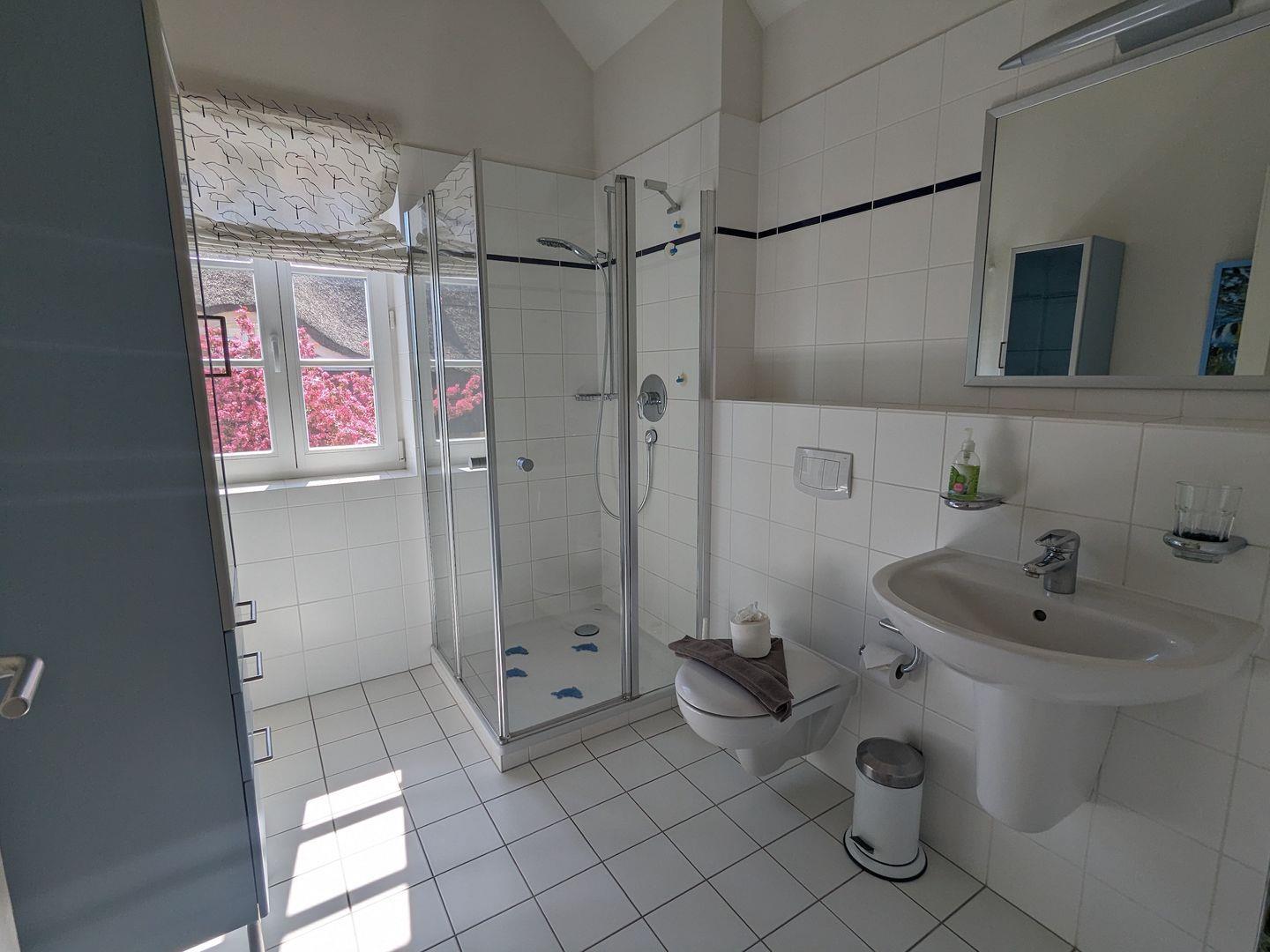 direkt auf den angrenzenden Bodden. Nur der Garten, mit alten Obstbäumen bewachsen und ein Schilfgürtel trennt Sie vom Wasser. An kühleren Tagen verzaubert Sie das Knistern des Kamins nach einem Spaziergang an der aufgewühlten Ostsee und dazu eine heiße Tasse Tee...Jede Jahreszeit ist ein "Boddenblick" wert!