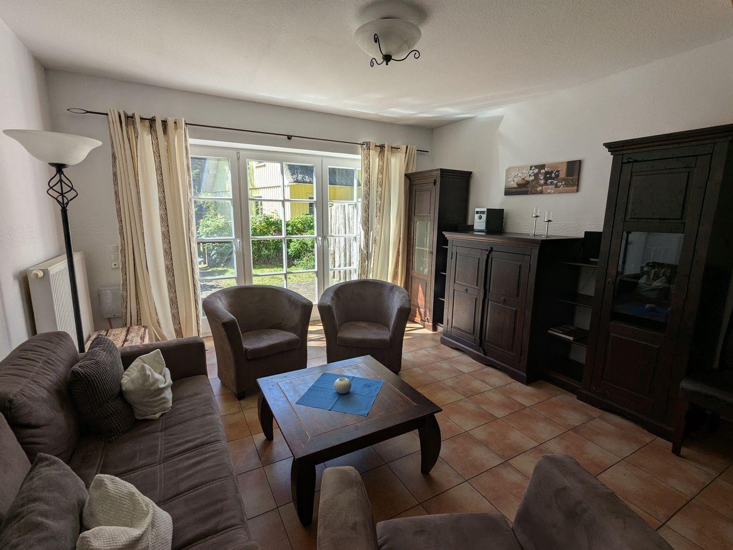 Haus Huckepack (ehem. Bückling) bietet auf 78 m² viel Platz für bis zu 4 Gäste: 4 Zimmer mit 3 Schlafzimmern, Wohnzimmer mit Sofaecke und Kamin/Ofen. Die offene Küche zum Wohnbereich ist u. a. mit Ceranherd, Backofen, Mikrowelle und Spülmaschine ausgestattet. Zwei Badezimmer mit bodengleichen Duschen, WLAN, Sat-TV sowie Terrasse (geschlossen) mit Gartenmöbeln und Gartenblick. Privatparkplatz, Haustiere erlaubt, Nichtraucher.