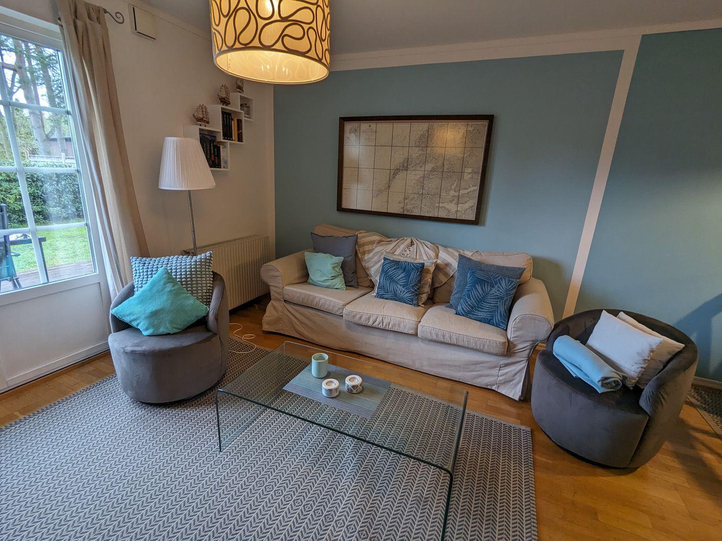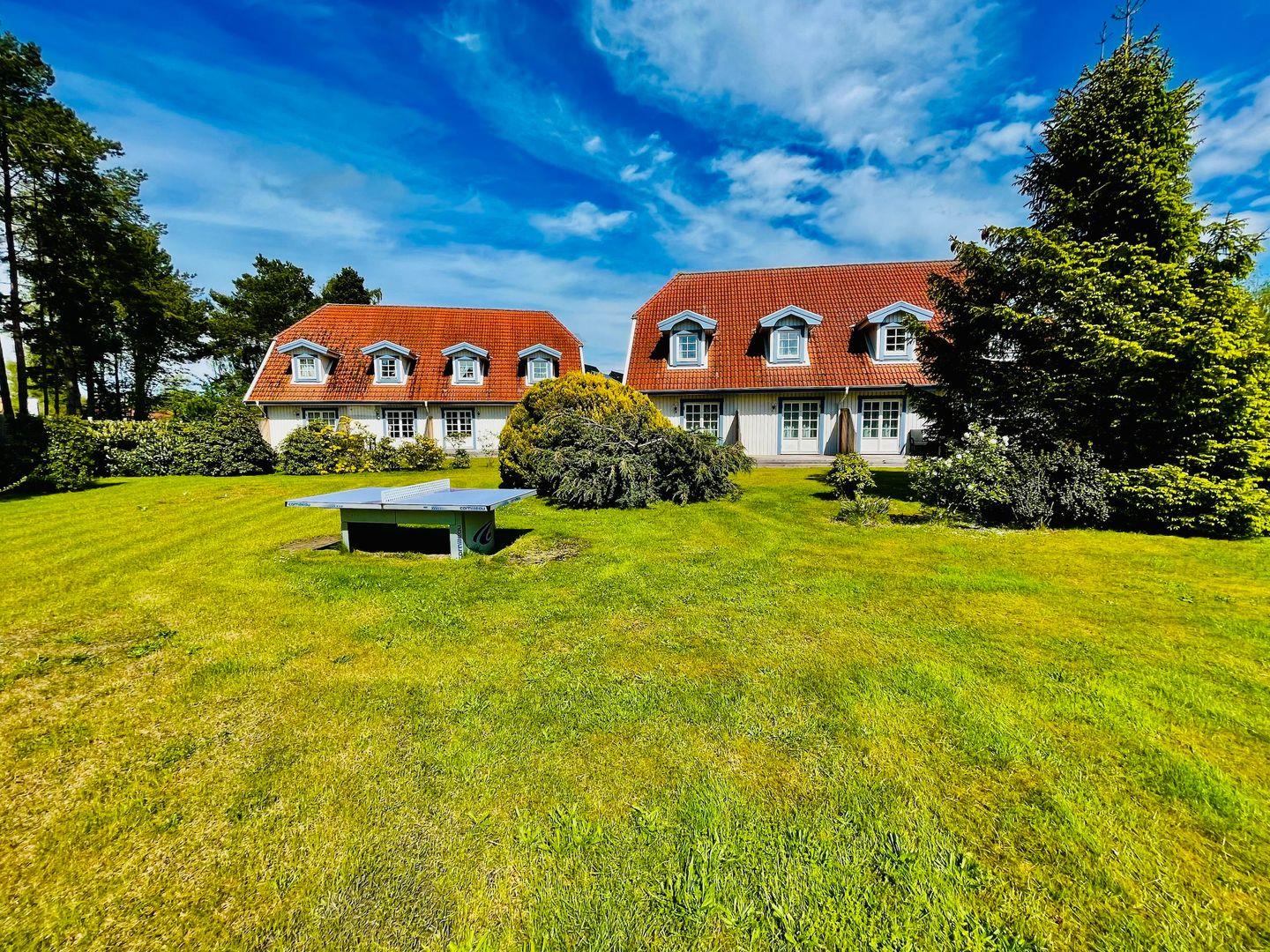Das im Schwedenstil gebaute Reihenhaus "Marla" bietet eine sonnige Terrasse und eine große Gemeinschaftswiese für die Sommertage.Eine kleine Sauna, zur alleinigen Nutzung, steht Ihnen für die kühlere Jahreszeit zur Verfügung. Nicht weit ist es bis zum Bodden-Badestrand, zum Einkaufen, zu Cafés oder Restaurants. Auch den Darßer Wald erreichen Sie fußläufig. Mit dem Fahrrad brauchen Sie nur ca. 35 Minuten bis zum wild-romantischen Darßer Weststrand.