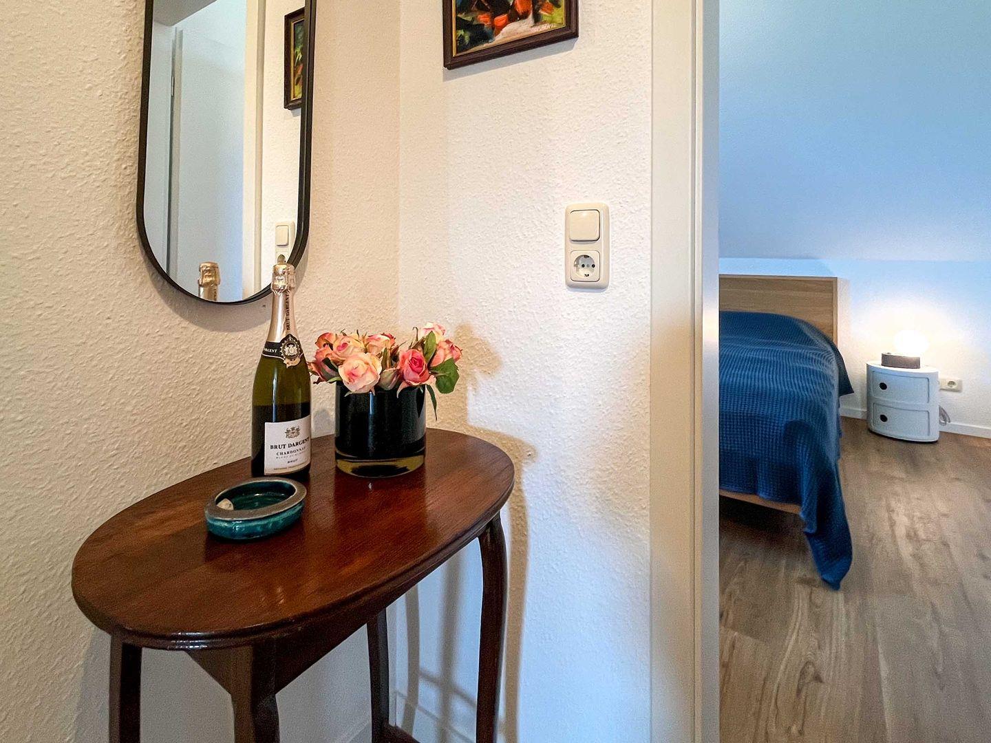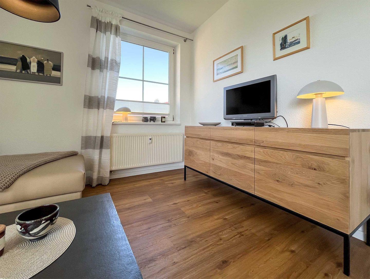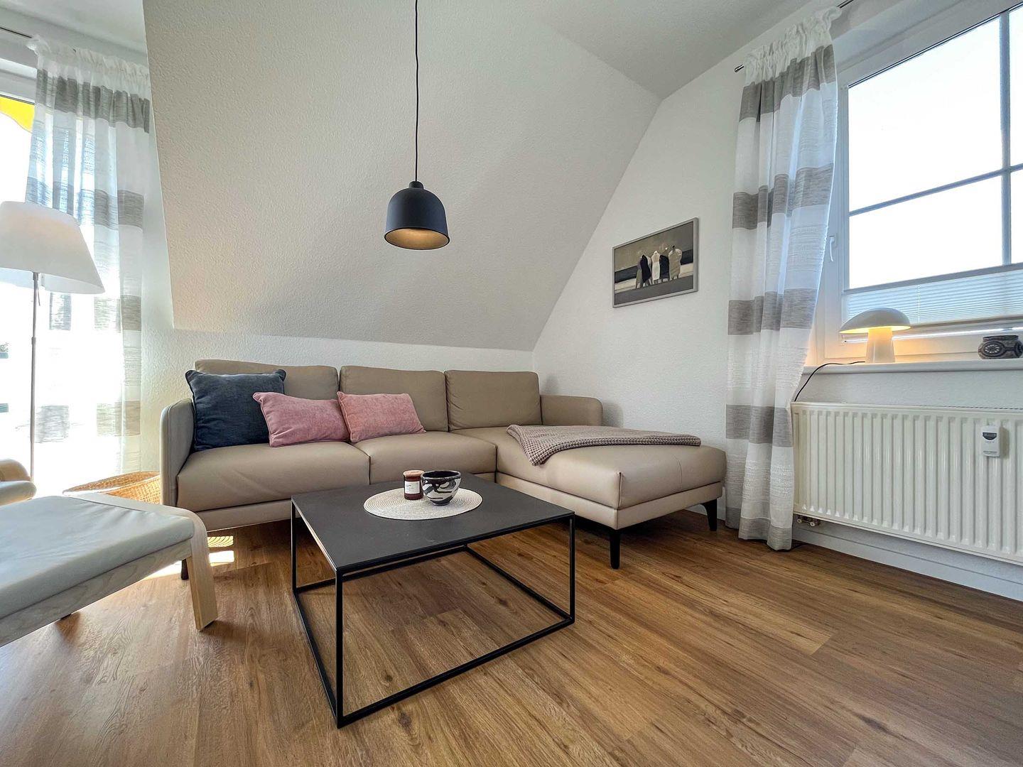 Die Wohnung Sonnenglück im Herzen Borns ist ein ganz individuell und mit vielen liebevollen Details eingerichtetes Feriendomizil. Wohnung im ersten Stock,Sat-TV, Stereoanlage mit Radio und CD,WLAN in Planung , gut ausgestattete Küche, Herd mit Ceranfeld und Backofen, Geschirrspüler,Schlafzimmer mit Doppelbett, Bad mit Dusche, Abstellraum, Nichtraucherwohnung. In unmittelbarer Nähe befindet sich einReiterhof und das Gut Darß. Über einen Schleichweg gelangen Sie in fünf Minuten zum Bäcker.