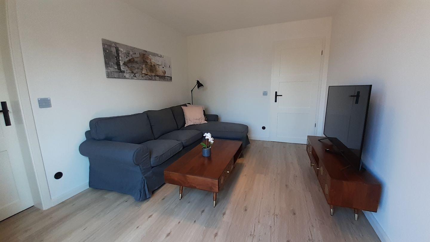 Flatscreen-Fernseher, einem großen gemütlichem Sofa und einem Kamin, einer