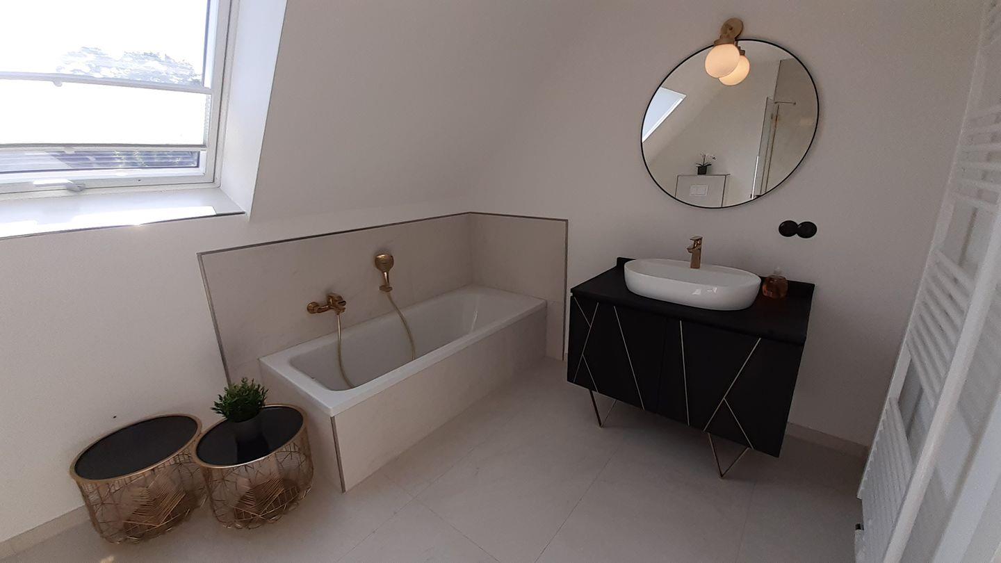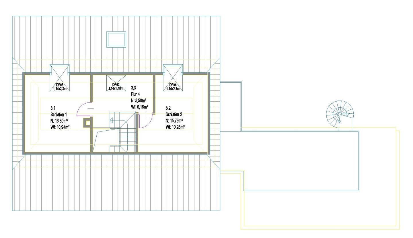 Badewanne. Im 2. Obergeschoss befindet sich ein weiteres Schlafzimmer mit einem