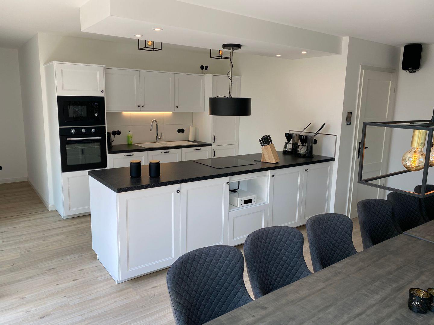 angrenzenden vollausgestatteten lichtdurchfluteten Küche mit zwei