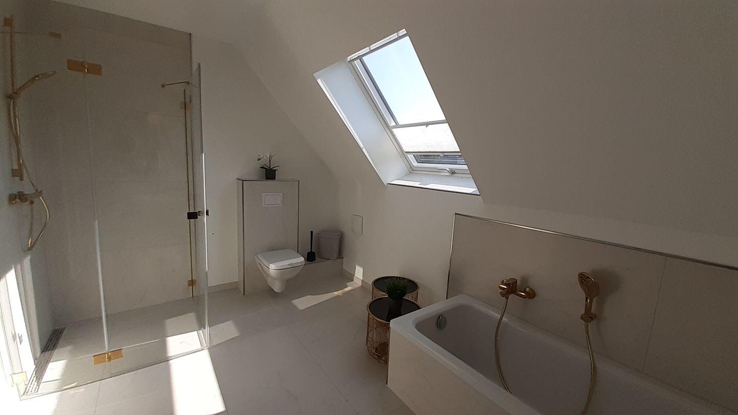 ebenfalls im 1. Obergeschoss, jeweils mit einer Dusche und in einem, eine
