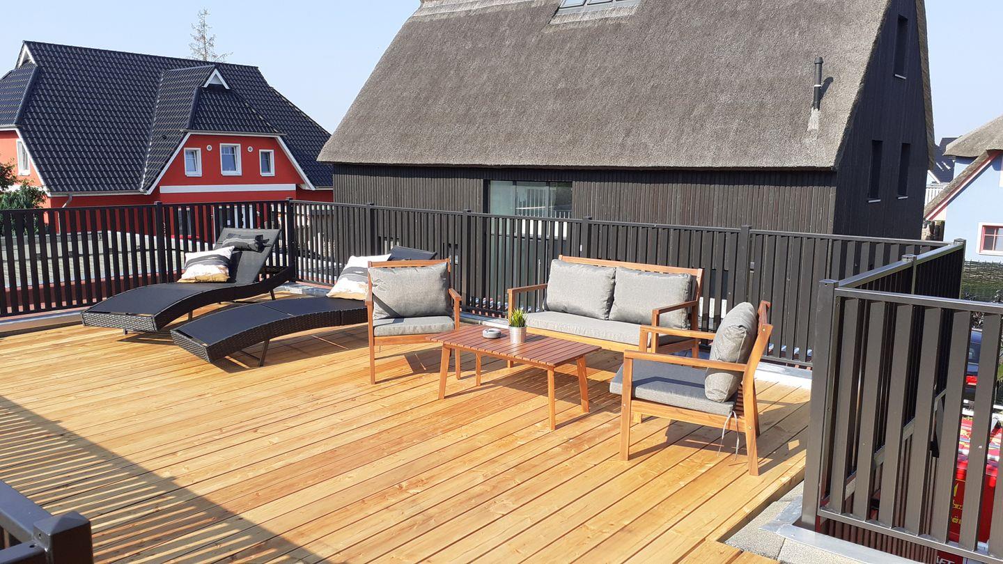 Dachterrasse lädt mit Sonnenliegen und Loungemöbeln zum Verweilen ein. 6x