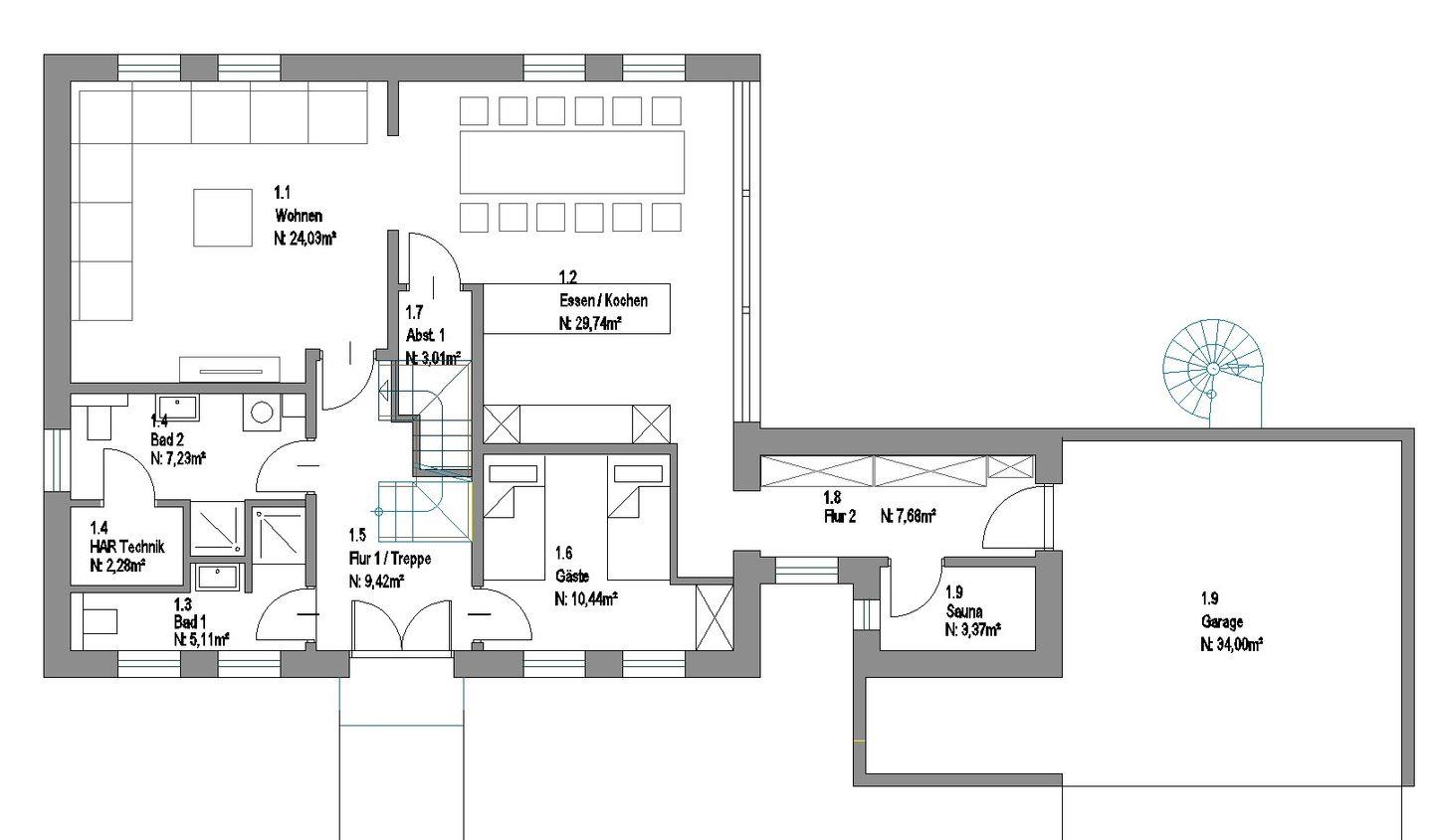 sowie zwei Bäder mit jeweils einer Dusche befinden sich im Erdgeschoss. Über