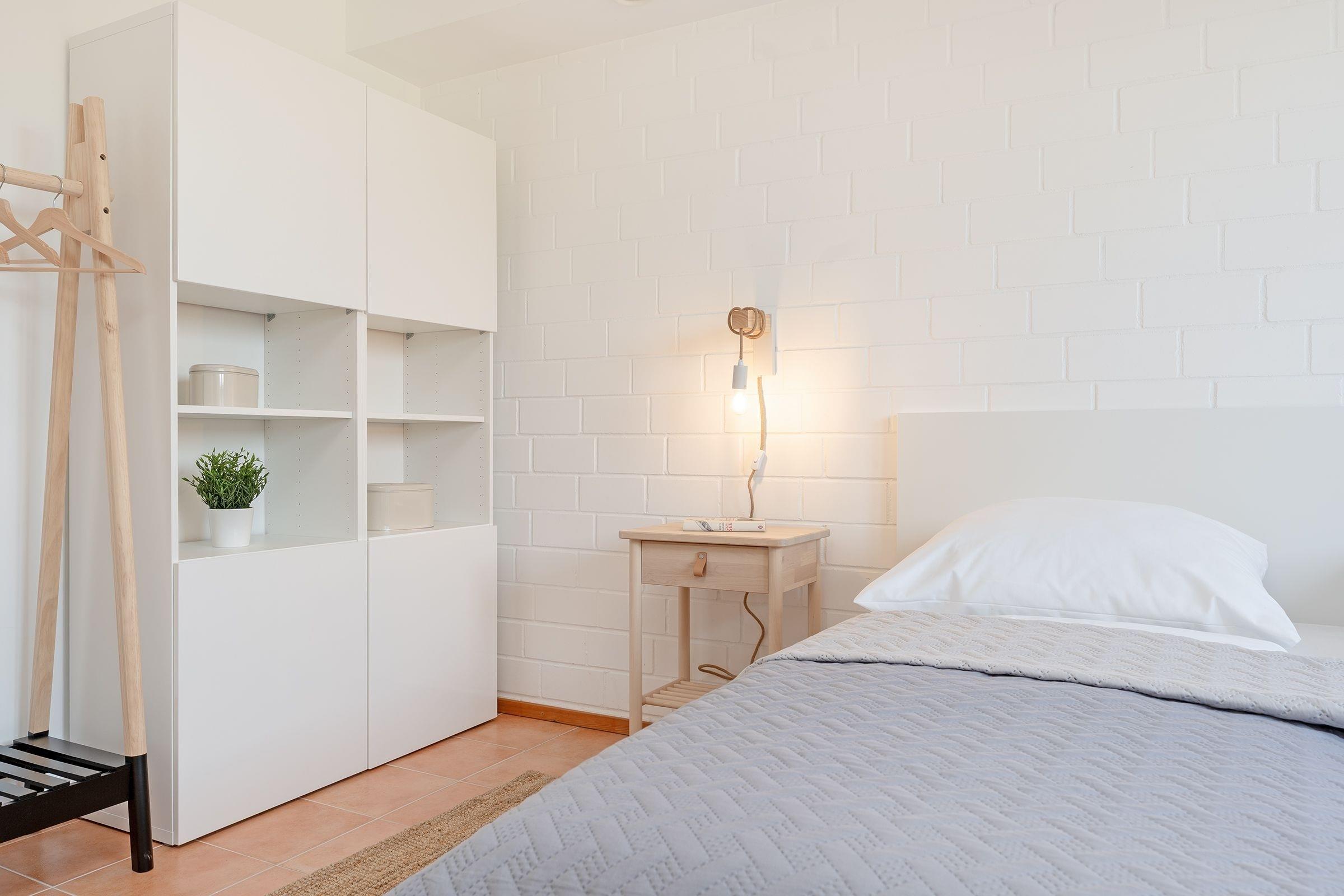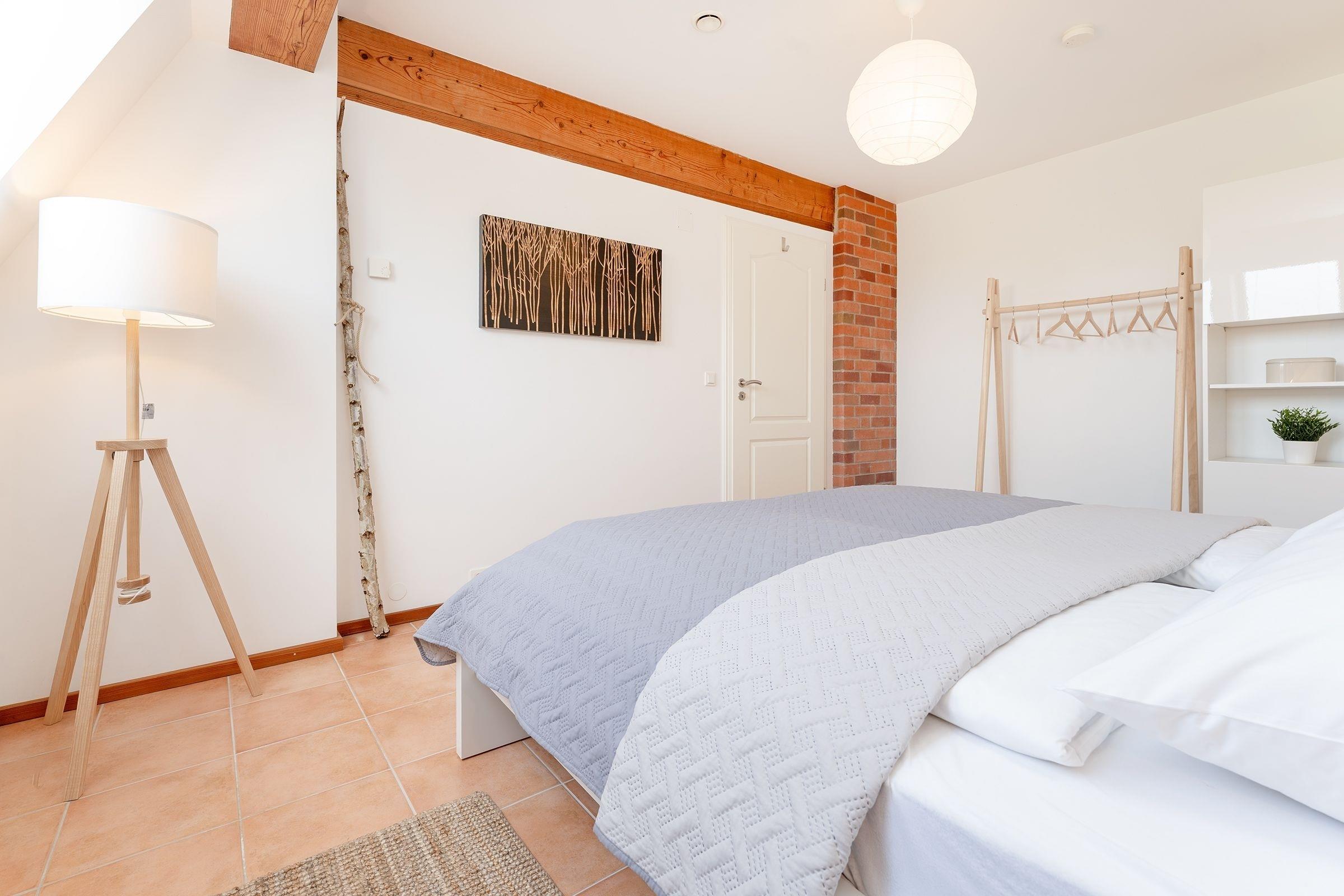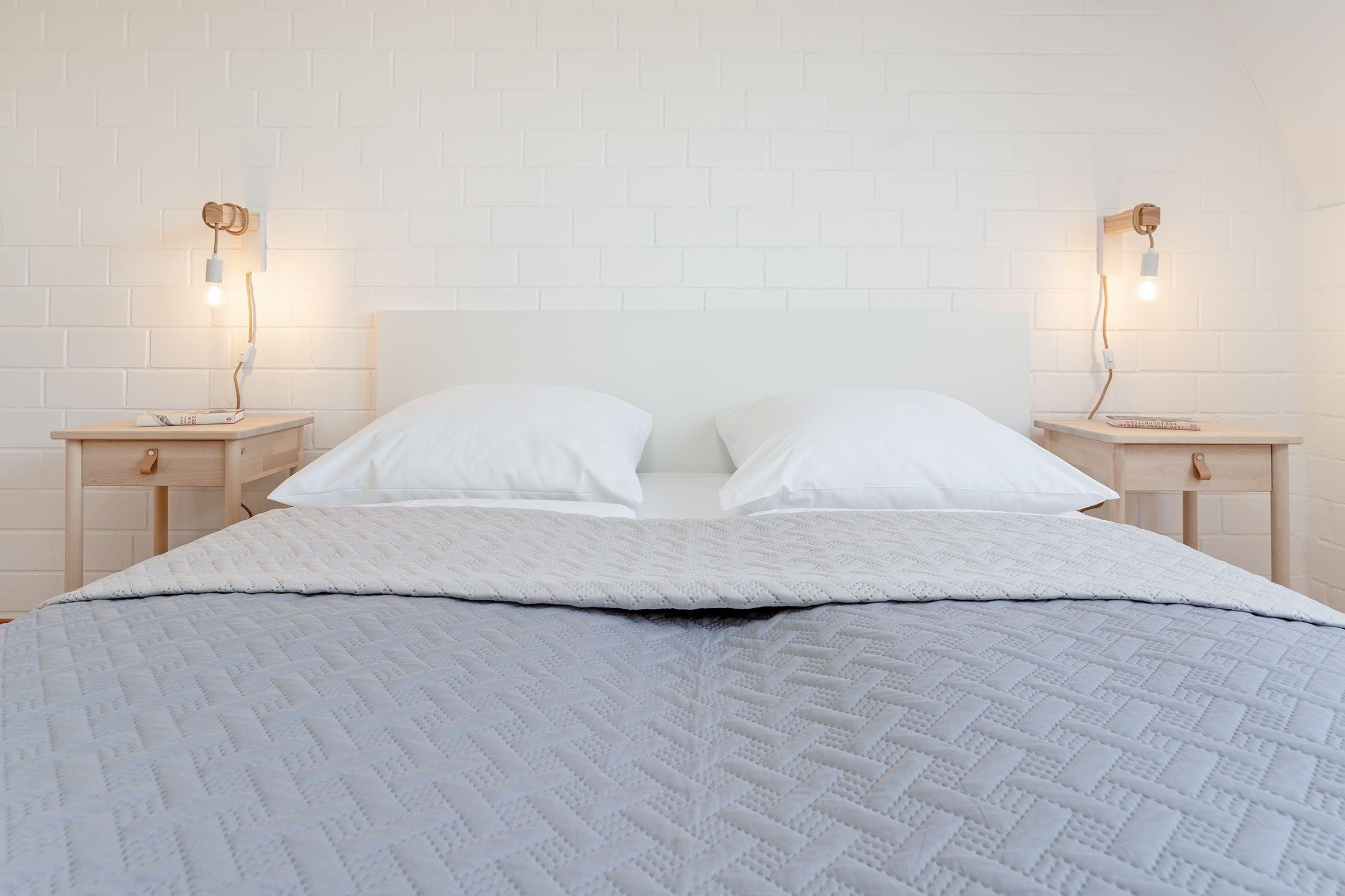 Schlafzimmer: 1 Doppelbett (180x200 cm), Kleiderschrank, Verdunkelung: Verdunkelungrollos, Platz für ein Babybett vorhanden