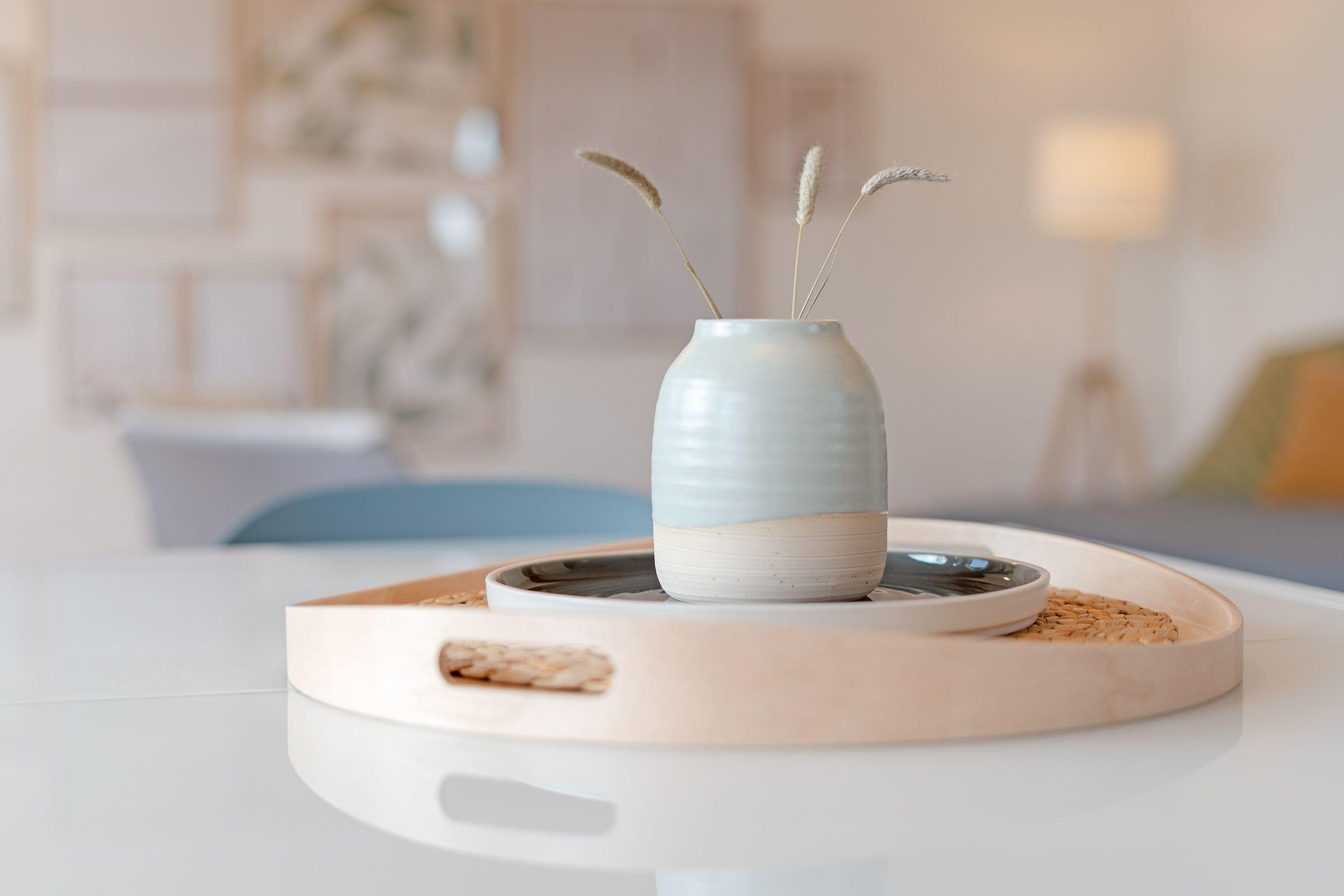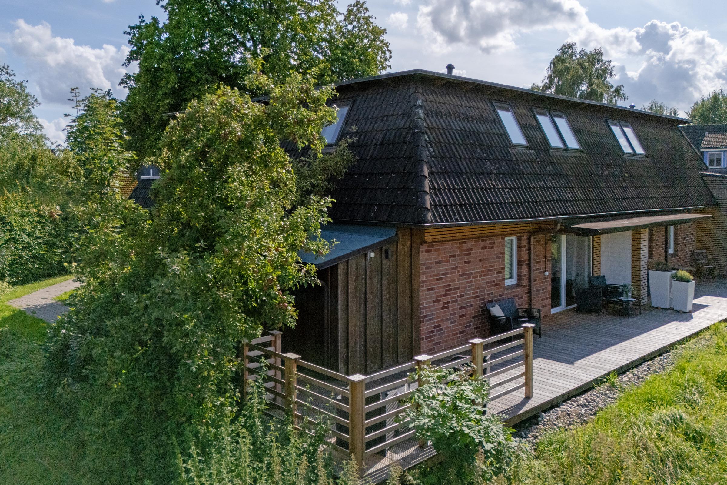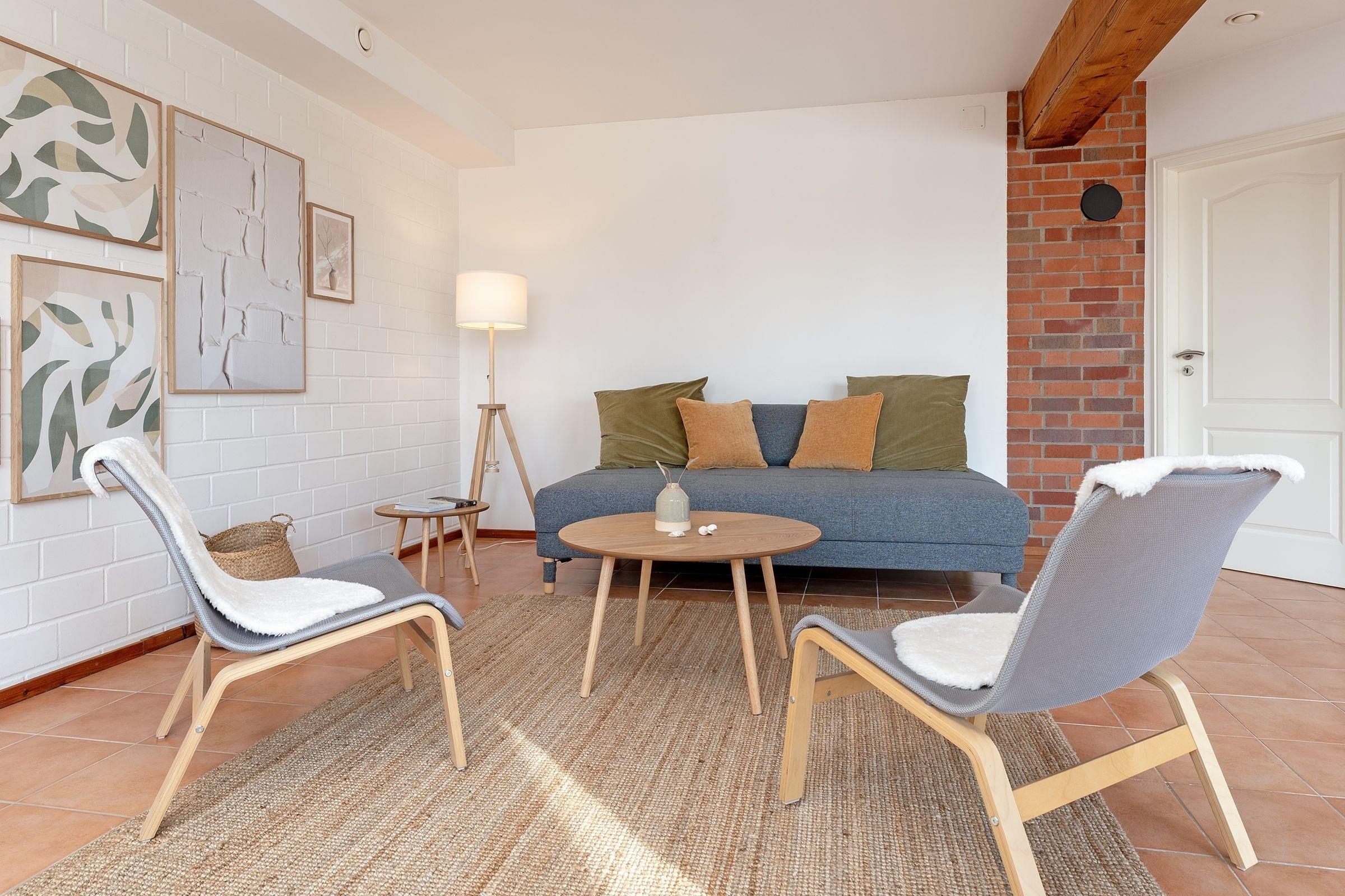 Diese großzügige Ferienwohnung besticht durch ihre moderne Ausstattung und die idyllische Lage in der Holsteinischen Schweiz. Sie ist perfekt für eine erholsame Auszeit geeignet. Das helle und stilvoll eingerichtete Wohnzimmer lädt mit einer gemütlichen Sofaecke und einem TV zum Entspannen ein. Von hier aus gelangen Sie auf den überdachten Balkon mit Südausrichtung, der mit Gartenmöbeln ausgestattet ist – ideal für ein Frühstück im Freien oder einen gemütlichen Abend. Die moderne, offene Küche ist mit einem Cerankochfeld, Backofen, Kühlschrank mit Gefrierfach und einer Nespresso-Maschine hervorragend ausgestattet. Der edle Essbereich am Fenster bietet Platz für gesellige Mahlzeiten und gemeinsame Stunden. Das Schlafzimmer ist komfortabel eingerichtet und bietet ruhige Nächte für 2 Personen im Doppelbett (180x200 cm). Das moderne Badezimmer ist mit einer Wanne mit Duschfunktion sowie Fußbodenheizung ausgestattet.
