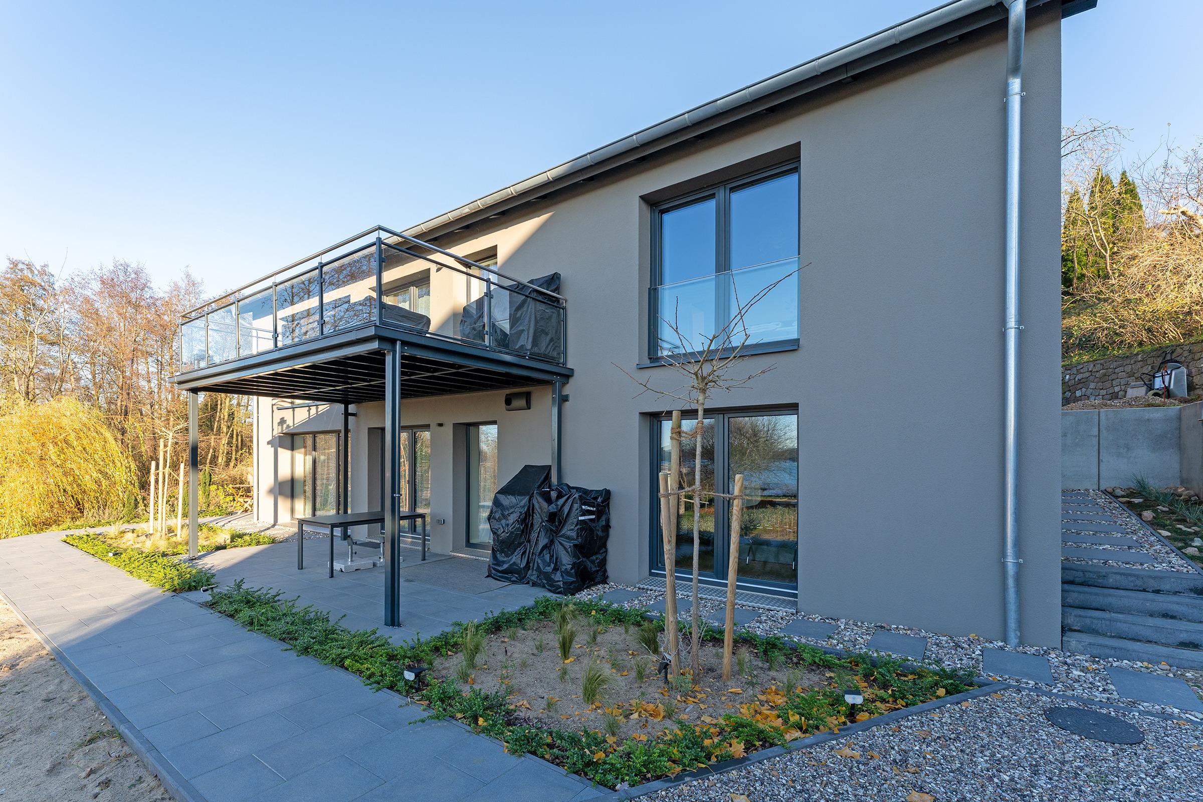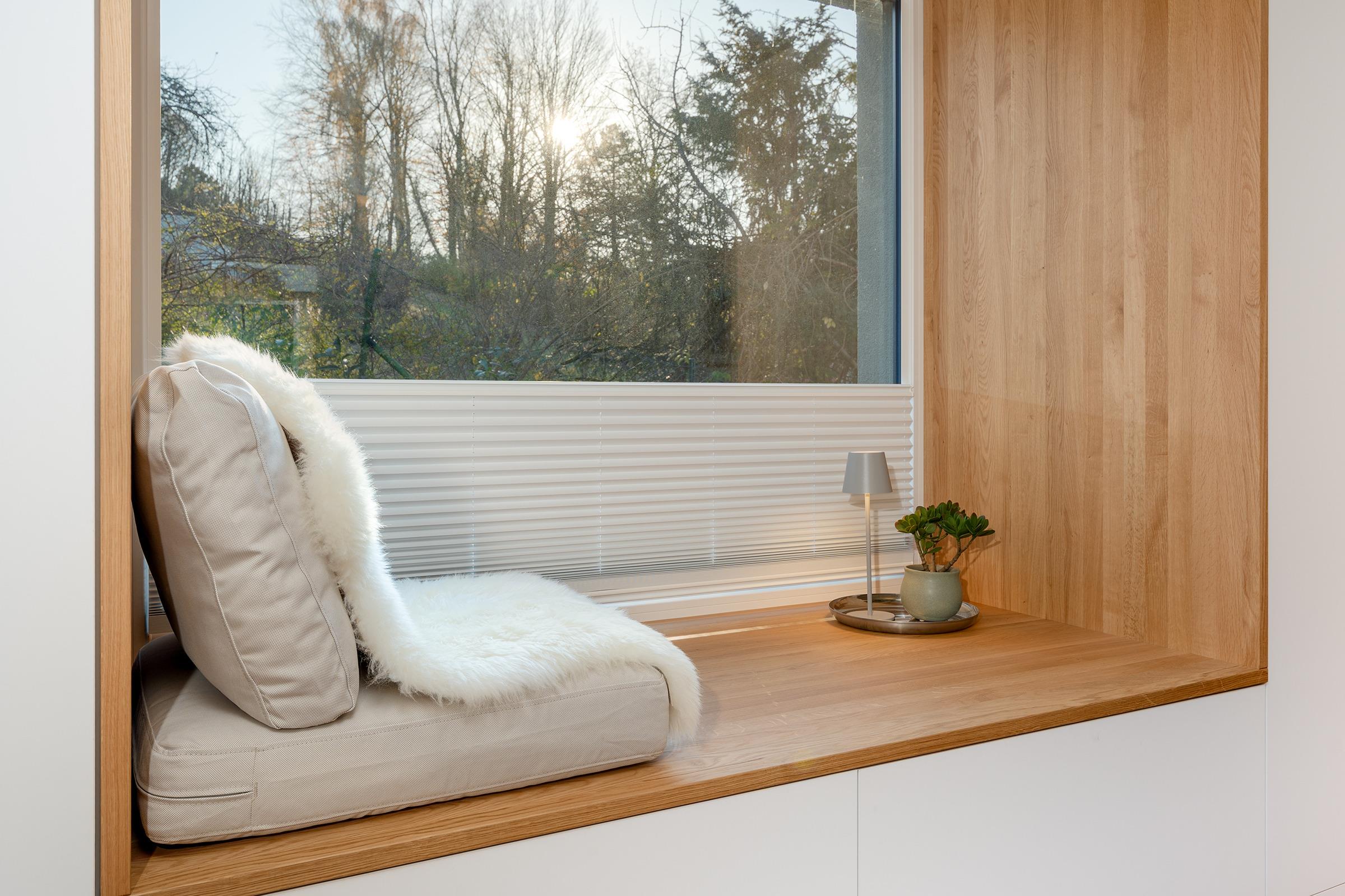 Das Herzstück dieser modernen Loft-Suite ist der weitläufige Wohnbereich mit hohen Decken und sichtbaren Holzbalken, die dem Raum einen besonderen Charme verleihen. Stilvolle Details schaffen eine einladende Atmosphäre, während große Fensterfronten viel Licht hereinlassen und den Blick ins Grüne eröffnen. Von hier aus gelangen Sie auf den Balkon mit Westausrichtung, ideal für entspannte Nachmittage in der Sonne. Zusätzlich steht Ihnen eine Terrasse mit Ostlage zur Verfügung, perfekt für das Frühstück im Freien.