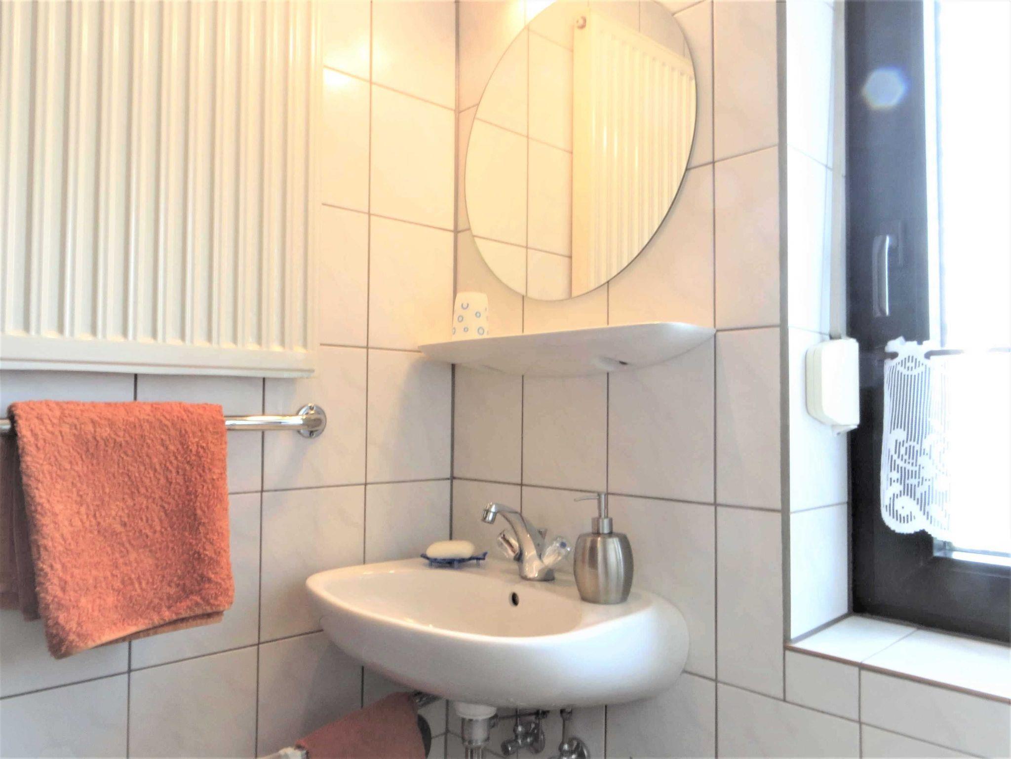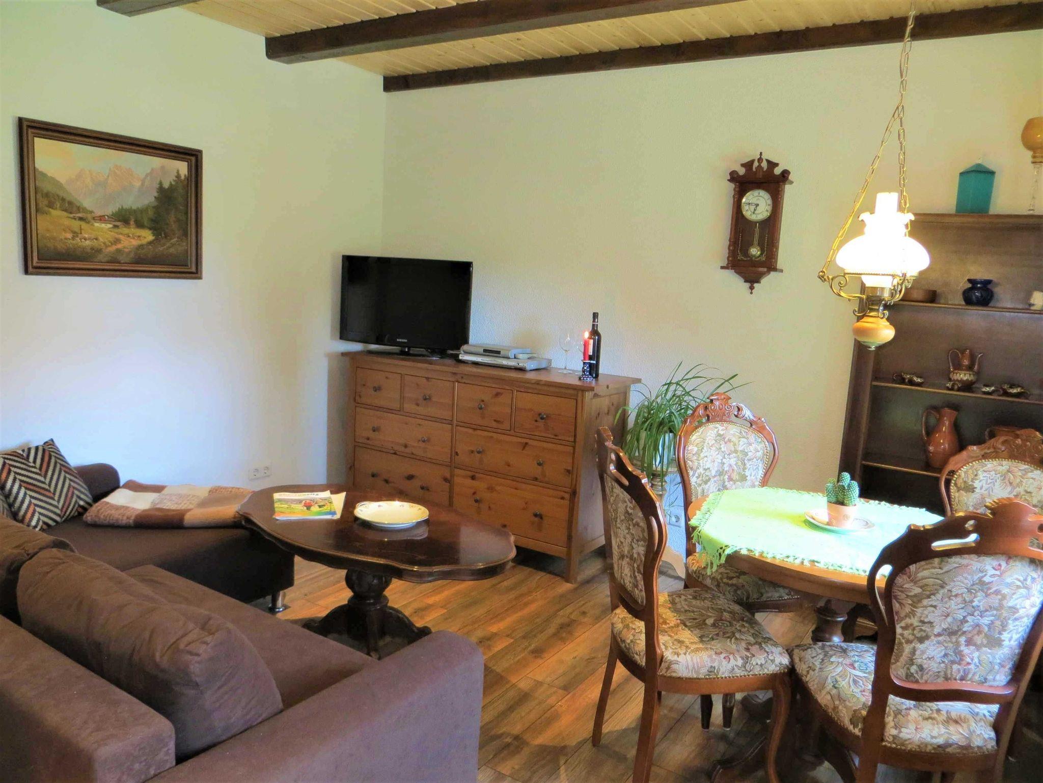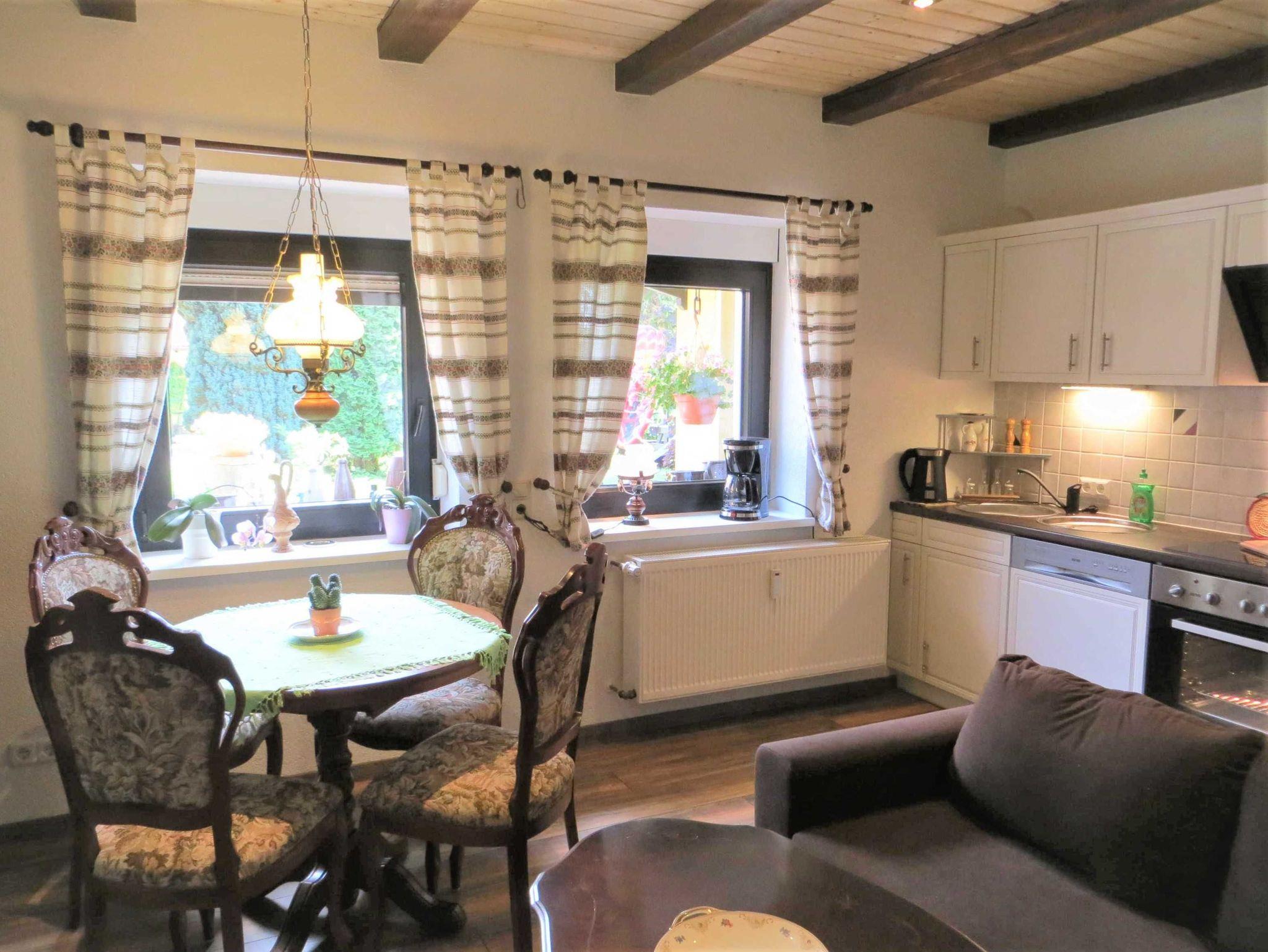 Die Ferienwohnung befindet sich in der unteren Etage des Objektes und ist mit nur einer kleinen Stufe begehbar. Sie bietet Ihnen ein Wohnzimmer mit einer Sitzecke, die für gemütliche Stunden sorgt. Eine integrierte und voll ausgestattete Einbauküche steht Ihnen für den Aufenthalt zur Verfügung. Das kleine Schlafzimmer ist mit 2 einzeln stehenden Betten und einem Babybeistellbett ausgestattet. Dusche und Schlafzimmer wurden erst vor kurzem renoviert und modernisiert. Die Erneuerung der Bilder ist in Arbeit.