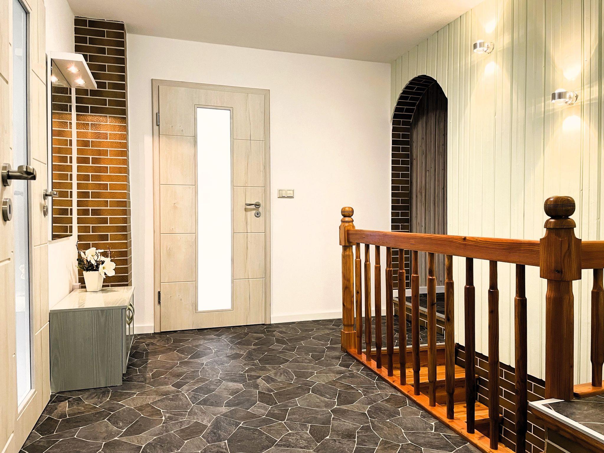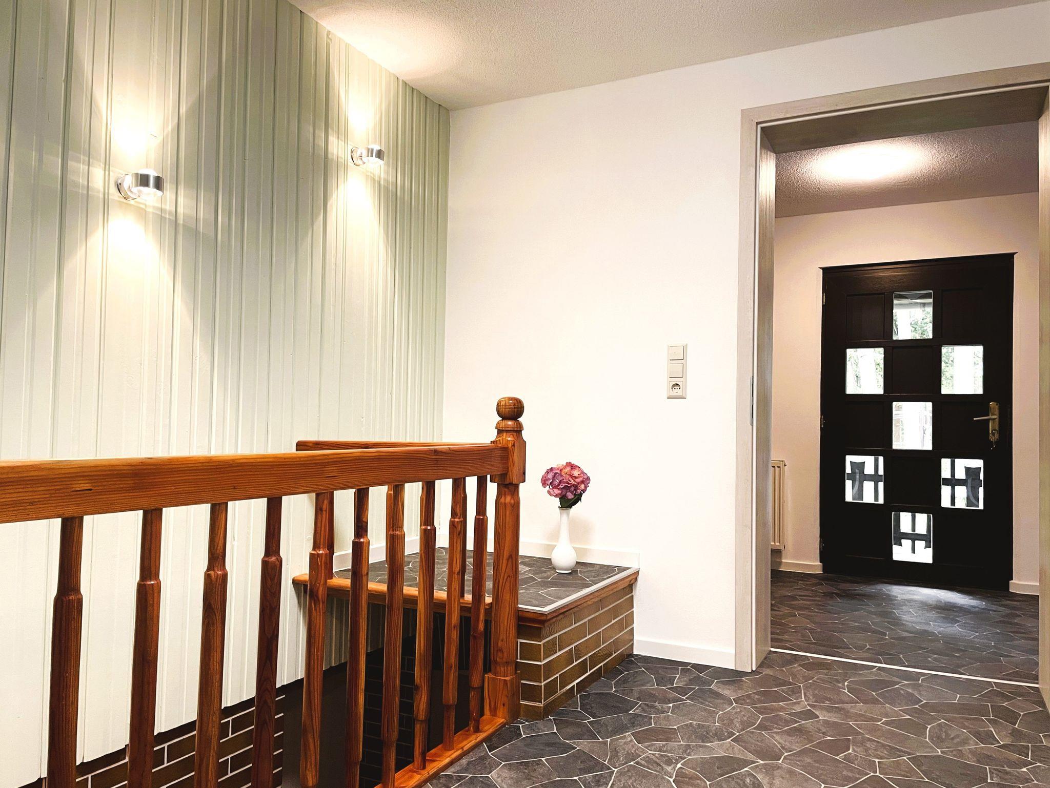 Gäste, die dem Alltag entfliehen möchten, genießen ihren Urlaub in einer von Ruhe und Natur umgebenen Ferienwohnung. Das gepflegte und vollständig umzäunte Grundstück ist ein Ort der Entspannung für alle ideal für Naturliebhaber und Ruhesuchende. Der angrenzende kleine Wald sorgt für eine frische Brise und eine bezaubernde Geräuschkulisse. Lauschen Sie dem Zwitschern der Vögel und dem sanften Rascheln der Blätter.
