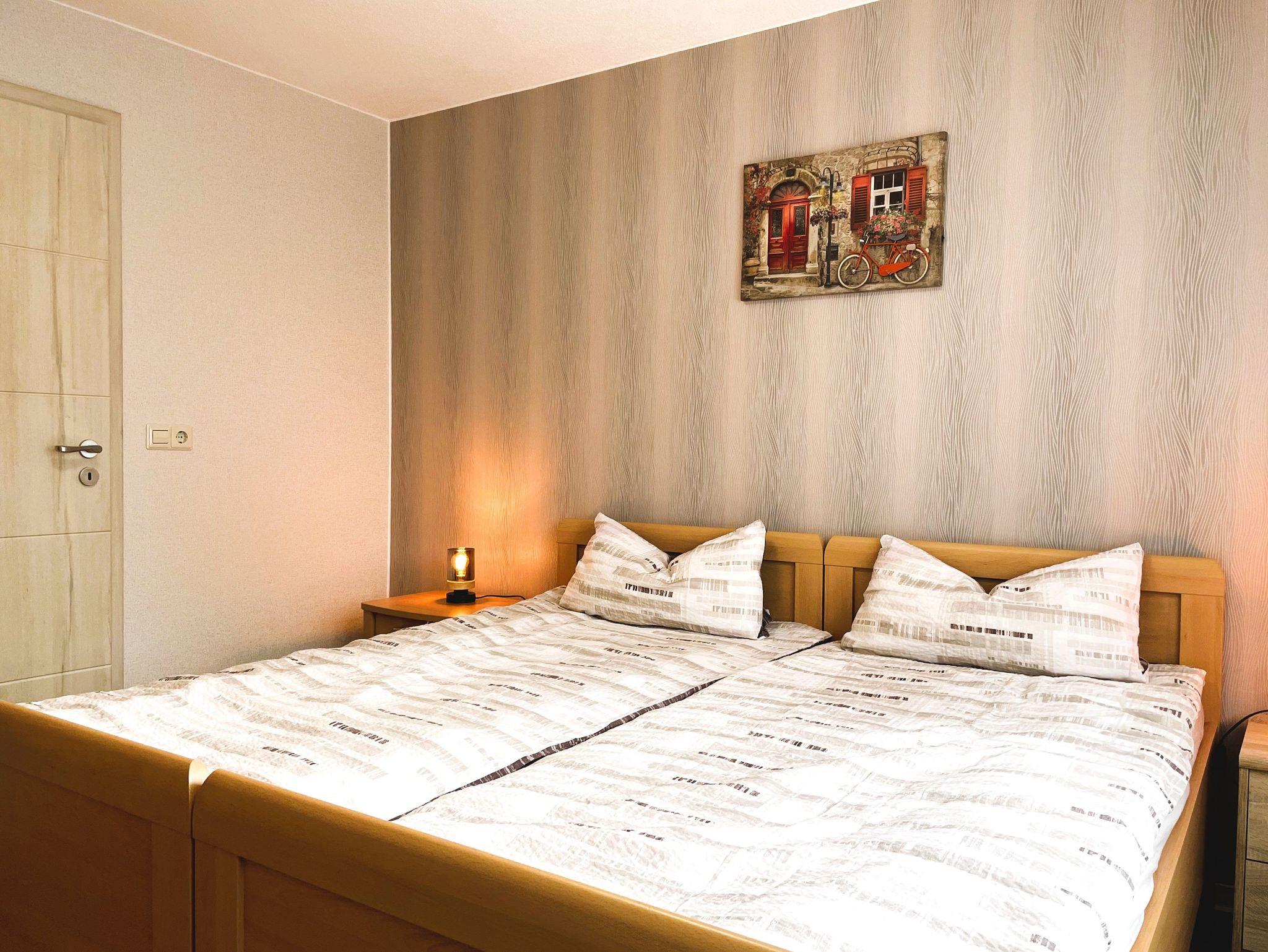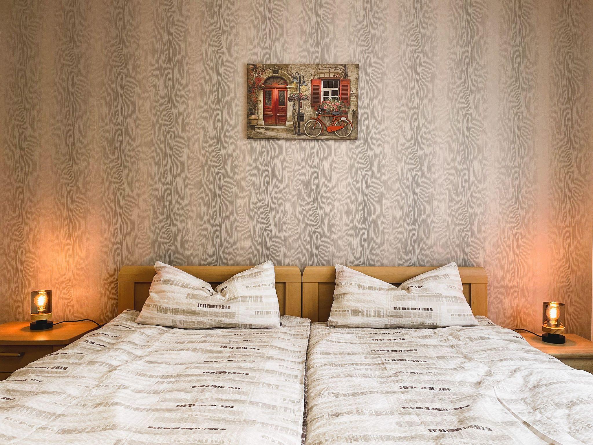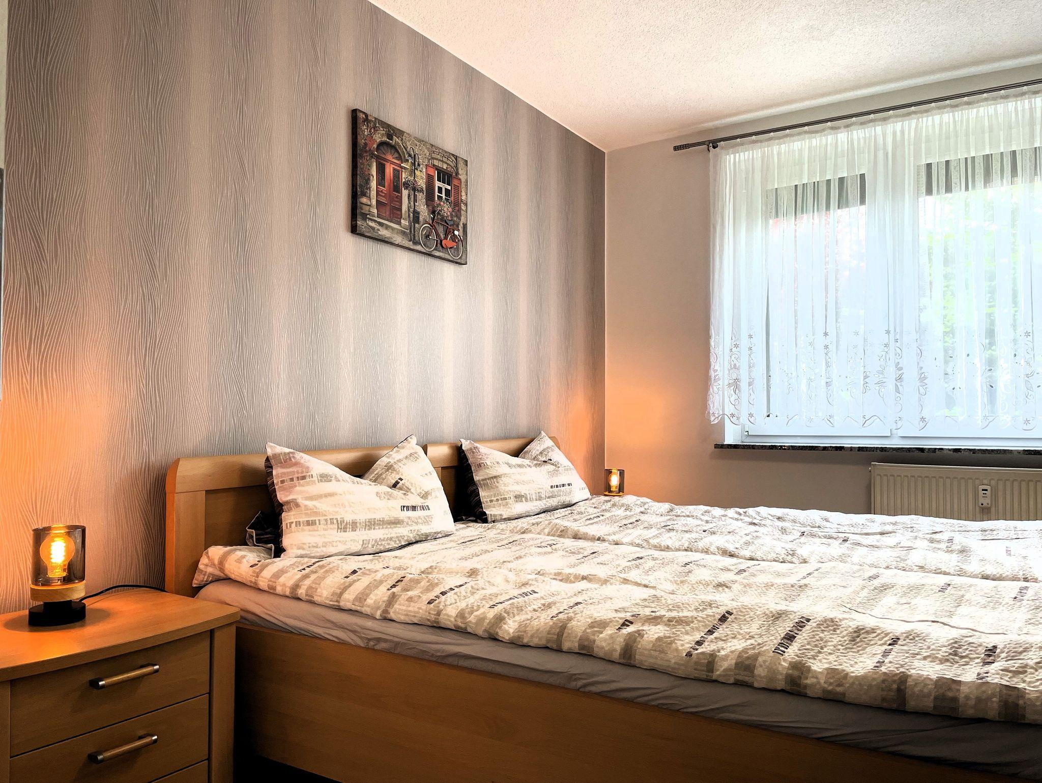 Im Schlafzimmer erwarten Sie ein großzügiger Kleiderschrank und ein Doppelbett, das erholsamen Schlaf verspricht.
