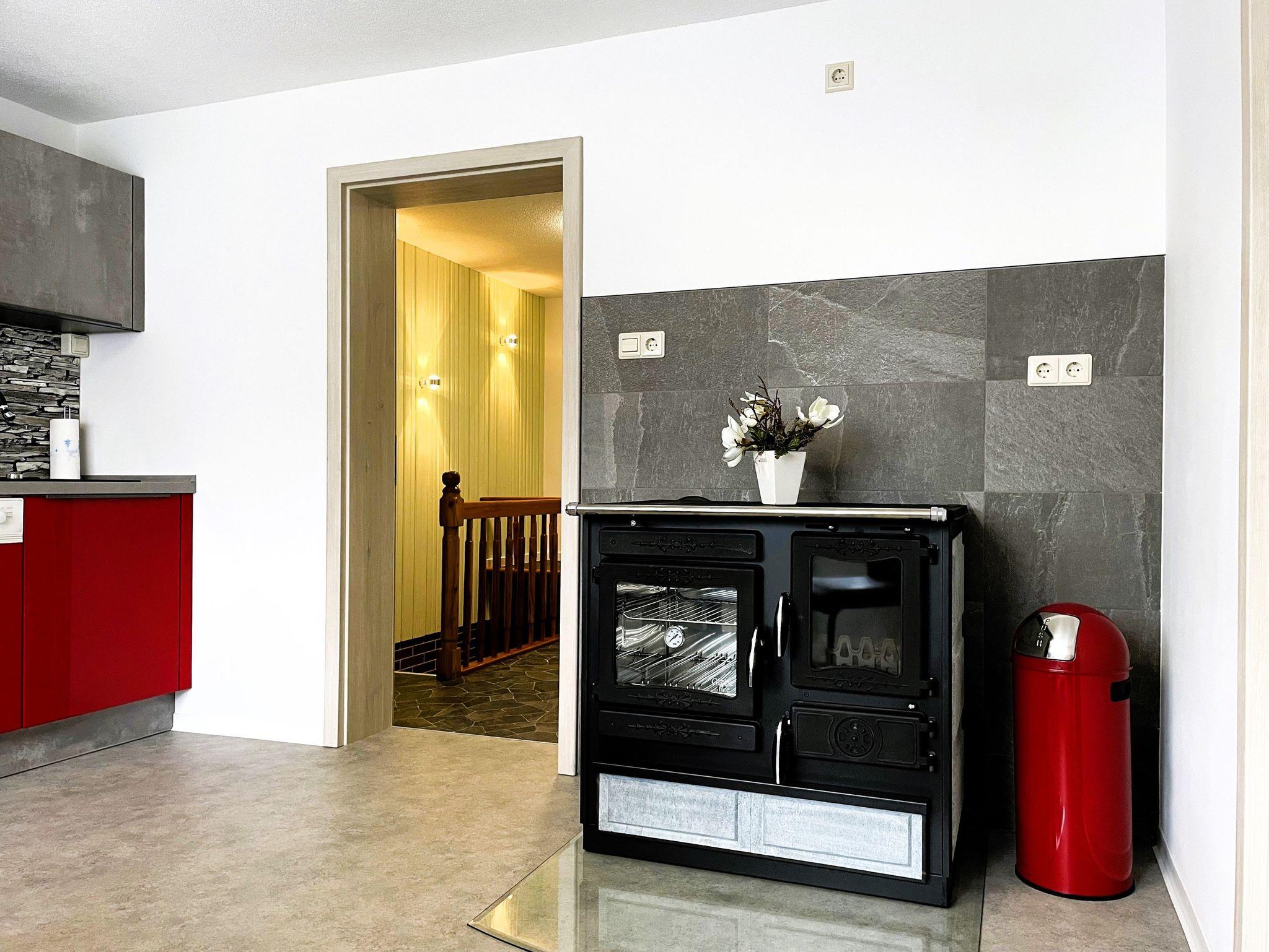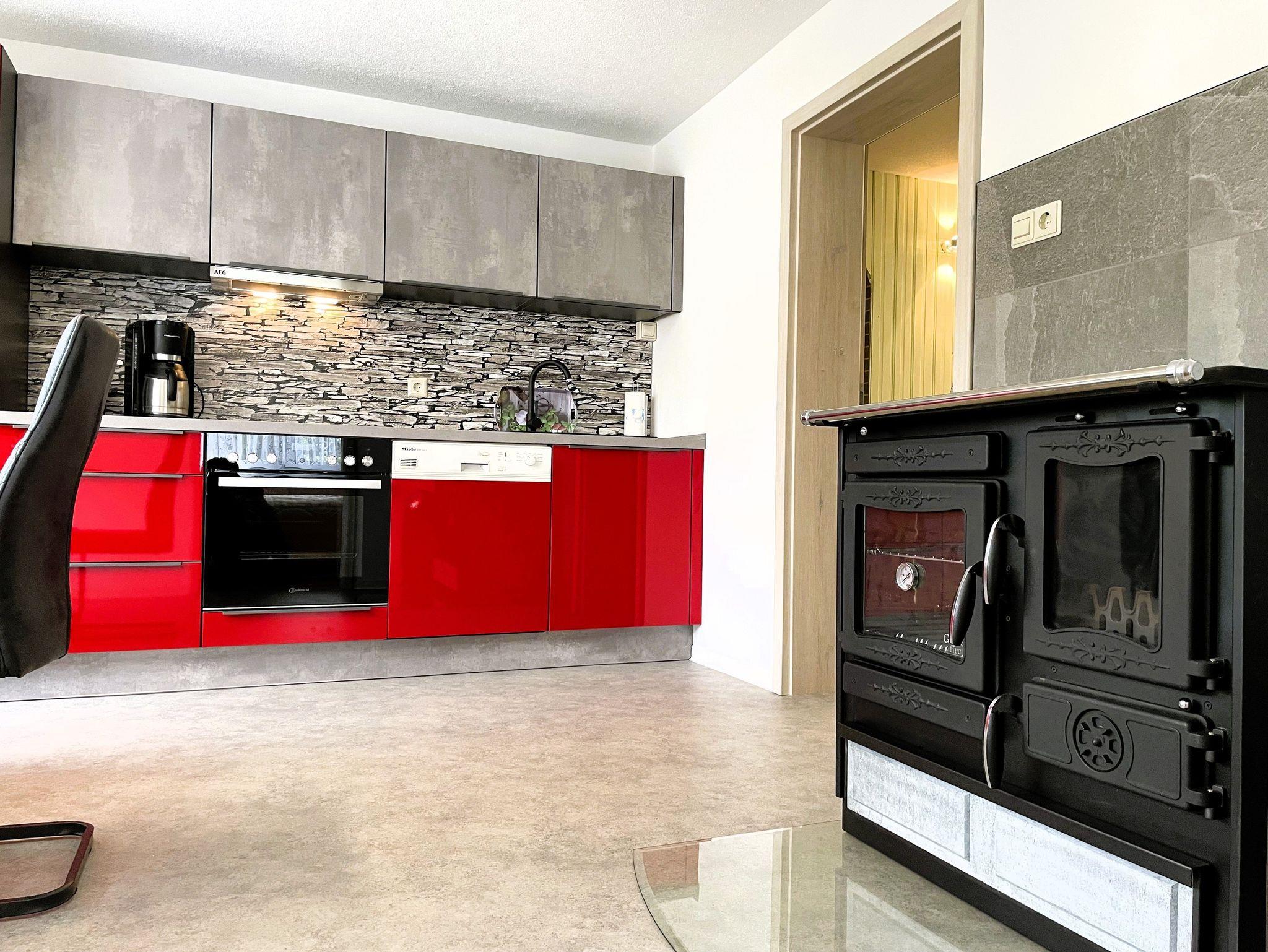 Die moderne Küche lässt kaum ein Wunsch offen: Sie ist mit Kühlschrank, Backofen, Geschirrspüler, Kaffeemaschine und Wasserkocher gut ausgestattet. Ein besonderes Highlight stellt der traditionelle Kochofen dar, der nicht nur köstliche Gerichte gelingen lässt, sondern auch wohlige Wärme verbreitet.