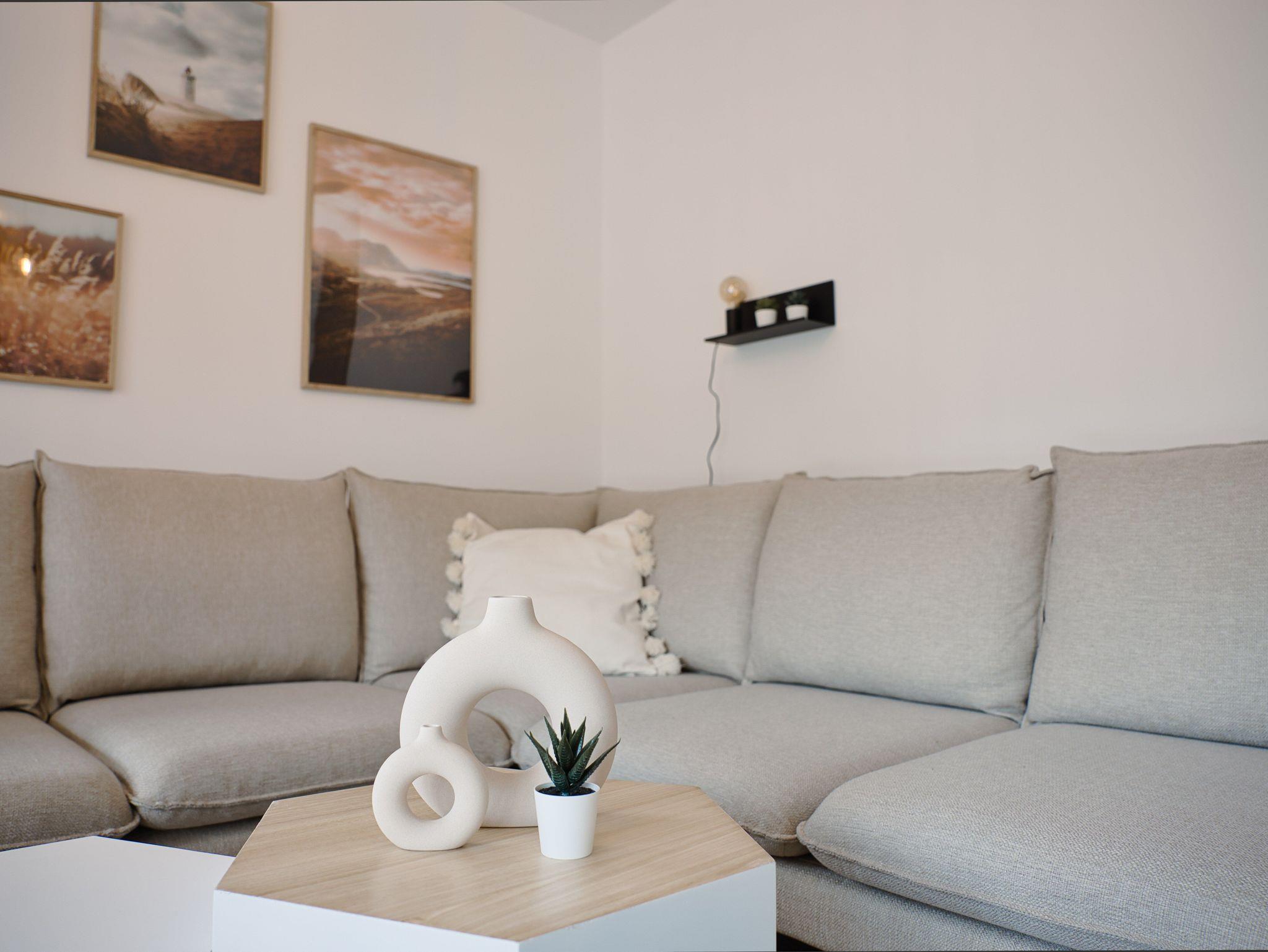 In der gut ausgestatteten Küche mit Geschirrspüler, Induktionsherd und Backofen wird selbst das Zubereiten von leckeren Gerichten ein echtes Erlebnis für dich. Im angrenzenden Essbereich schafft die helle Fensterfront wahre Wohlfühl-Atmosphäre. Der Esstisch sowie die gemütliche Sofaecke finden hier ihren Platz, außerdem ein 55 Zoll Fernseher mit Smart-TV. Liebevolle Details fügen sich in die skandinavische Raumgestaltung ein. Im gesamten Ferienhaus kannst du kostenfreies WLAN (bis zu 250 MBit/s) nutzen.
