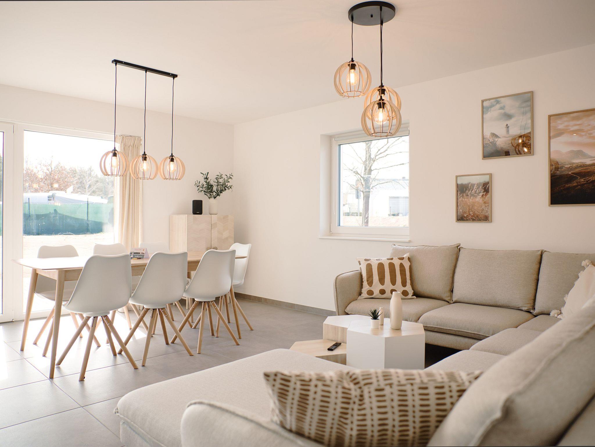 In der gut ausgestatteten Küche mit Geschirrspüler, Induktionsherd und Backofen wird selbst das Zubereiten von leckeren Gerichten ein echtes Erlebnis für dich. Im angrenzenden Essbereich schafft die helle Fensterfront wahre Wohlfühl-Atmosphäre. Der Esstisch sowie die gemütliche Sofaecke finden hier ihren Platz, außerdem ein 55 Zoll Fernseher mit Smart-TV. Liebevolle Details fügen sich in die skandinavische Raumgestaltung ein. Im gesamten Ferienhaus kannst du kostenfreies WLAN (bis zu 250 MBit/s) nutzen.