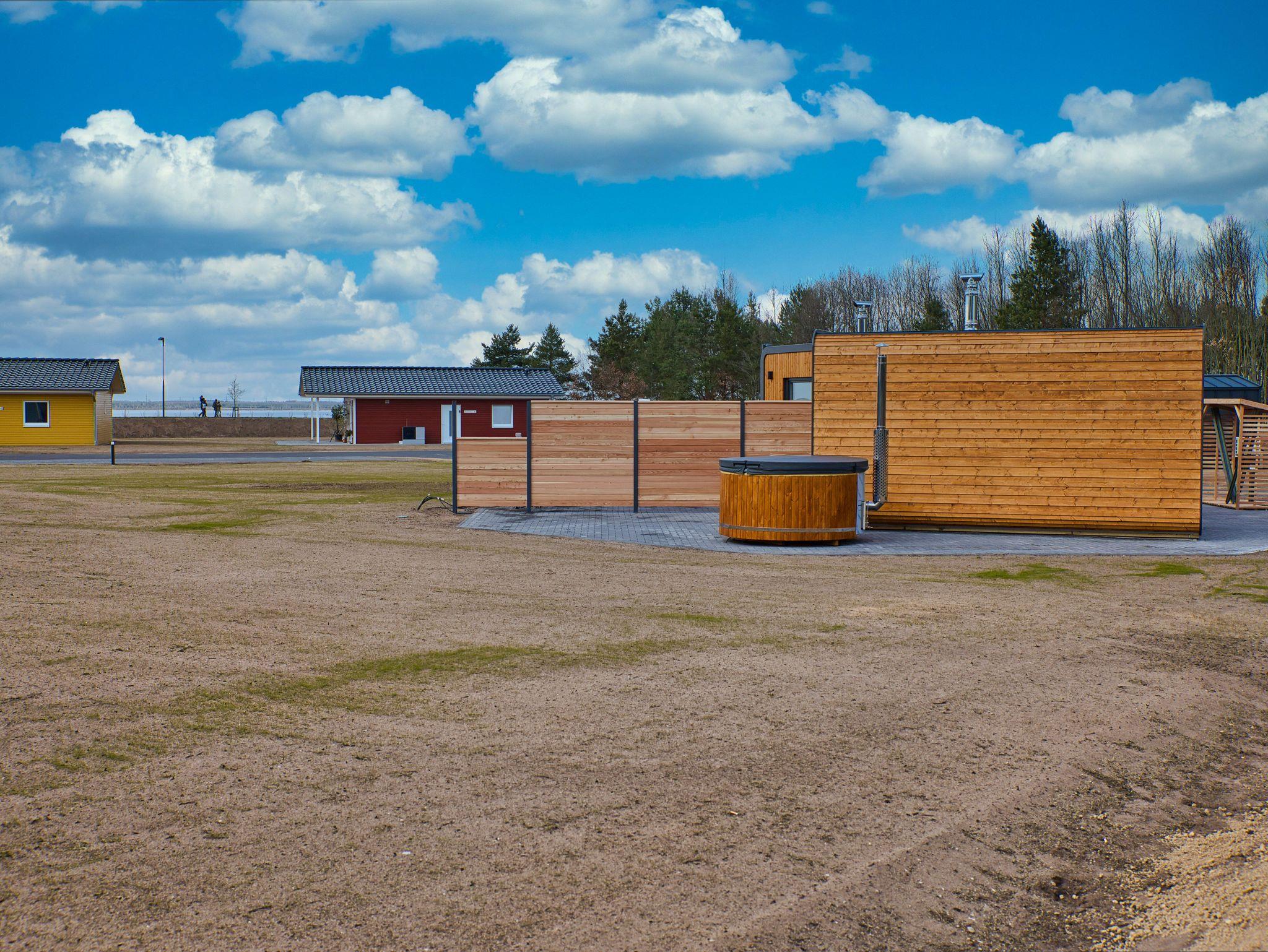Die Terrasse lädt dich ein, die Sonne zu genießen und den Grill anzuwerfen. Für Entspannung und Wellness stehen holzbefeuerte Iglu-Saunen sowie Badefässer mit Whirlpoolfunktion auf der Ferienanlage zur Verfügung. Zu dieser gehören insgesamt 14 Ferienhäuser. Die unmittelbare Nähe zum Sandstrand ermöglicht dir tollen Badespaß. Darüber hinaus bietet dir der Bärwalder See jede Menge Möglichkeiten auf und am Wasser.