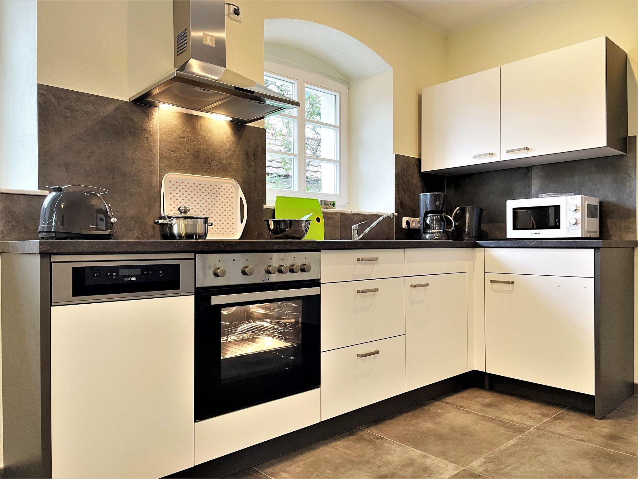 Durch die Sanierung entstand ein Ferienhaus mit dem Charme eines altertümlichen Gebäudes, verbunden mit den Annehmlichkeiten einer dem heutigen Standard entsprechenden, modernen Inneneinrichtung. Nun befinden sich 2 ebenerdig liegende Ferienwohnungen in dem Objekt und warten auf ihre Gäste. Weiterhin gibt es für mitgebrachte Fahrräder, abschließbare Unterstellmöglichkeiten und eine E-Bike-Ladestation. Parkplätze sind vorhanden und für E-Autos gibt es eine Ladestation.