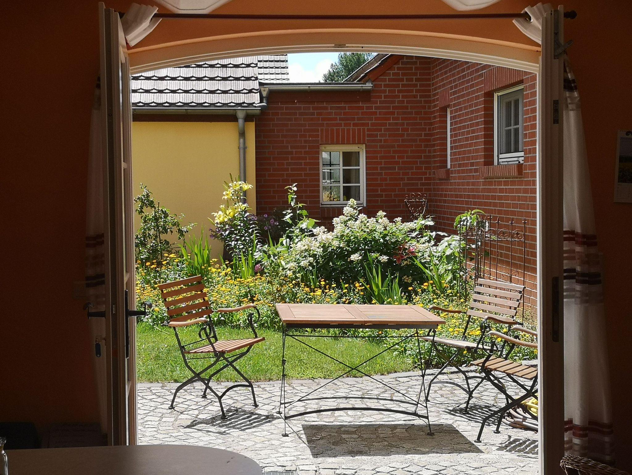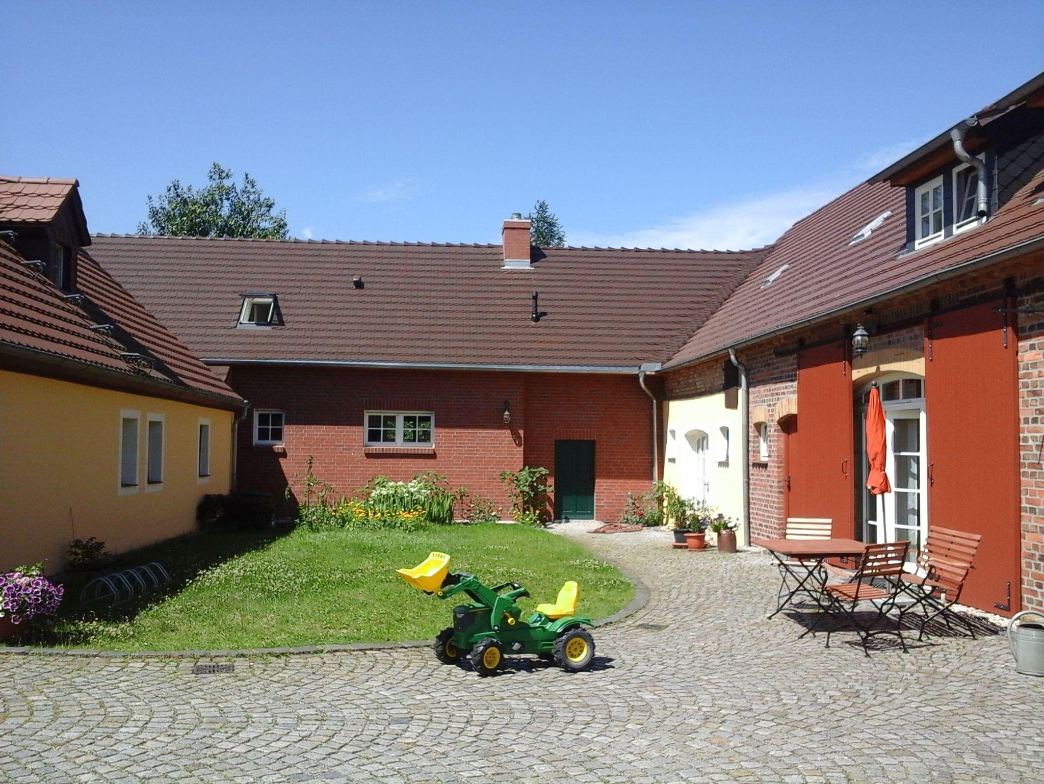 Der Hofcharakter ist trotz der Umnutzung sehr gut erhalten geblieben. Damit der Hof lebendig ist haben wir Katzen und Kaninchen als Streicheltiere, besonders für unsere kleinen Gäste. Zum Hof gehören ein wunderschöner Blumen- und ein kleiner Kräutergarten, eine Streuobstwiese, ein Gartengrill, eine Lagerfeuerstelle und ein Spielplatz, ein großes Trampolin sowie ein Volleyball- und ein kleines Fußballfeld auf der Wiese. Viel Platz für unsere Feriengäste gibt es auf dem großzügigen Grundstück mit Parkplatz unweit der Ferienwohnungen. Der abschließbare Fahrradschuppen steht unseren Gästen ebenfalls zur Verfügung. In begrenzter Anzahl können Fahrräder nach Möglichkeit und vorheriger Anmeldung gegen Gebühr ausgeliehen werden.