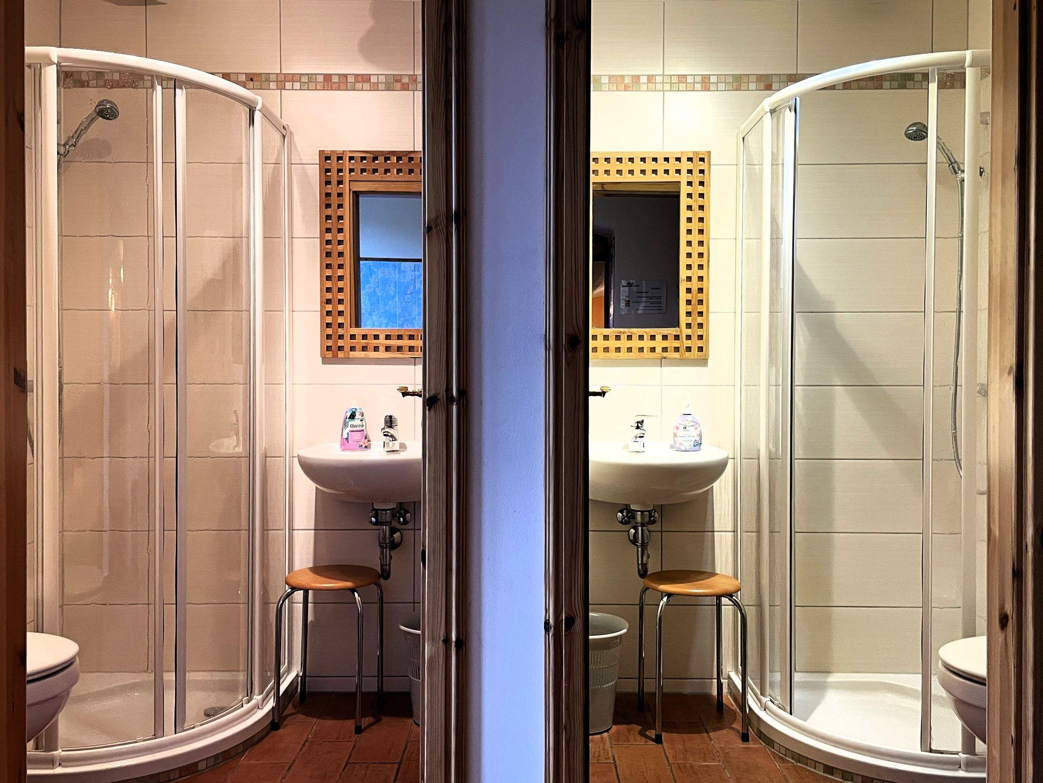 Außerdem gibt es 2 Badezimmer mit Dusche, Waschbecken und WC. Die Benutzung der Sauna ist gegen Gebühr möglich.