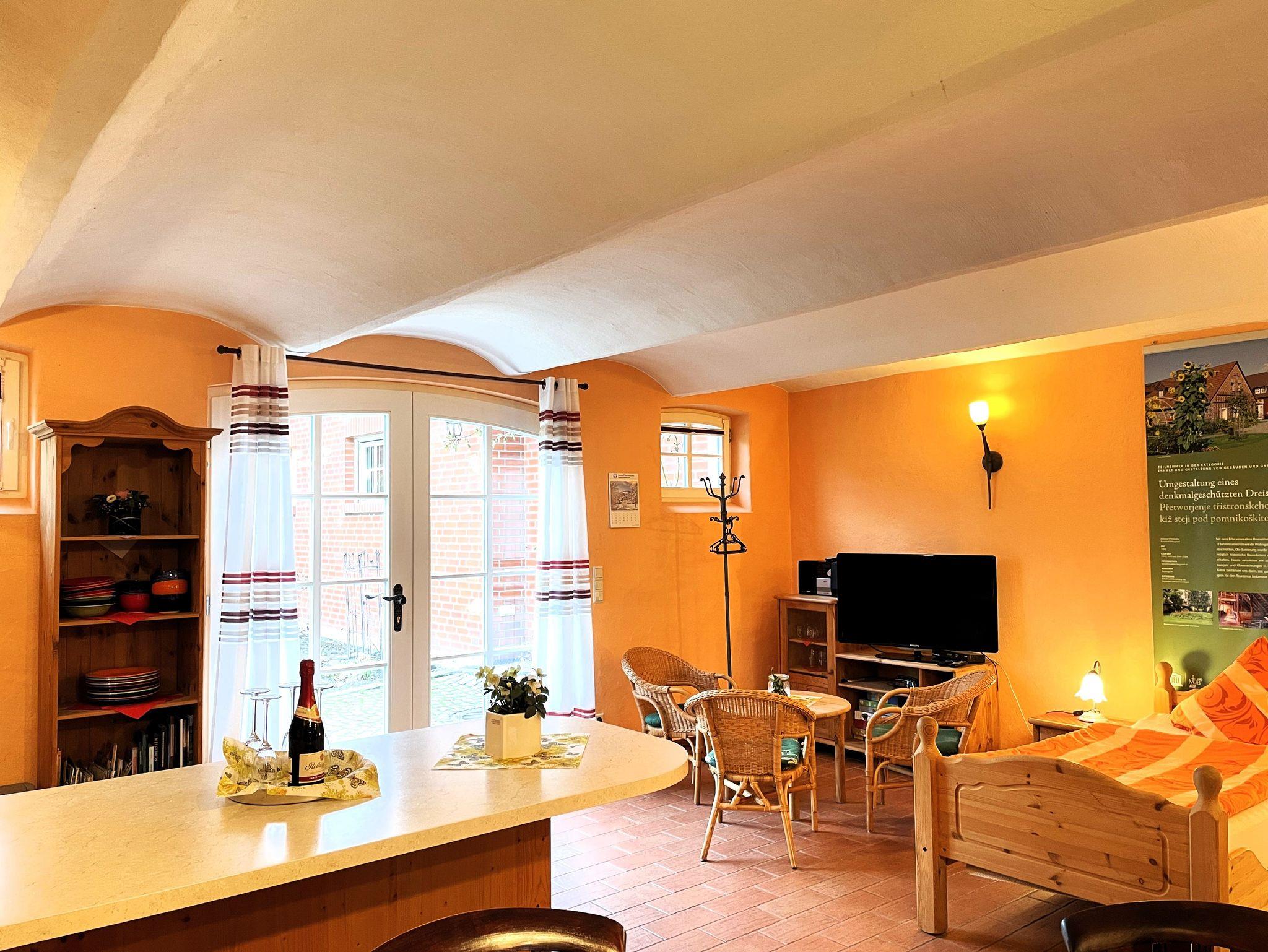 Der unter Denkmalschutz stehende Dreiseithof wurde liebevoll saniert und mit vielen nostalgischen Details eingerichtet. Es entstanden 3 komfortabel, gemütlich eingerichtete Ferienwohnungen im Landhausstil.