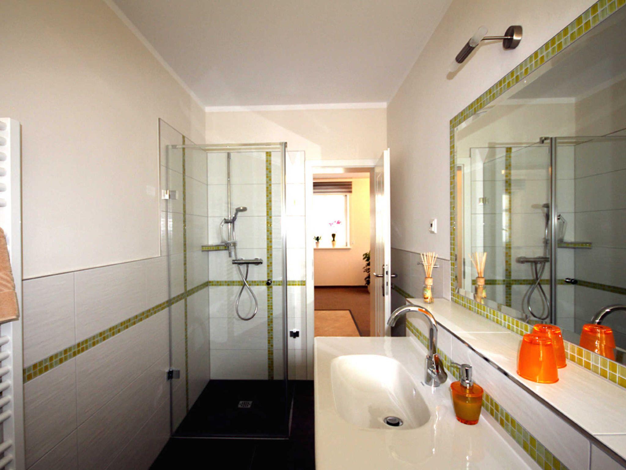Diese Ferienwohnung befindet sich in der 1. Etage. Sie ist mit Teppichboden versehen und es ist eine Nichtraucherwohnung. Unsere Küchenzeilen sind komplett ausgestattet (Kühlschrank, Kaffeemaschine. Wasserkocher, Cerankochfeld und Minibackofen). Im Schlafzimmer befindet sich ein Doppelbett in der Größe 180x200 cm.