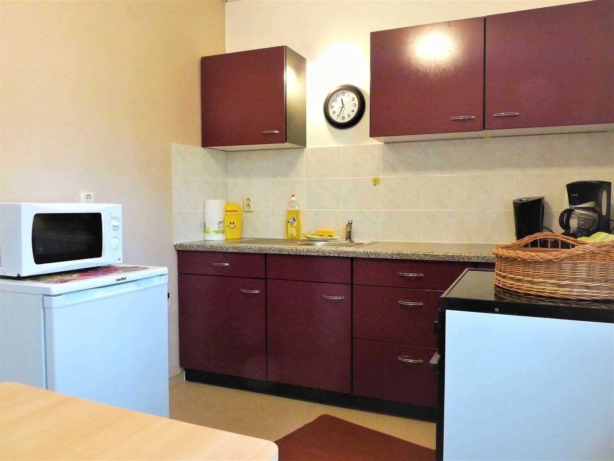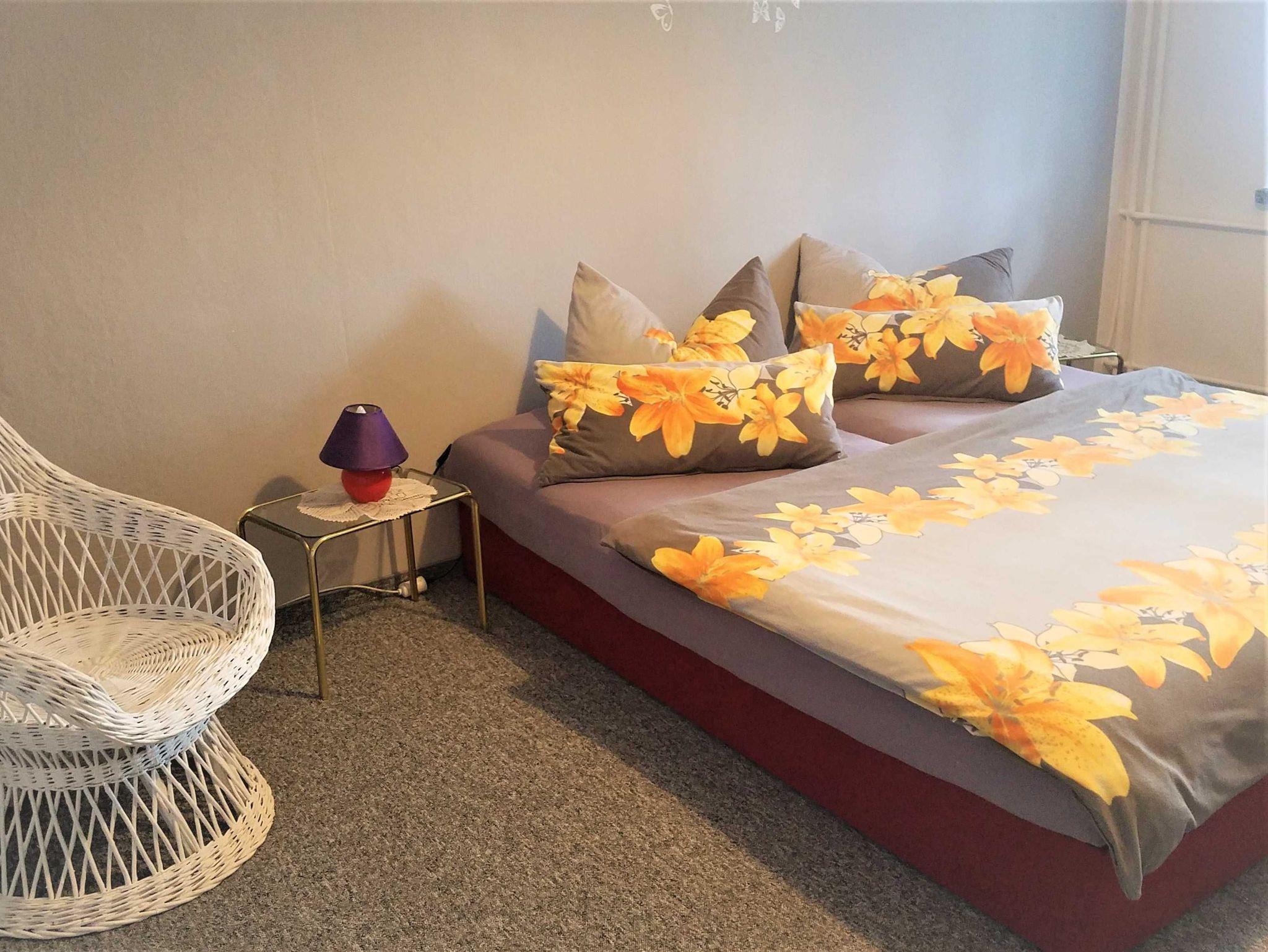 Die Ferienwohnung verfügt über zwei separate Schlafzimmer und einem Wohn.- Schlafraum (1 Doppelbett und 1 Ecksofa), sowie Küche und Badezimmer. Ein Schlafzimmer ist mit einem Doppelbett und das 2. Schlafzimmer ist mit einem Einzelbett ausgestattet. In der separaten Küche finden Sie unter anderem einen Backofen, Kühlschrank, Mikrowelle und eine gemütliche Sitzecke für Ihre Mahlzeiten.