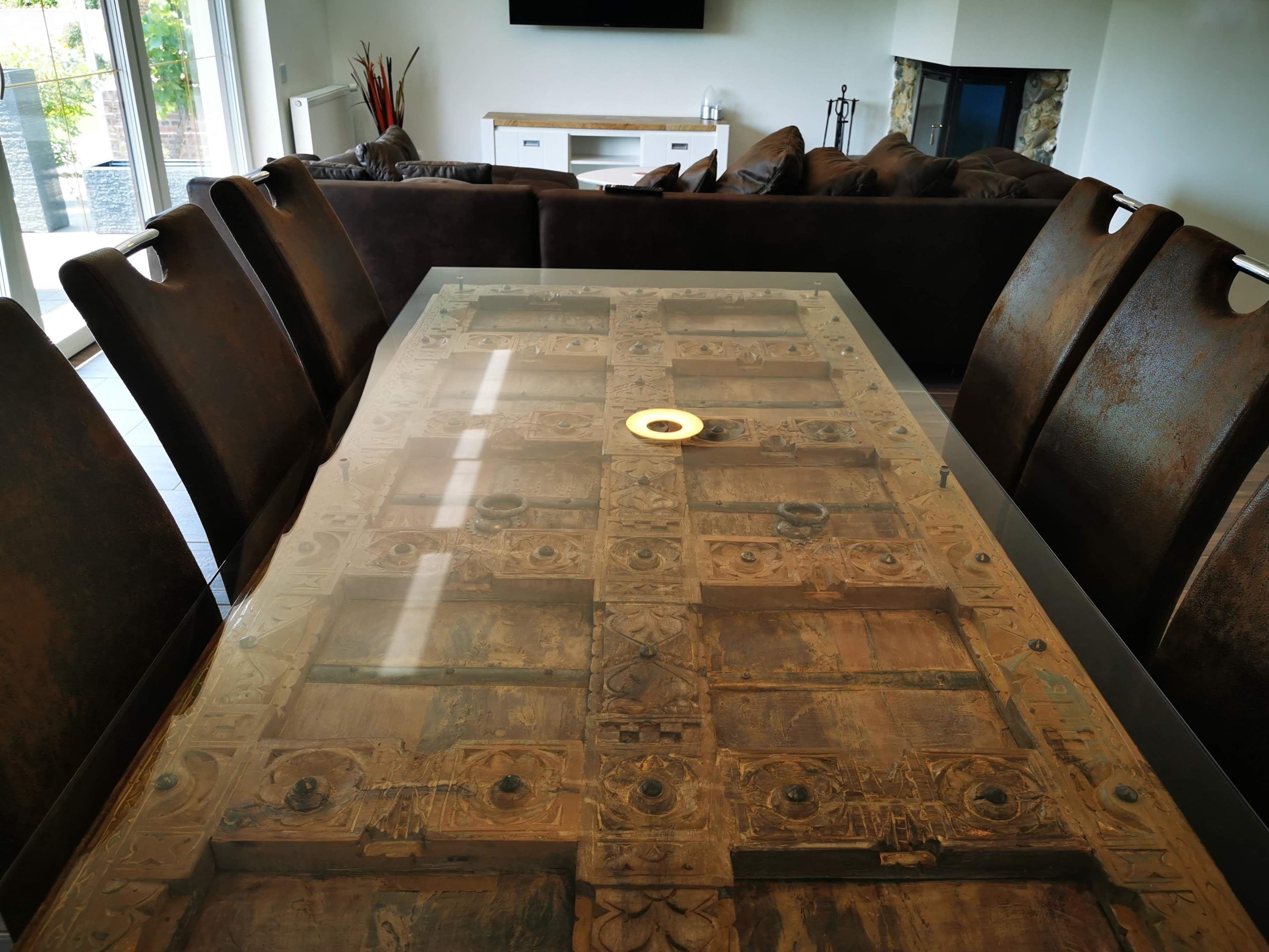 Der Essbereich ist ausgestattet mit einem großen Glastisch mit sechs bequemen Stühlen. Auf Anfrage stellen wir Ihnen ein Kinderhochstuhl zur Verfügung.
