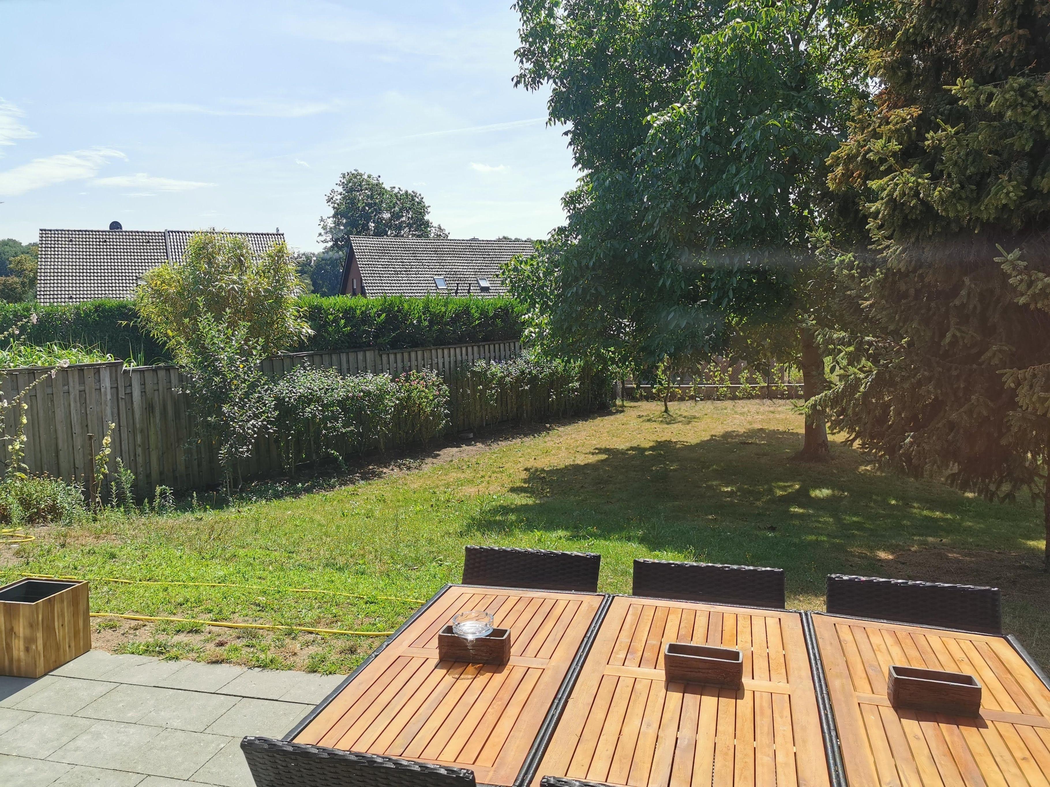 Unser Ferienhaus verfügt über einen großen Garten mit einer wunderschönen Terasse. Die große, auf der Südseite gelegene Terrasse lädt zum Sonnenbad ein und verleiht einen schönen Blick auf die Umgebung. Unser mit Zäune eingefriedetes Grundstück ist ca. 500 qm groß. Bequeme Gartenstühle, ein moderner Gartentisch, Liegestühle und eine hochwertige Markise garantieren einen angenehmen Aufenthalt im Freien. Ein Gasgrill, inklusive Gasflasche, wird Ihnen ebenfalls zur Verfügung gestellt, um die Abende auf der Terrasse genießen zu können.