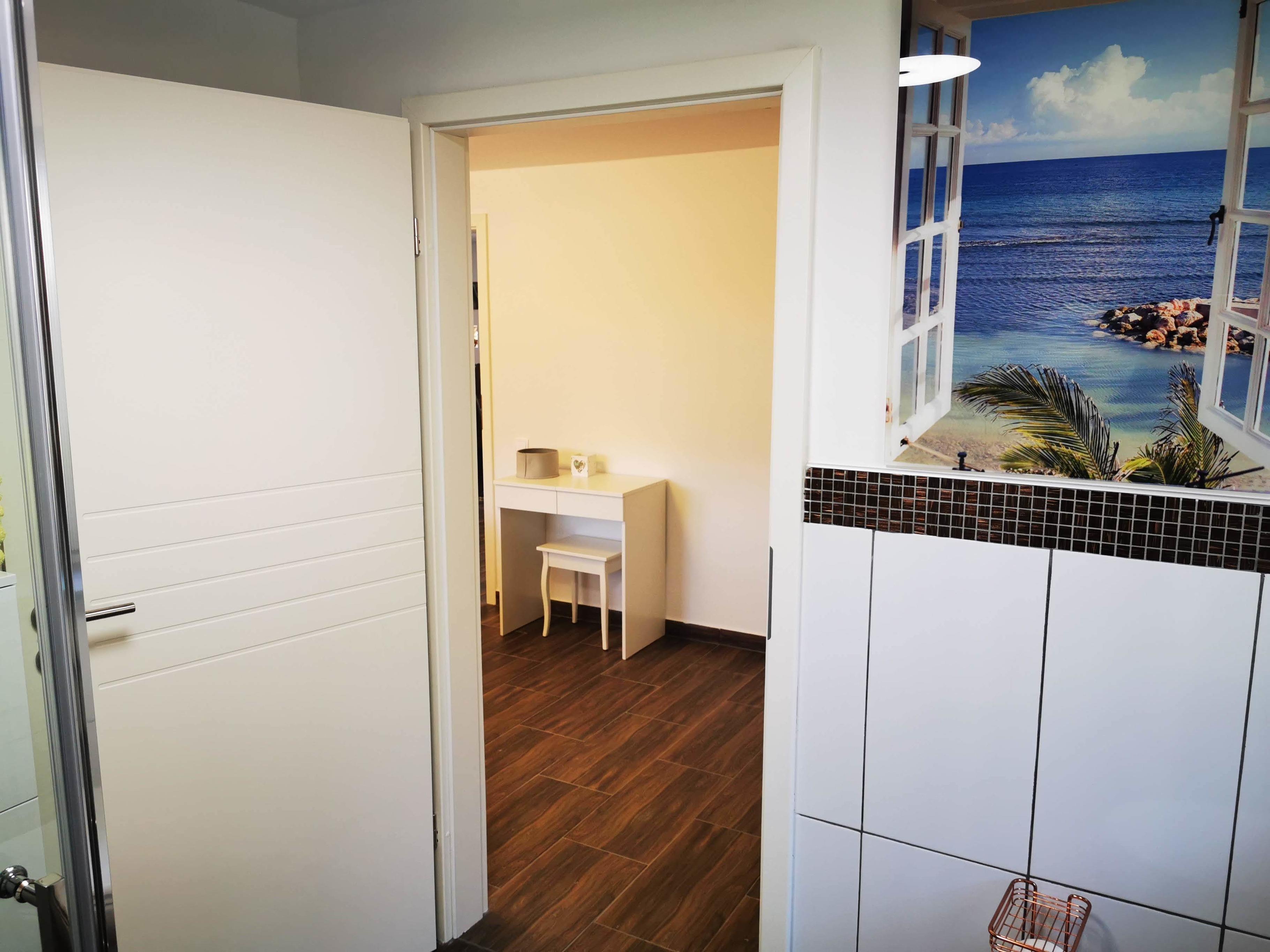 Das Erdgeschoss vereint Küche, Esszimmer und Wohnzimmer in einem großen, gut beleuchteten Raum, der unsere Gäste die häuslichen Aktivitäten gemeinsam genießen lässt, da die Wohnfläche auf einer Ebene verteilt ist. Beide Schlafzimmer verfügen über ein eigenes Bad, jeweils mit einer großen, offenen Regendusche ausgestattet. Somit ist dafür gesorgt, dass die Gäste sich in den frühen Morgenstunden beim Gang ins Badezimmer nicht gegenseitig stören oder behindern.
