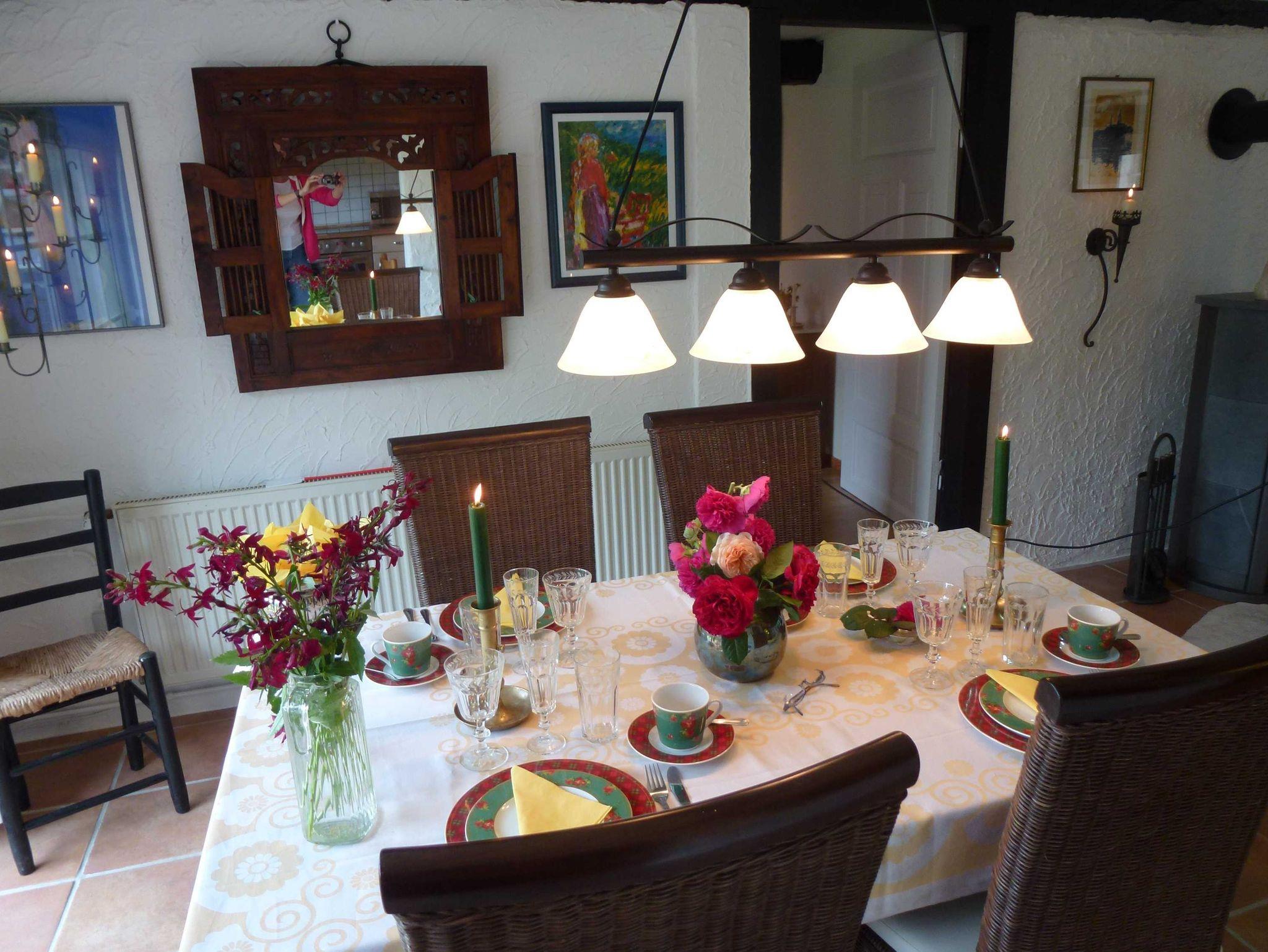 Die Ferienwohnung Emil Nolde ist mit vielen Nachdrucken seiner Gemälde liebevoll dekoriert und liegt im Erdgeschoß des Anwesens. Sie verfügt über zwei separate Schlafzimmer, ein großes Ess - und Wohnzimmer, eine offene Küche und bietet Platz für bis zu 5 Personen. In einem Schlafzimmer besteht die Möglichkeit ein Zustellbett für eine Erwachsene Person oder ein Kinderbett bereitzustellen.