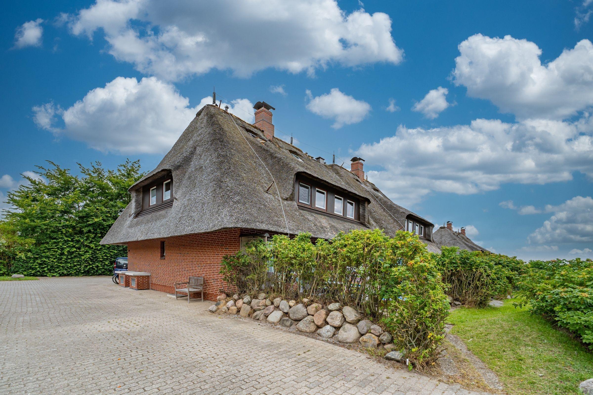 Das Appartement "Wattblick" befindet sich in der sehr gepflegten Anlage "Weisses Kliff" in Braderup. Alle 4 Häuser der Anlage sind reetgedeckt. Zur Anlage gehört ein Schwimmbad, welches von Pfingsten bis Ende September beheizt wird. Zum Weststrand der Insel sind es etwa 2-3 km, zum Watt nur wenige Minuten. Die Anlage liegt direkt am Naturschutzgebiet Braderuper Heide, die zum Durchwandern einlädt. Kampen ist nach etwa 2-3 km Spaziergang durch die Heide oder direkt am Watt erreicht und damit auch die "Kupferkanne", die mit Kuchen, Kaffe und Bier die Pause genießen läßt. Der Golfplatz ist eben um die Ecke. Golfen, Wandern, Laufen, Reiten, Radfahren - alles ist möglich.