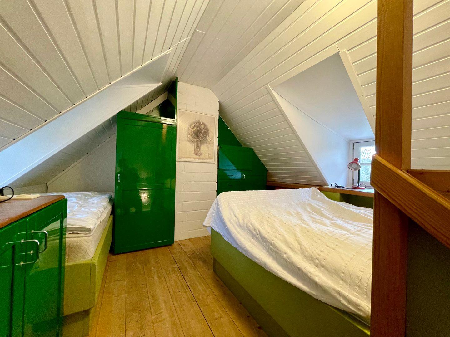 Die gut ausgestattete Küche ist mit Herd, Backofen, einen Kühlschrank, Geschirrspüler und einer Waschmaschine versehen. Das obere Schlafzimmer, über dem Kaminzimmer, verfügt über ein Doppelbett (180x200cm), sowie reichlich Stauraum in den Schränken.