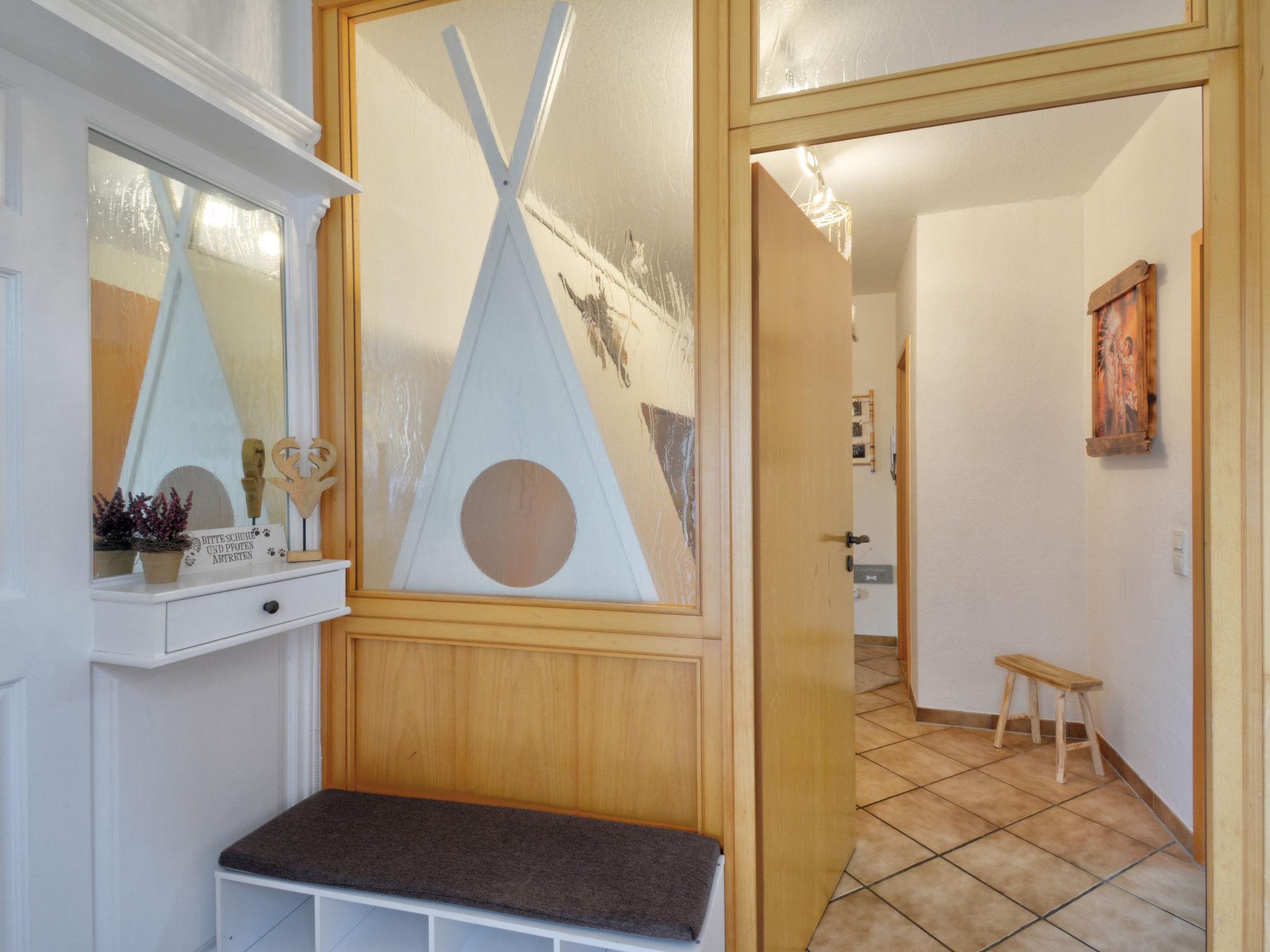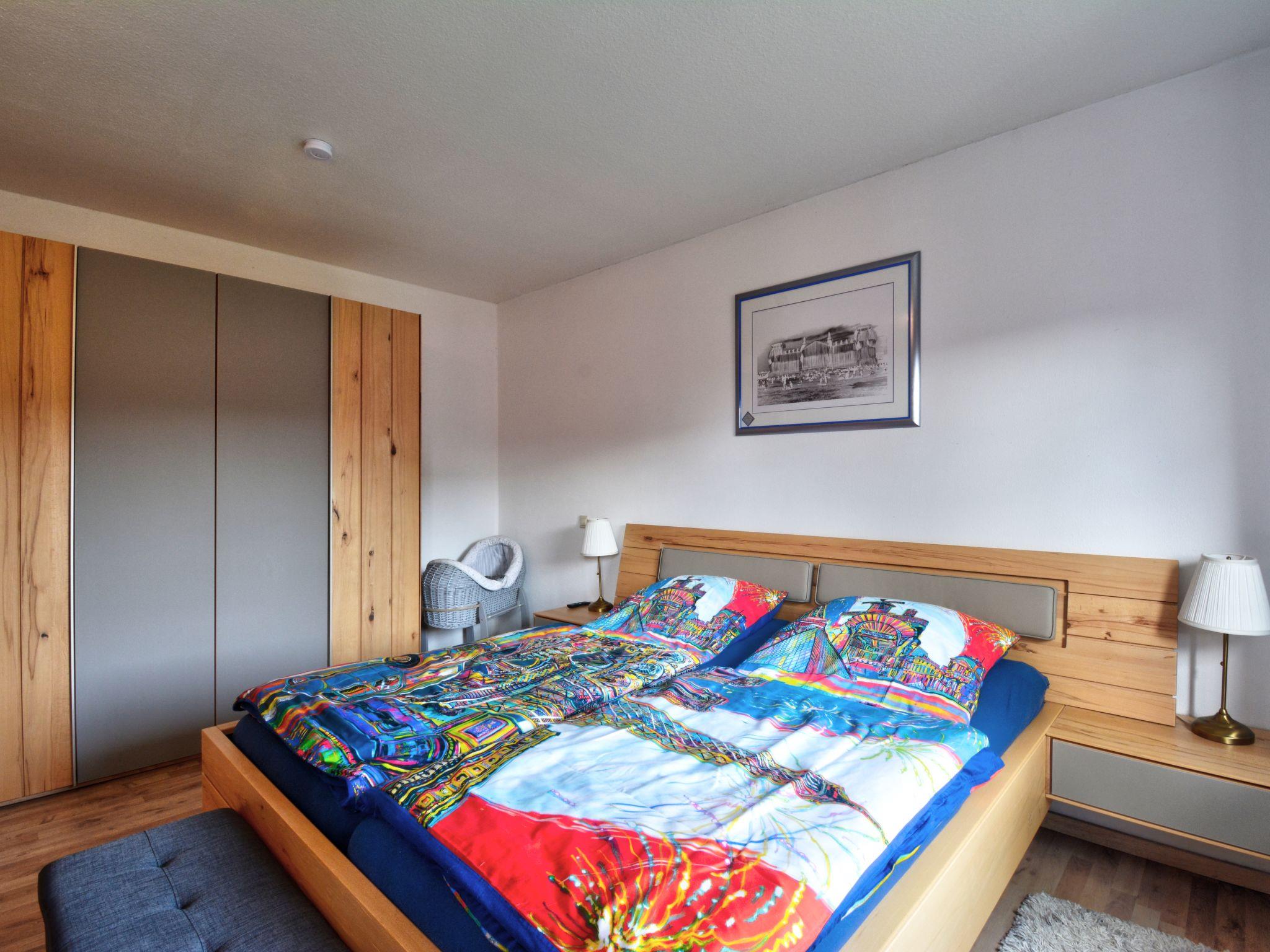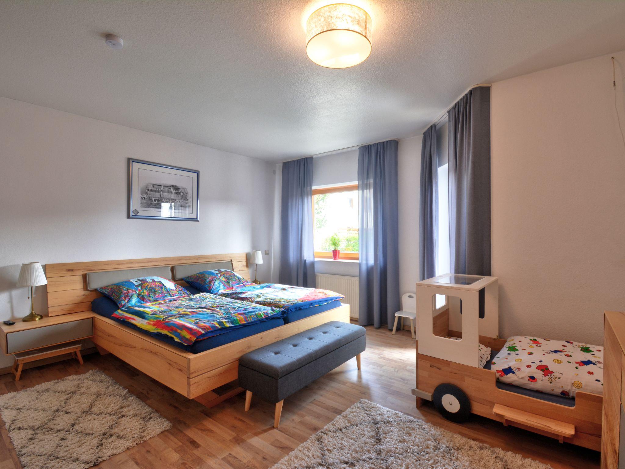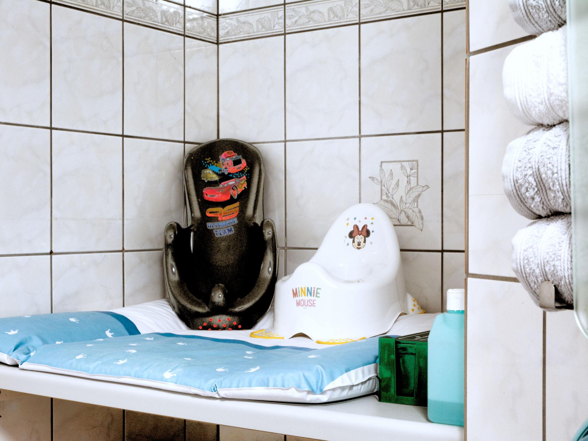 2-room apartment 85 m2, lower ground floor. Object suitable for 3 adults + 2 children. Comfortable and modern furnishings: entrance hall with 1 bed (90 cm, length 180 cm), 1 pull-out bed (1 pers. length 180 cm). Living/dining room 28 m2 with satellite TV (flat screen), hi-fi system. Exit to the terrace. 1 room with 1 bed (70 cm, length 140 cm), 1 double bed (180 cm, length 200 cm), satellite TV (flat screen). Exit to the terrace. Kitchen 11 m2 (oven, dishwasher, 4 ceramic glass hob hotplates, microwave, electric coffee machine) with small bar, radio. Bath/shower/WC with corner bath. Terrace 10 m2. Terrace furniture, deck chairs (2), box-room. Facilities: washing machine, sauna, children's high chair, baby changing unit. Internet (WiFi, free). Please note: non-smokers only. Maximum 1 pet/ dog allowed. Smoke alarm, fire extinguisher. The nursery is a walk-through room. The sauna is an infrared heating cabin. Storage room for bicycles available. Maximum occupancy: 3 adults and 2 children. Bookings accepted for holiday purposes only.