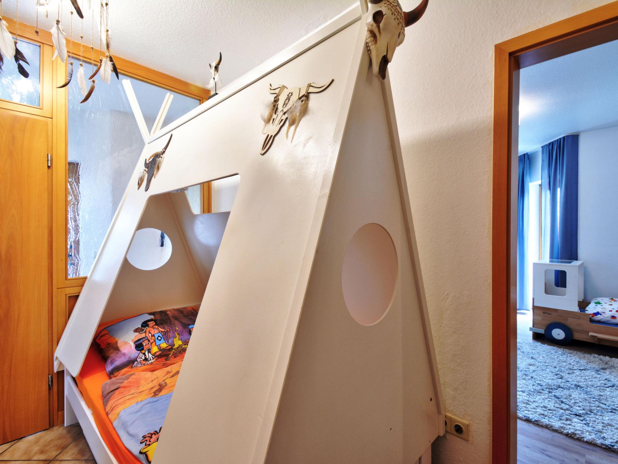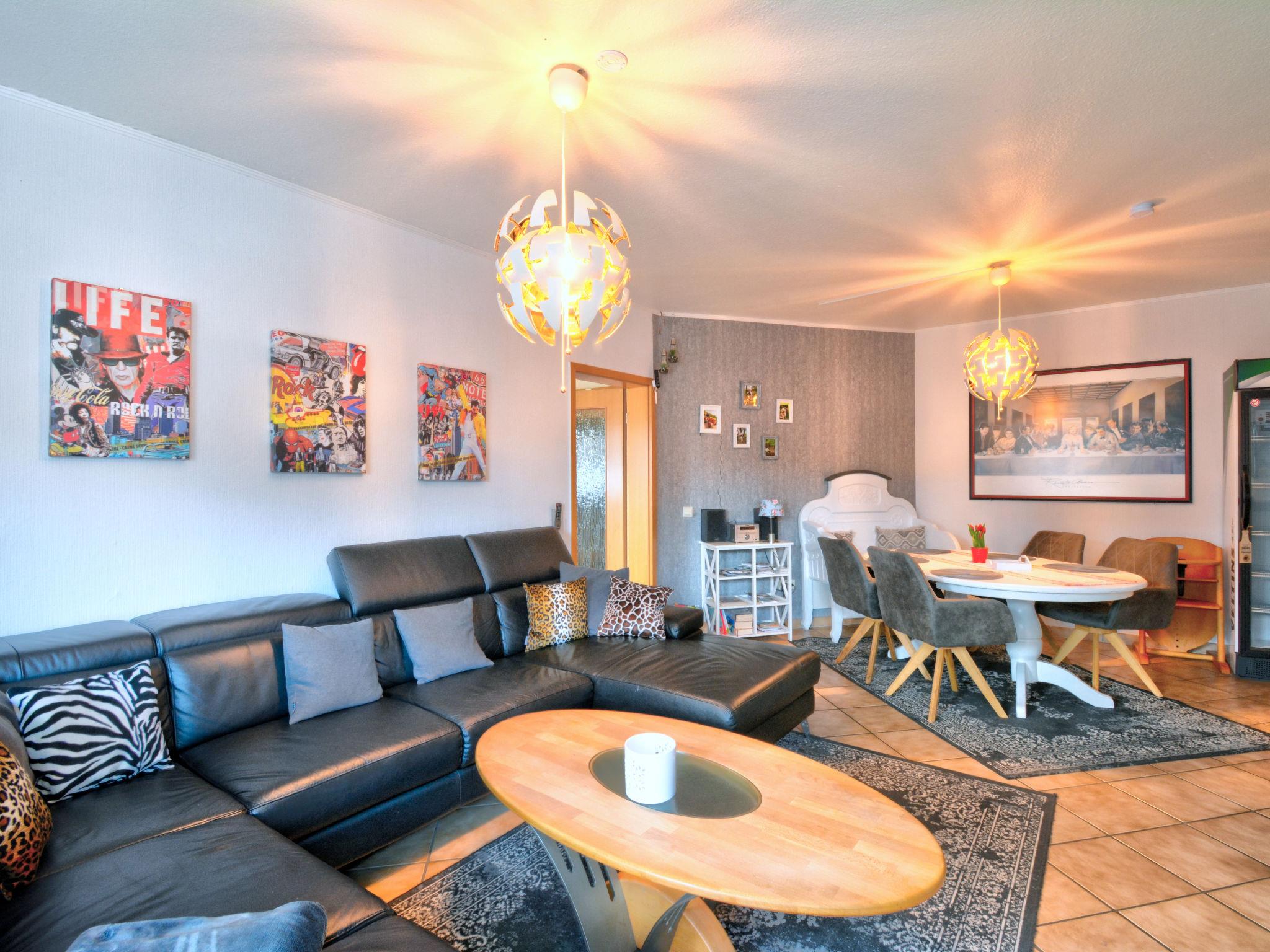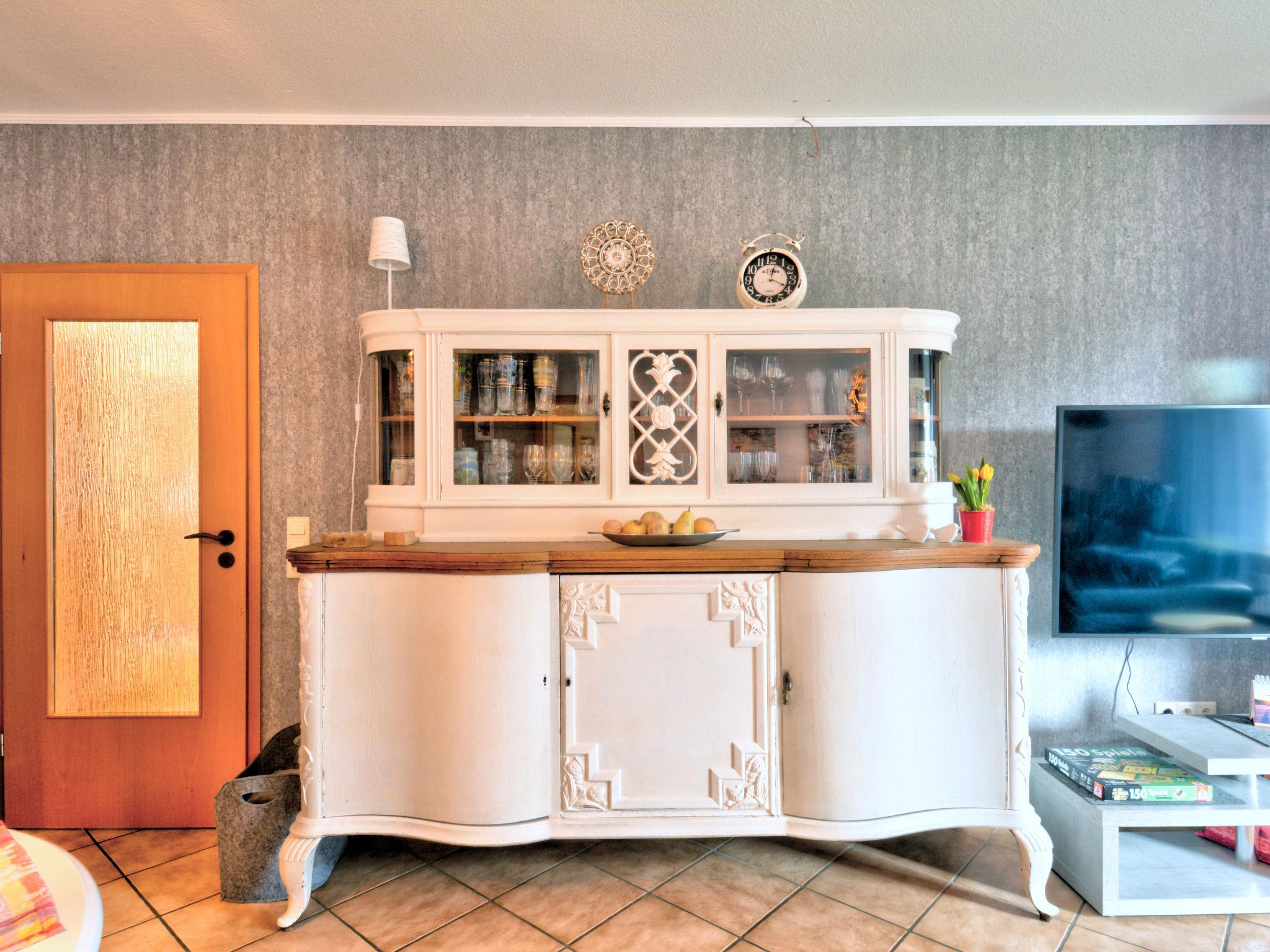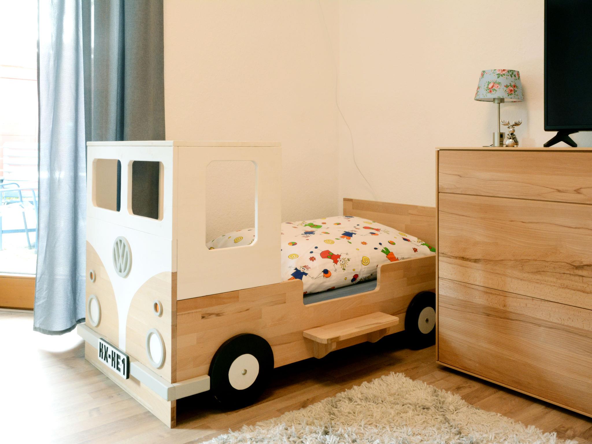 2-room apartment 85 m2, lower ground floor. Object suitable for 3 adults + 2 children. Comfortable and modern furnishings: entrance hall with 1 bed (90 cm, length 180 cm), 1 pull-out bed (1 pers. length 180 cm). Living/dining room 28 m2 with satellite TV (flat screen), hi-fi system. Exit to the terrace. 1 room with 1 bed (70 cm, length 140 cm), 1 double bed (180 cm, length 200 cm), satellite TV (flat screen). Exit to the terrace. Kitchen 11 m2 (oven, dishwasher, 4 ceramic glass hob hotplates, microwave, electric coffee machine) with small bar, radio. Bath/shower/WC with corner bath. Terrace 10 m2. Terrace furniture, deck chairs (2), box-room. Facilities: washing machine, sauna, children's high chair, baby changing unit. Internet (WiFi, free). Please note: non-smokers only. Maximum 1 pet/ dog allowed. Smoke alarm, fire extinguisher. The nursery is a walk-through room. The sauna is an infrared heating cabin. Storage room for bicycles available. Maximum occupancy: 3 adults and 2 children. Bookings accepted for holiday purposes only.