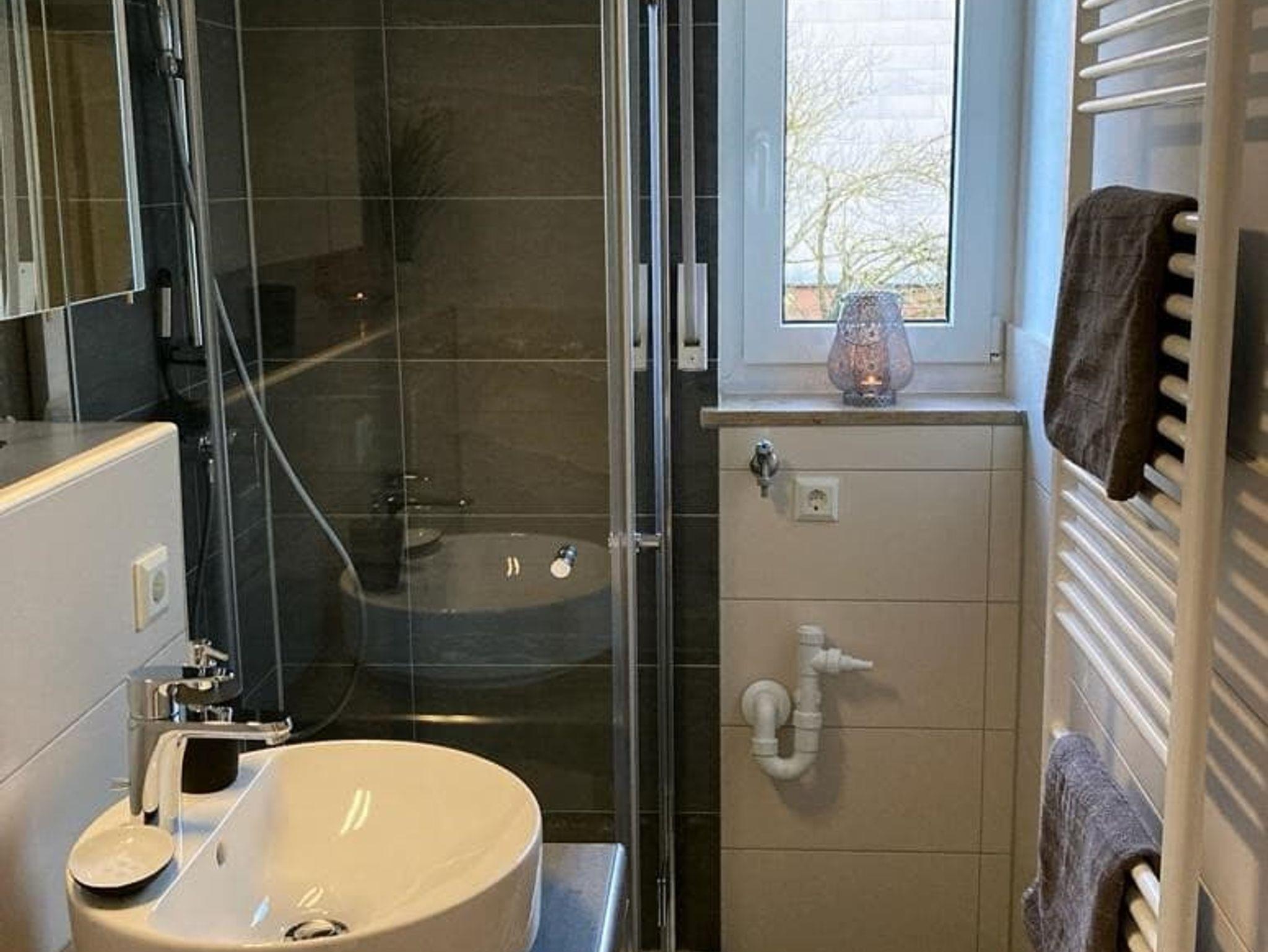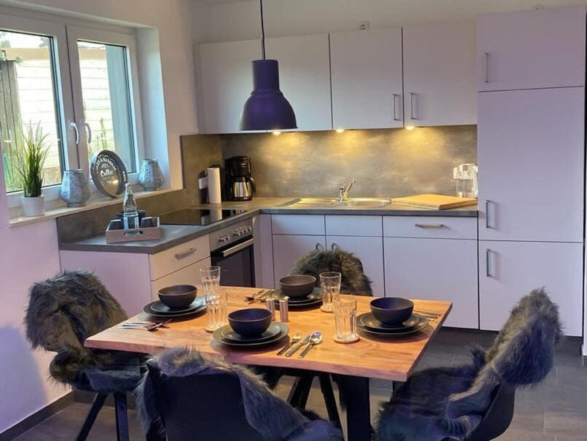 Die vollständig renovierte 2-Zimmer EG-Wohnung ist großzügig geschnitten, ruhig und hell. Vom Eingang aus links befindet sich das Wohnzimmer mit TV, WLAN und integrierter Küche. Diese verfügt über alle nötigen Geräte, inklusive Geschirrspüler. Über das Wohnzimmer gelangen Sie auch auf den Südbalkon, auf dem Sie sonnige Stunden genießen werden. Rechts vom Eingang liegt das Schlafzimmer mit neuem, 1,80m breitem Boxspringbett. Zwischen den Räumen befindet sich das Tageslichtbad, das über WC und Dusche verfügt. Im Nebenhaus steht auch ein Münzwaschautomat zur Verfügung, den sie gerne mitbenutzen können.Im Ort befindet sich ein Supermarkt der fussläufig erreichbar ist.