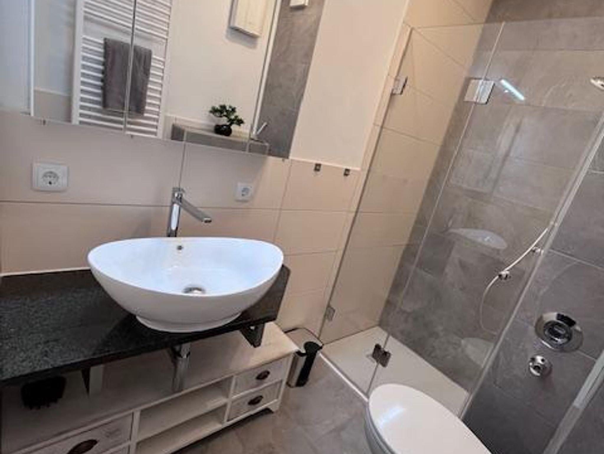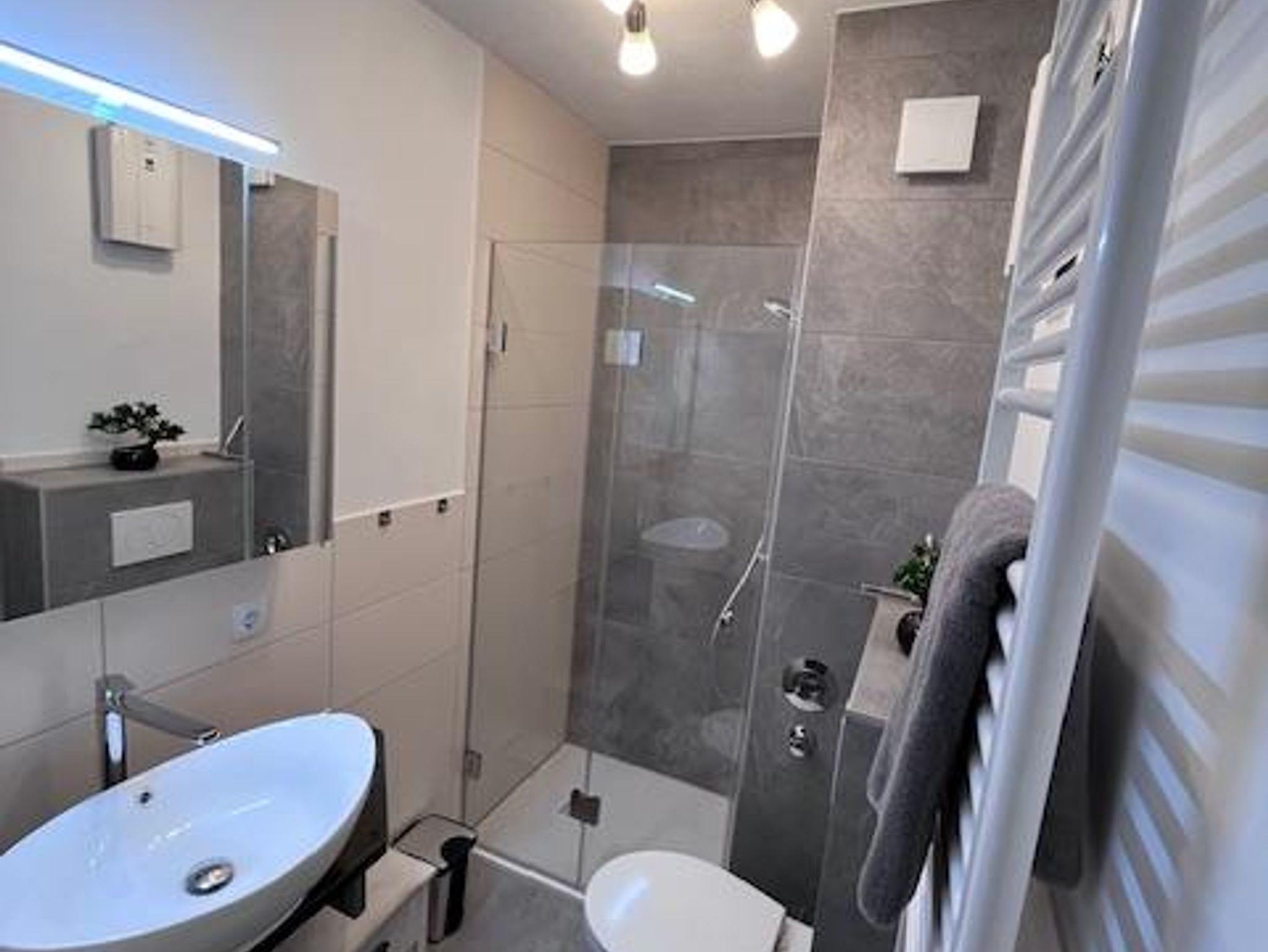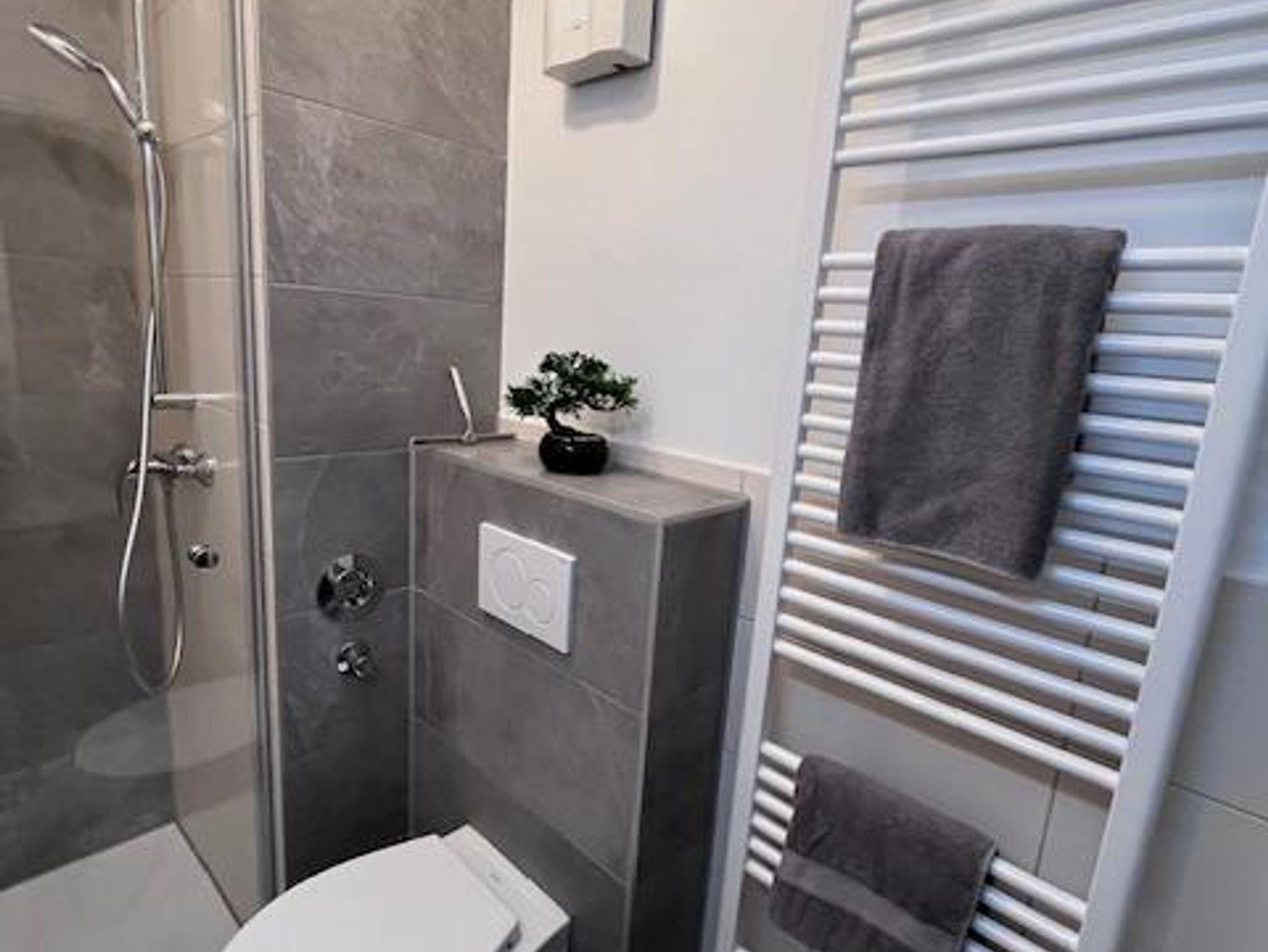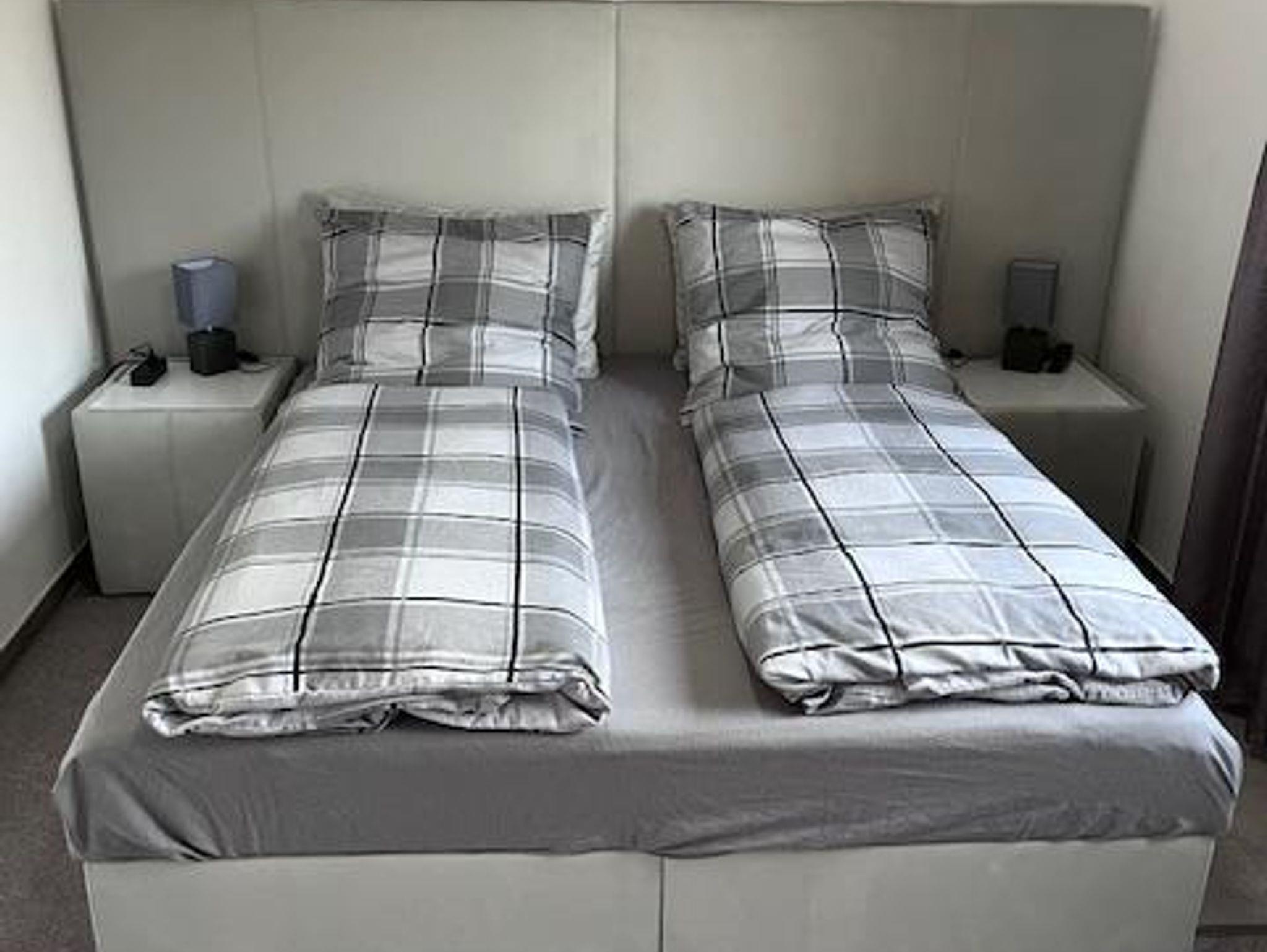 Die vollständig renovierte 2-Zimmer im 1. Stock, ist großzügig geschnitten, ruhig und hell. Vom Eingang geradeaus befindet sich das Wohnzimmer mit TV, WLAN und integrierter Küche. Diese verfügt über alle nötigen Geräte, inklusive Geschirrspüler. Über das Wohnzimmer gelangen Sie auch auf den Südbalkon, auf dem Sie sonnige Stunden genießen werden. Hinter dem Wohnzimmer liegt das Schlafzimmer mit neuem, 1,80m breitem Boxspringbett. Das neu renovierte Bad befindet sich neben dem Eingang im Flur, das über WC und Dusche verfügt. Im Nebenhaus steht auch ein Münzwaschautomat zur Verfügung, den sie gerne mitbenutzen können.Ein neueröfneter Supermarkt ist fussläufig zu erreichen.