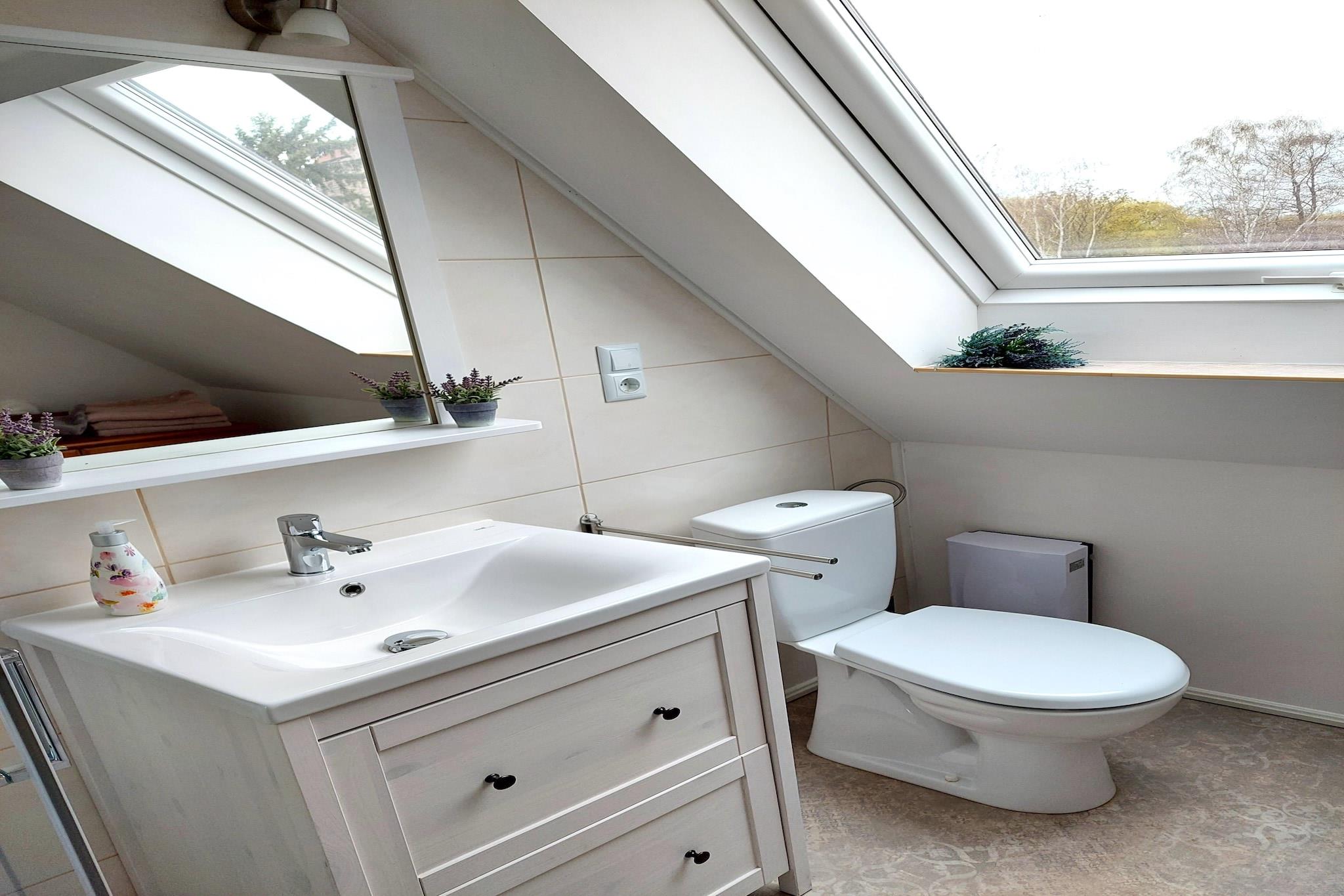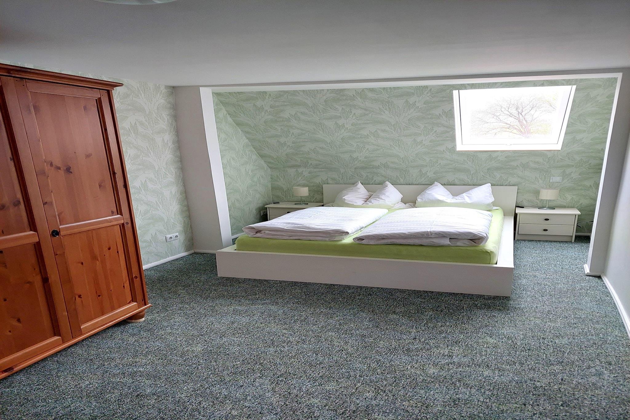 Smukt feriehus på Plauer See nær Brandenburg an der Havel. Den hyggelige bolig er velegnet til små familier eller små grupper af venner, der elsker vandet og ønsker at tilbringe en afslappende tid der. Plauer See er en af de smukkeste søer i Mecklenburg Lake District, og et sandt paradis for svømmere og vandsportsentusiaster. Her kan du ikke kun svømme, sejle, surfe, dykke og fiske, men også sejle en båd på vandet. Du kan også opdage centrum af Brandenburg an der Havel, som med rette kan kaldes "Venice of the Mark Brandenburg" på grund af sine søer, kanaler og middelalderlige vandgrave. Lejligheden har et fuldt udstyret køkken, tv og en sovesofa til en ekstra person. I haven eller på terrassen kan I slappe af med en god bog eller nyde en hyggelig grillaften. Parkering er tilgængelig på stedet.