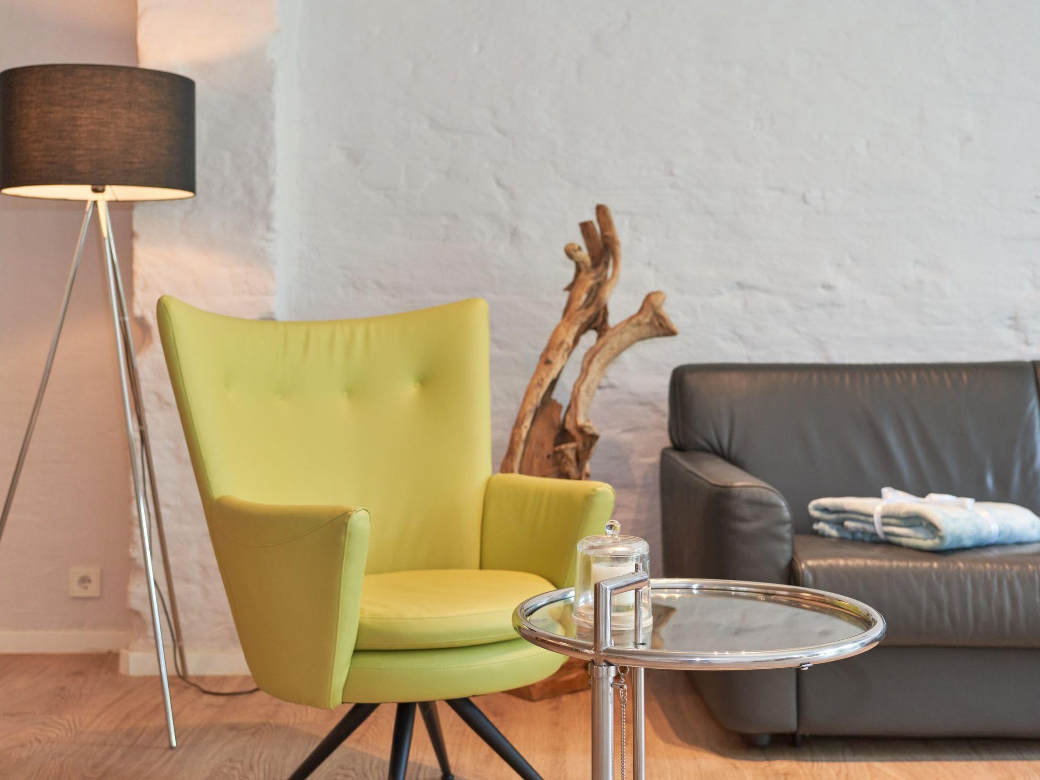 The holiday apartment is on the ground floor of the former tannery and has a spacious and generous layout (86m²). It is barrier-free throughout with unrestricted wheelchair access. The generously equipped apartment is suitable for 4 people or with supplementary beds for 6 people. Children’s travel beds and highchairs can be booked in advance. The Italian sofas and armchairs in the living room invite you to relax. The big flatscreen TV with cable channels and a Blu-ray player provide ample entertainment. The stereo system with a Bluetooth connection allows you to enjoy your own music. Wi-Fi is available in the apartment. The living room directly adjoins the kitchen-diner with a fully-equipped kitchen (toaster also available on request) and a generous, solid wooden dining table, inviting you to enjoy culinary experiences. One of the two bedrooms is furnished with an extra-long box spring bed (210cm).