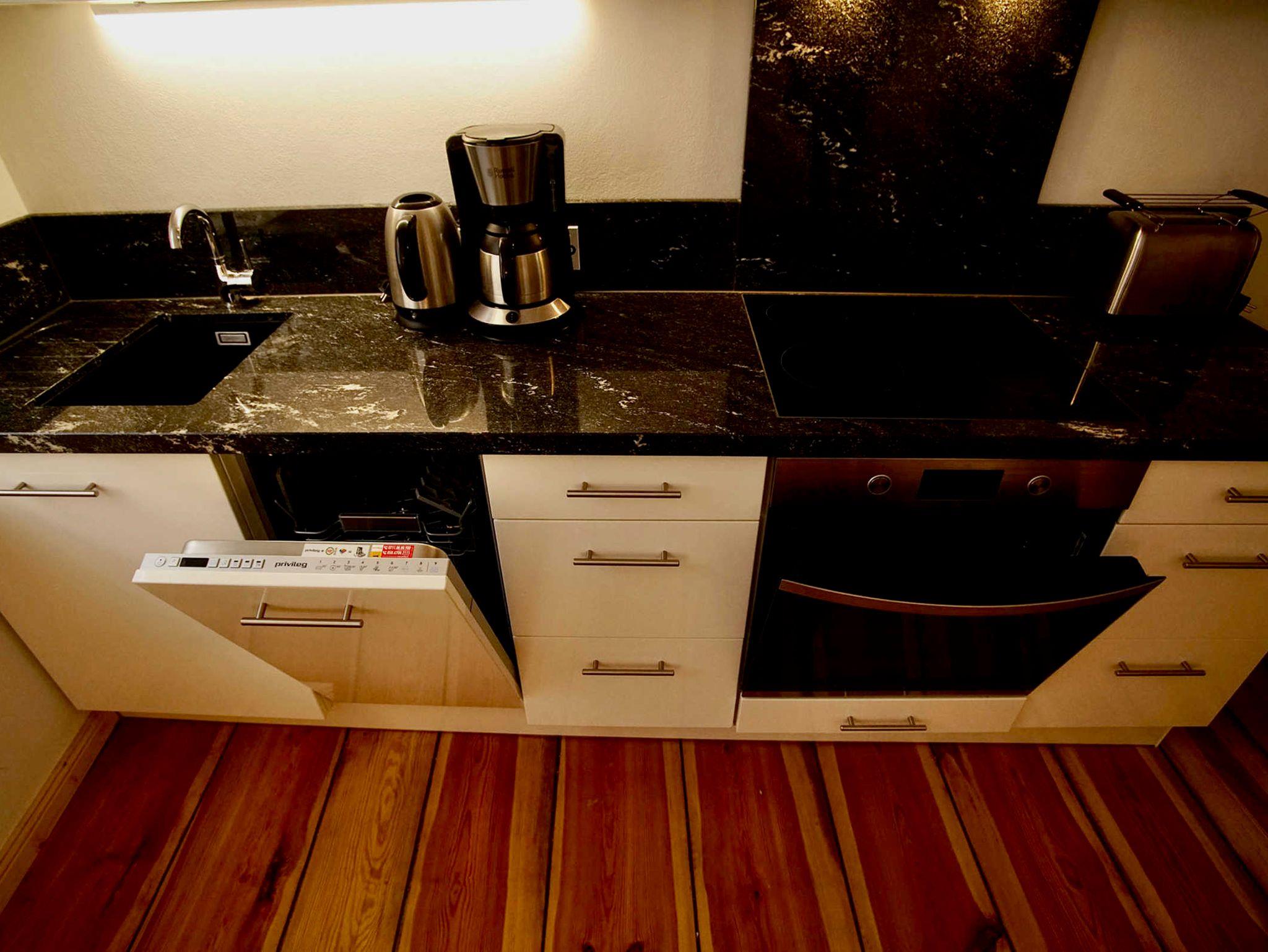 In der gemütlichen Wohnküche befindet sich eine Küchenzeile mit Geschirrspülmaschine, Herd/Ceranfeld, Kühlschrank mit Tiefkühlfach, sowie ein gemütlicher Ess-/Wohnbereich mit Fernseher. Von diesem Raum gelangt man auf die großzügige Sonnenterasse, auf der Gartenmöbeln und Grill für gemütliche Stunden bereitstehen.