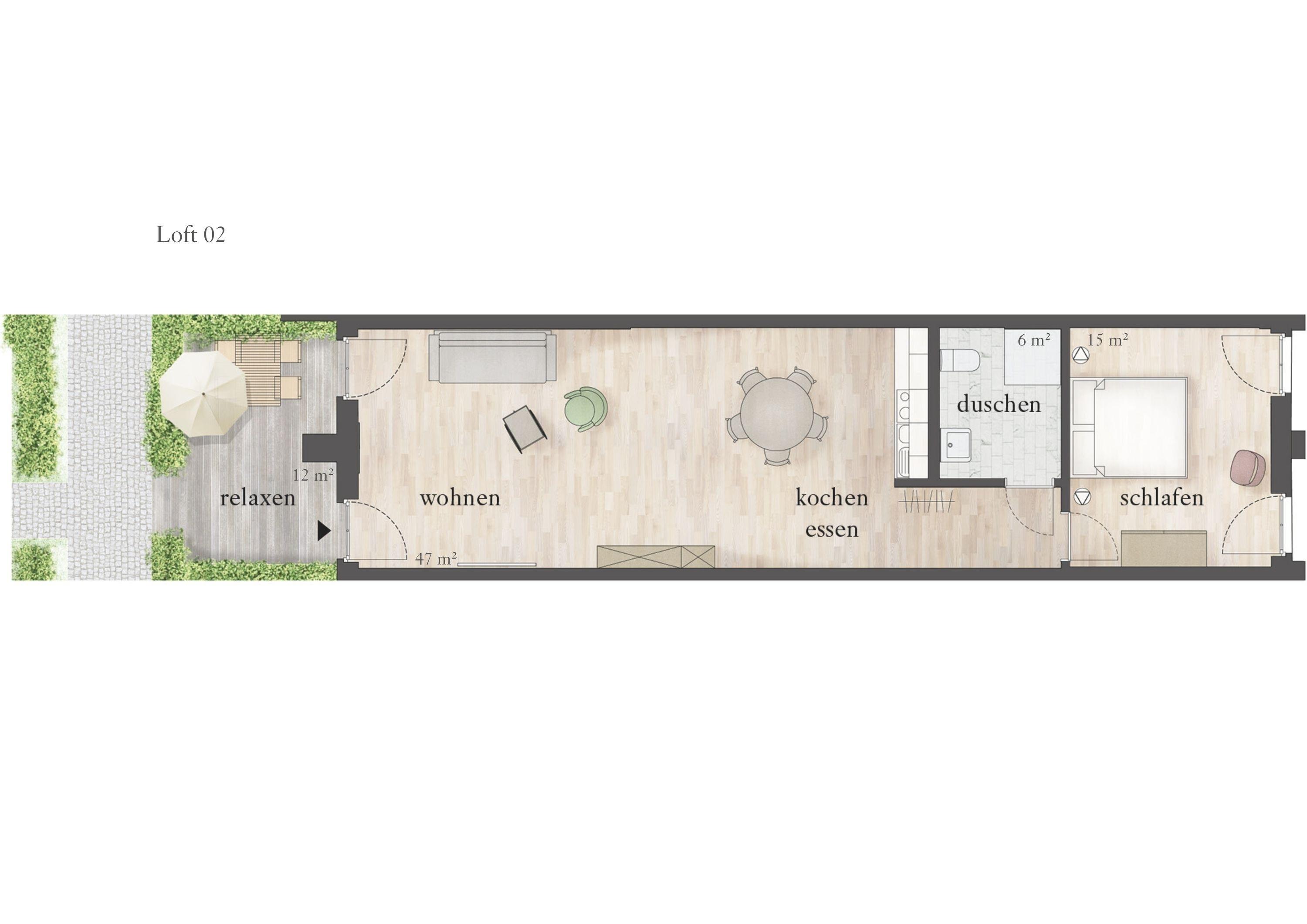 Die Ferienwohnung liegt im Erdgeschoss der ehemaligen Färberei der Kammgarnspinnerei und zeichnet sich durch ihre geräumige und großzügige Raumaufteilung (68m²) aus. Sie ist in Gänze barrierefrei und somit auch uneingeschränkt rollstuhlgeeignet. Die gut geschnittene, viel Platz bietende und komfortabel ausgestattete Loft-Ferienwohnung ist durch Aufbettung nicht nur für 2 sondern auch für 4 Personen geeignet. Die Bereitstellung von Kinderreisebetten und Hochstühlen ist nach Vorbestellung jederzeit möglich.
