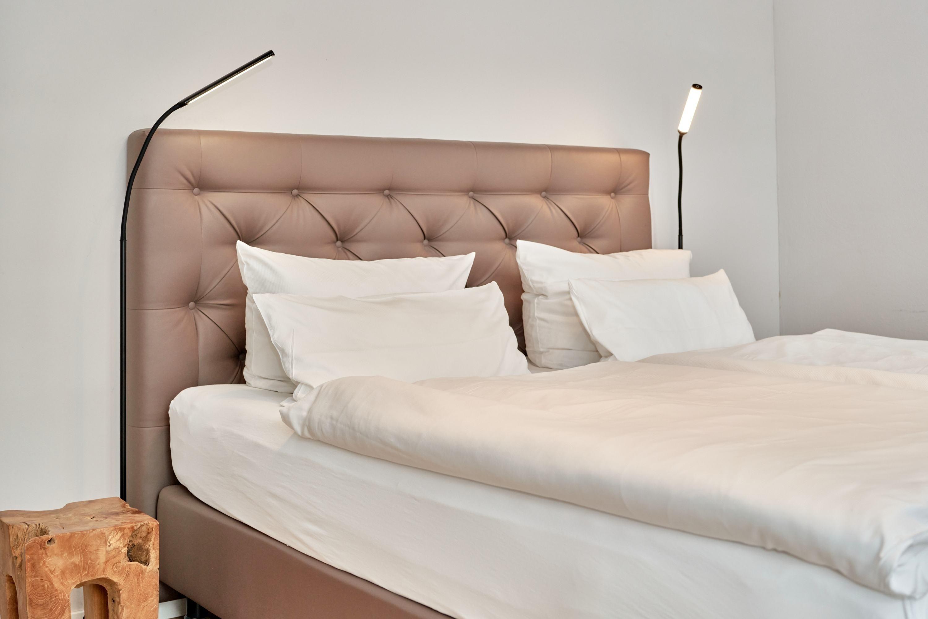Das sehr große Schlafzimmer ist mit einem überlangen (2,10 m), komfortablen Boxspringbett versehen. Im Schlafraum befindet sich ein großer Schwebetürenschrank. Eine der Türen ist mit einem Ganzkörperspiegel versehen.