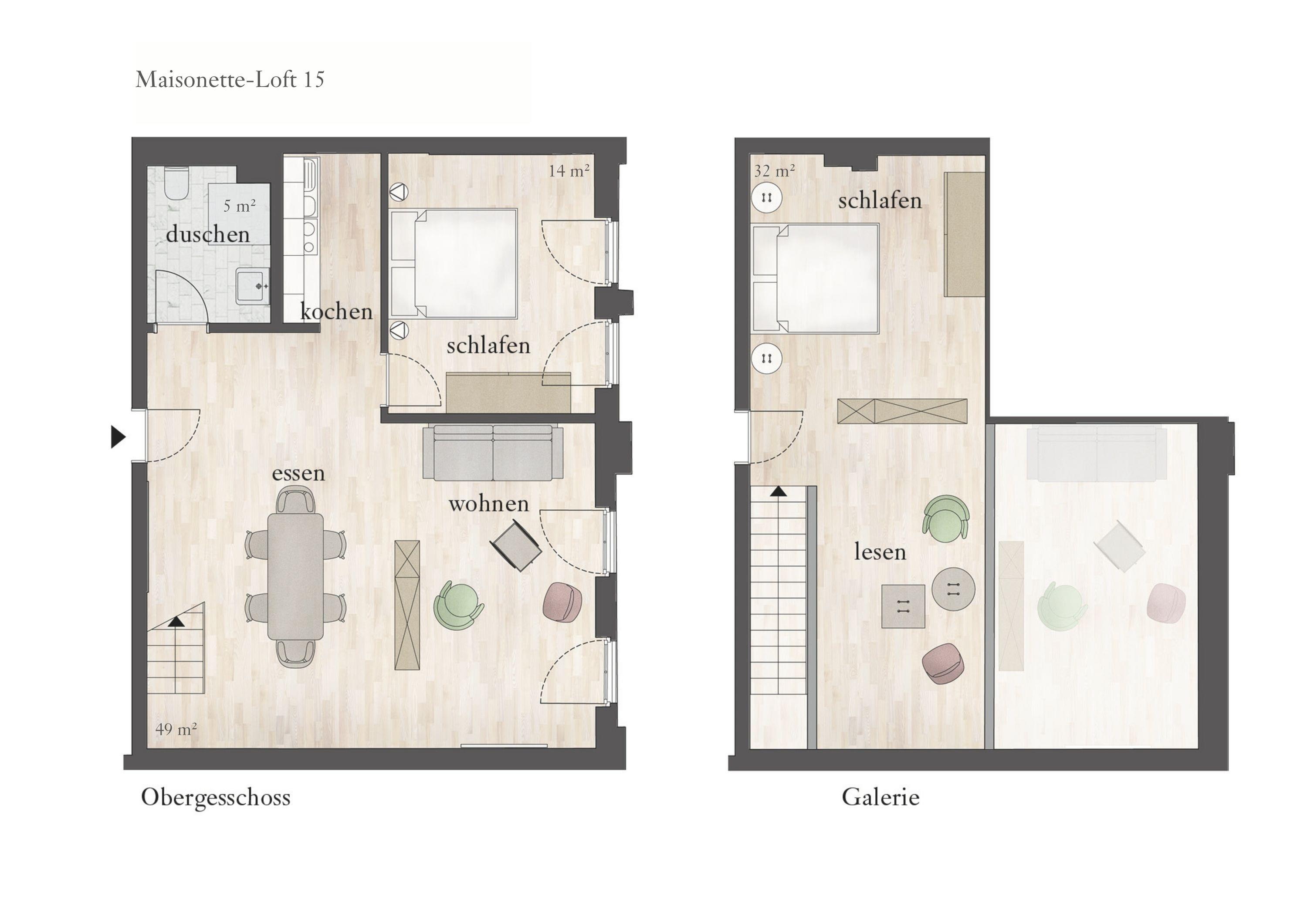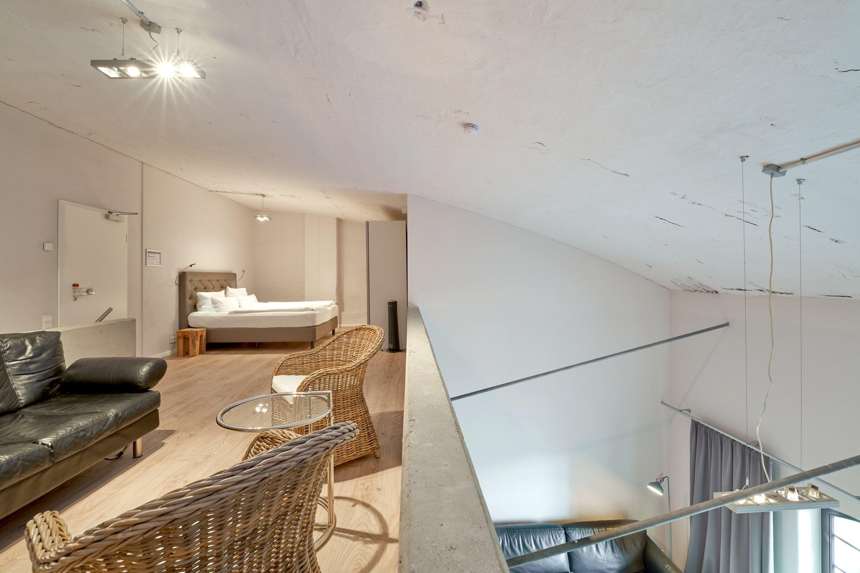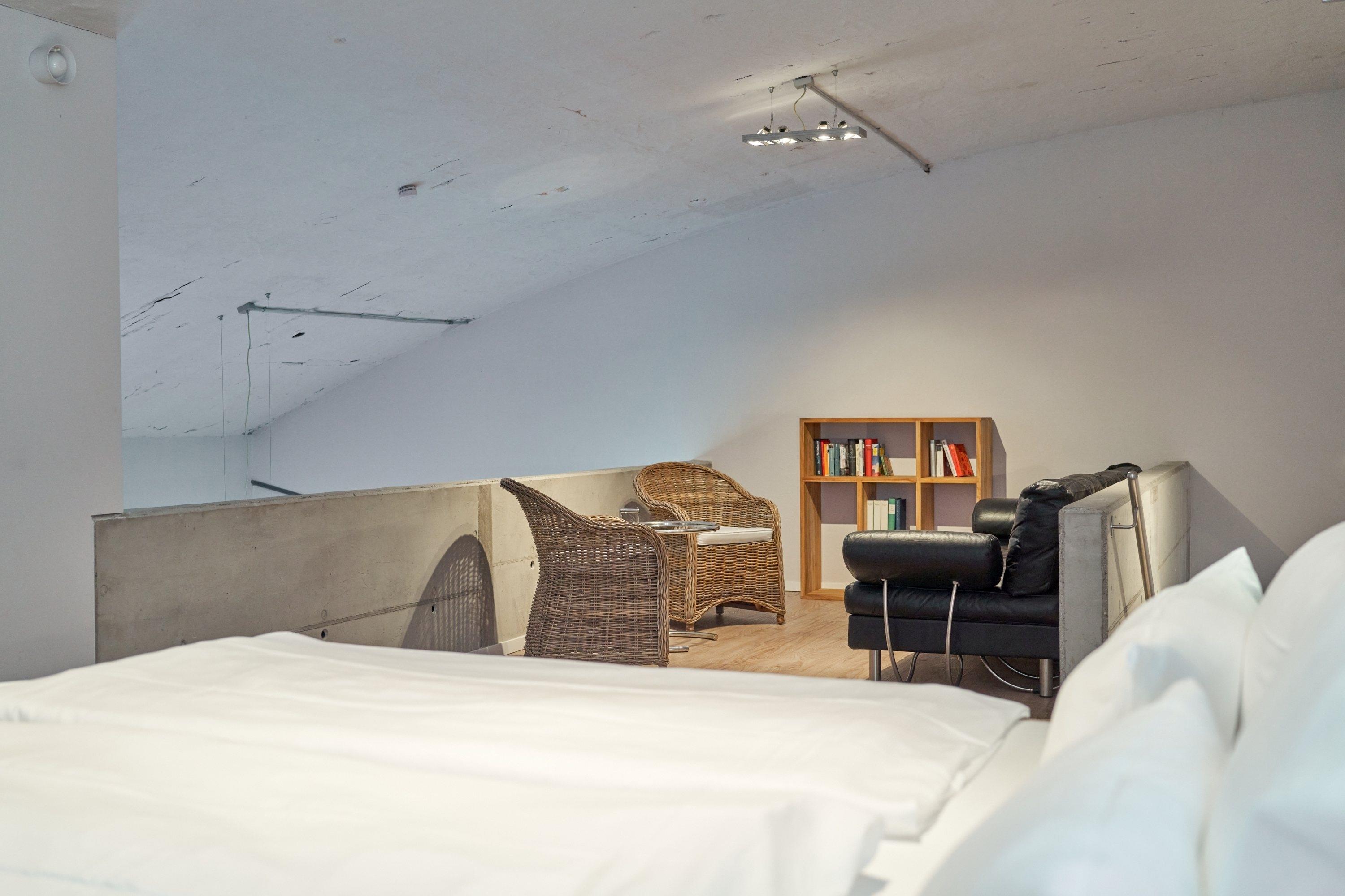 Die Maisonette-Ferienwohnung liegt im Obergeschoss der ehemaligen Färberei der Kammgarnspinnerei und zeichnet sich durch ihre geräumige und großzügige Raumaufteilung (100m²) aus. Die gut geschnittene, viel Platz bietende und komfortabel ausgestattete Loft-Ferienwohnung ist durch Aufbettung nicht nur für 4 sondern auch für 6 Personen geeignet. Die Bereitstellung von Kinderreisebetten und Hochstühlen ist nach Vorbestellung jederzeit möglich.