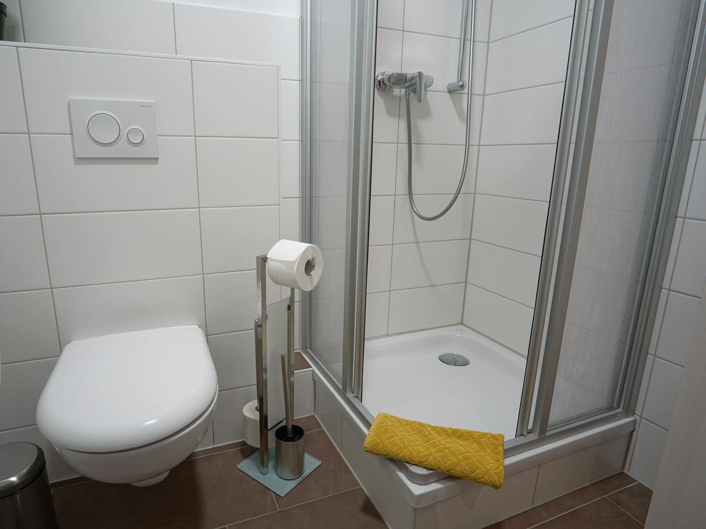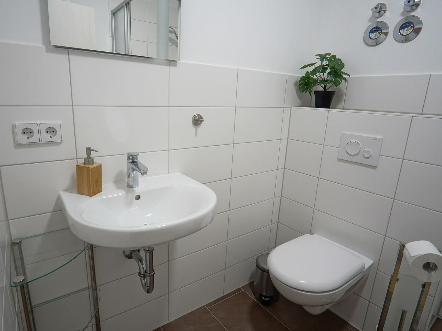 Die Schlafmöglichkeiten im Appartement sind ruhig und einladend. Hier können Sie sich problemlos erholen und für den nächsten Tag neue Energie tanken. Der moderne Sanitärbereich verfügt über eine Dusche, ein WC und alle notwendigen Utensilien wie einen Haartrockner, Waschbecken und Spiegel. Für Ihr Wohlbefinden ist die Wohnung eine Nichtraucherunterkunft, und die Sicherheit wird durch Rauchmelder gewährleistet.