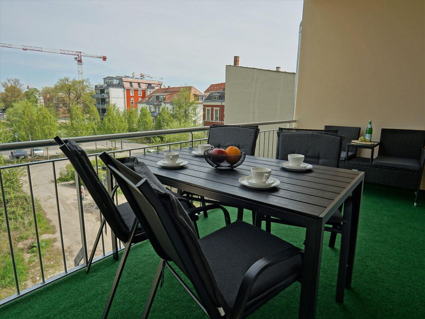 Ein weiteres Highlight der Wohnung ist der Balkon, auf dem Sie die frische Luft genießen und die Umgebung erkunden können. Stellen Sie sich vor, wie Sie bei einer Tasse Kaffee oder einem Glas Wein den Tag auf Ihrem privaten Balkon ausklingen lassen. Gartenmöbel laden zum Verweilen ein und bieten eine zusätzliche Möglichkeit, die Natur um sich herum zu genießen.