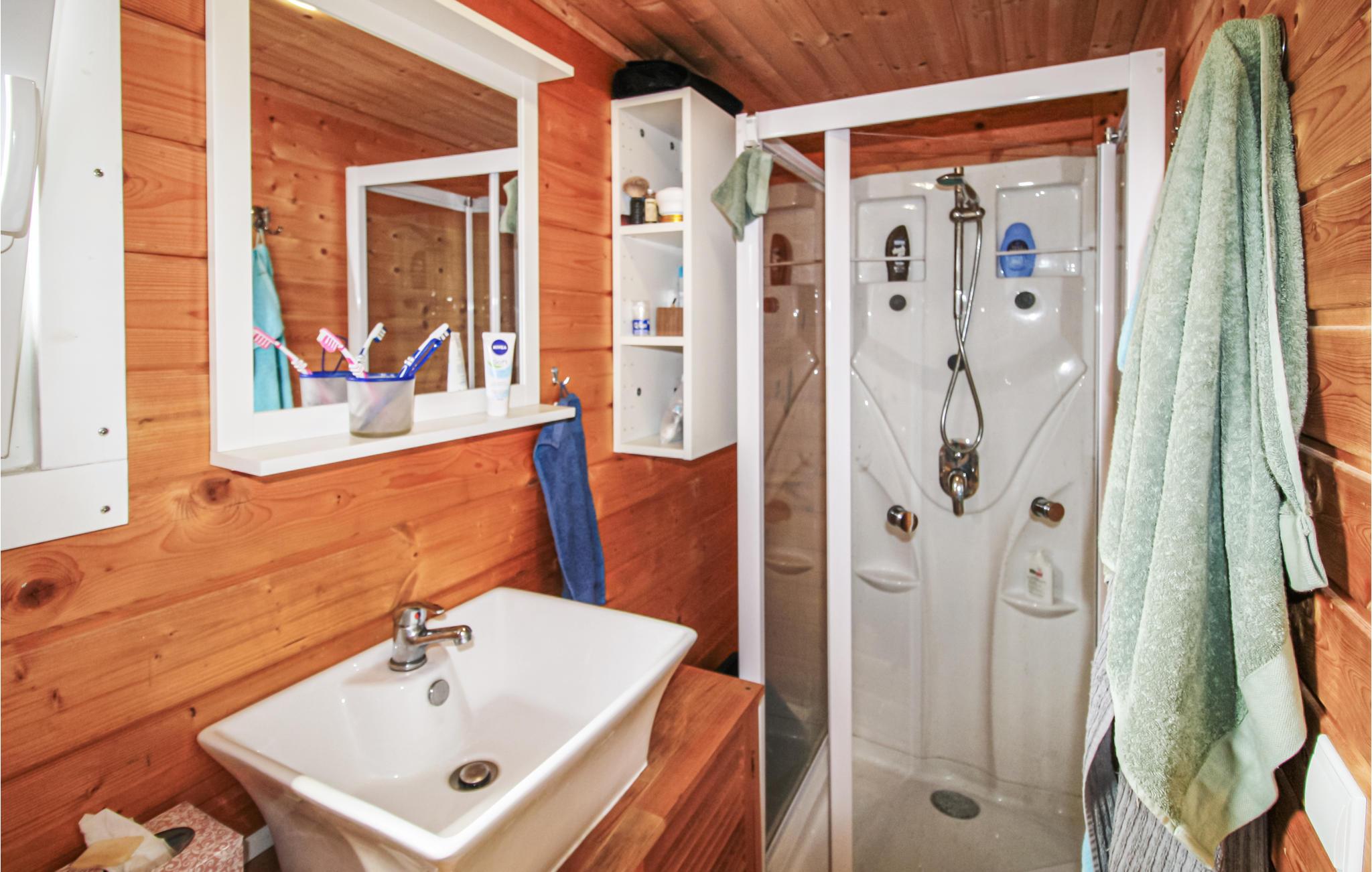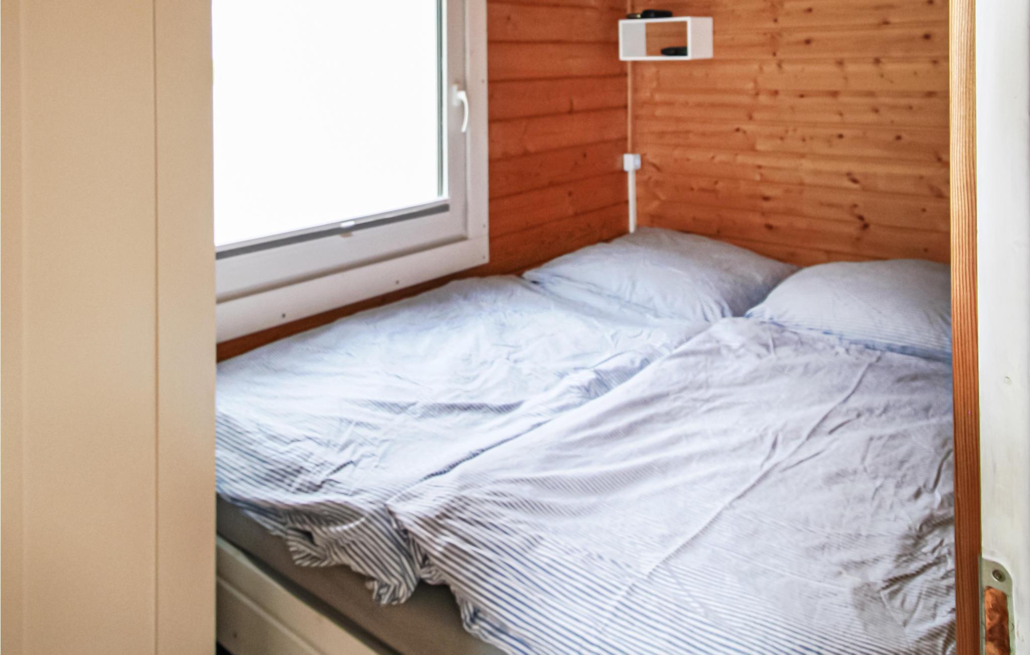 Husbåden kan rumme op til tre personer: der er et privat soveværelse med dobbeltseng (140x200 cm) og en foldbar sovesofa (120x200 cm) i opholdsområdet.