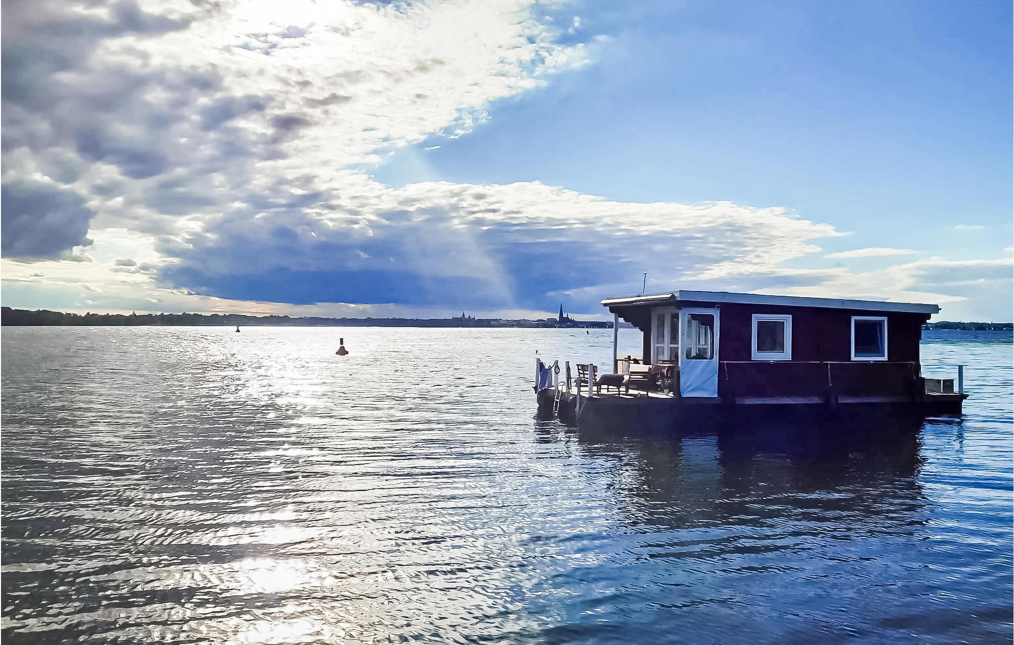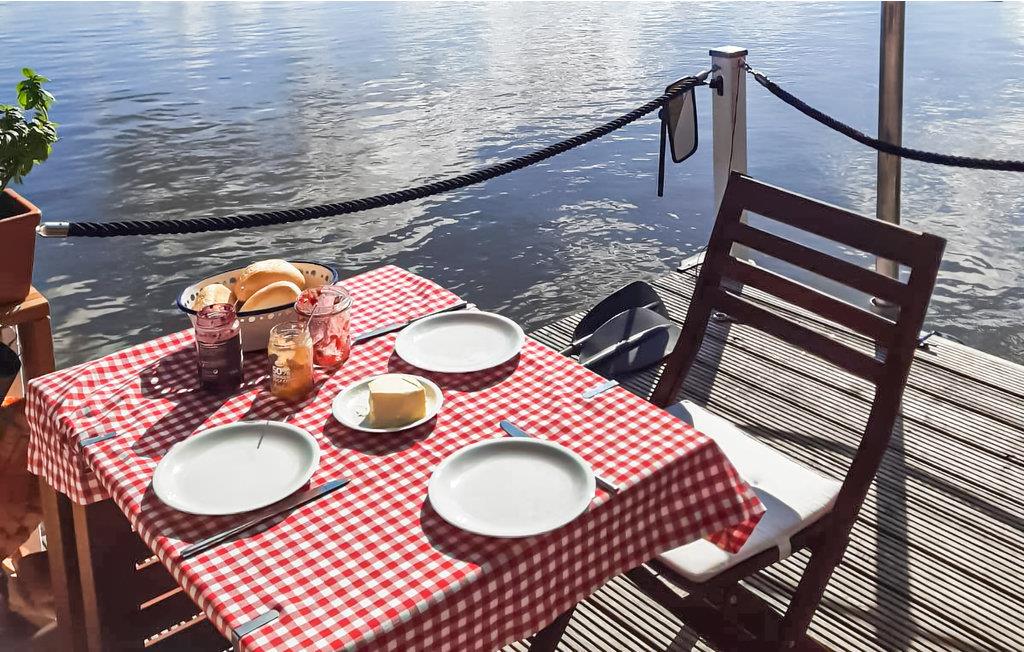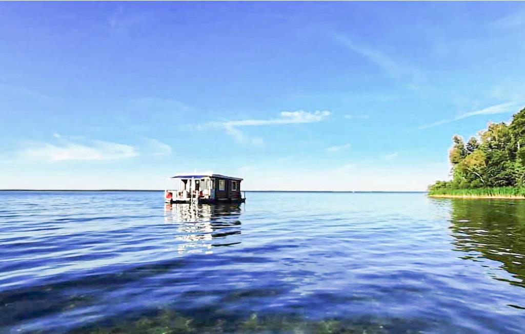I Naturpark Vest Havelland ligger denne skønne husbåd, hvor I kan holde ferie uden at have certifikat.