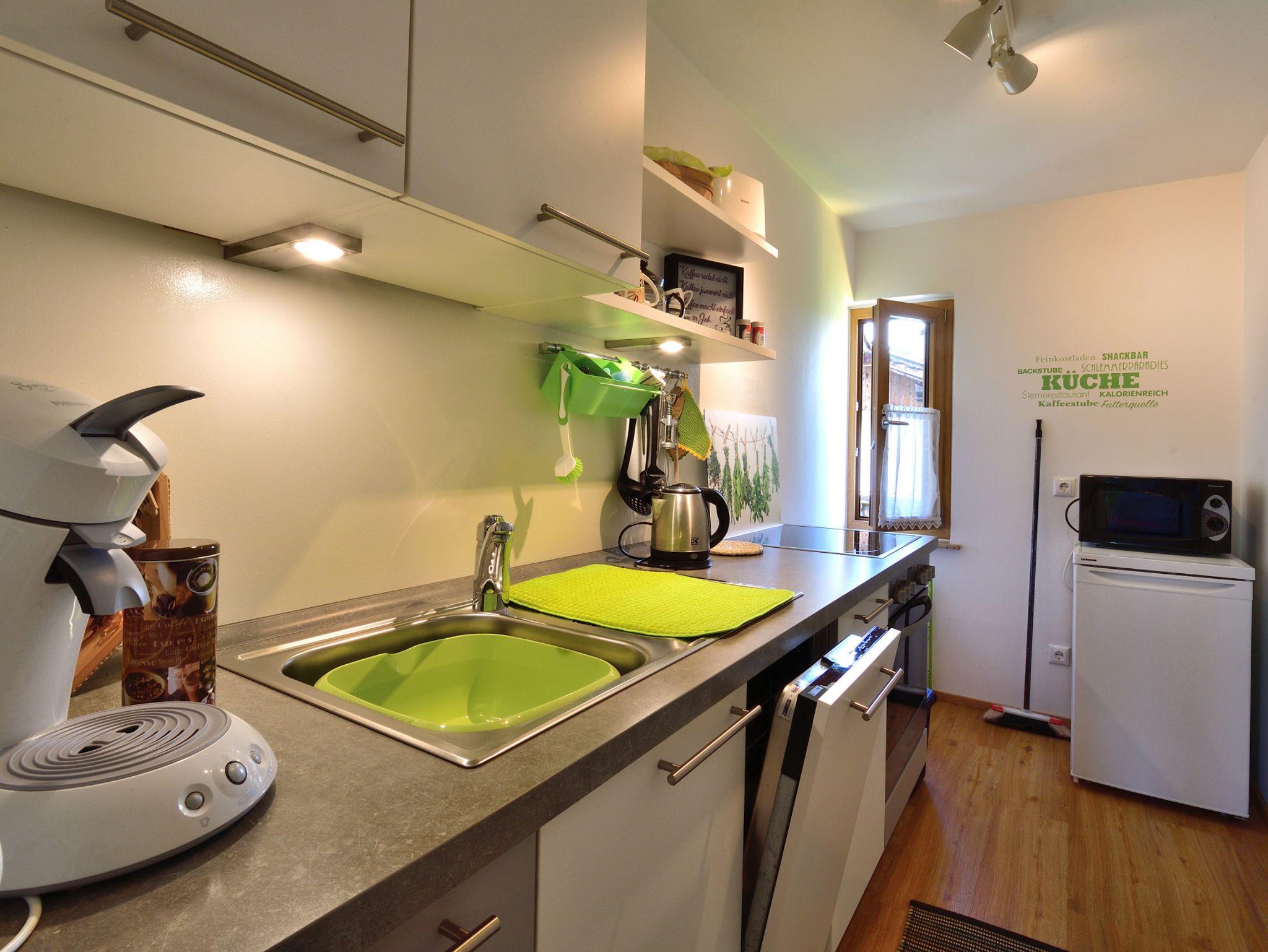 Kaiserblick hoch2 (1. Stock)Die 45 qm große Ferienwohnung Kaiserblick hoch² liegt im 1. Stock eines Reihenhauses und ist ideal für eine Einzelperson sowie Paare. Die ländlich-modern eingerichtete 2-Zimmer-Wohnung punktet vor allem mit einem überragenden Blick ins Kaisergebirge (Tirol) sowie einem überdachten West-/Raucher-Balkon, Bergpanorama inklusive. Die gemütlich eingerichtete Wohnung verfügt über ein großzügiges Wohn-/Esszimmer inkl. Sat-TV. Die offene Kochnische ist mit E-Herd, Backofen, Mikrowelle, Toaster, Senseo-Kaffeepadmaschine, Wasserkocher, Kühlschrank inkl. TK-Fach sowie Geschirrspülmaschine ausgestattet. Das Schlafzimmer mit Blick auf den Sulzberg ist modern möbliert. Liegefläche 1,60 x 2 m. Bettwäsche vorhanden.Helles Tageslichtbad mit Fenster, Rainfall-Dusche, Waschbecken, WC und hochwertigem Unterputzradio. Handtücher liegen bereit. Im Keller stehen eigens für Gäste Waschmaschine und Trockner zur Verfügung, so dass die Ferienwohnung Kaiserblick hoch2 in Brannenburg auch für längere Aufenthalte geeignet ist.Gäste erhalten außerdem einen kostenfreien Zugang zum W-LAN.Im nach Absprache mitnutzbaren Garten gibt es eine abschließbare Einstellmöglichkeit für Fahrräder sowie einen überdachten Freisitz inkl. Kugelgrill.