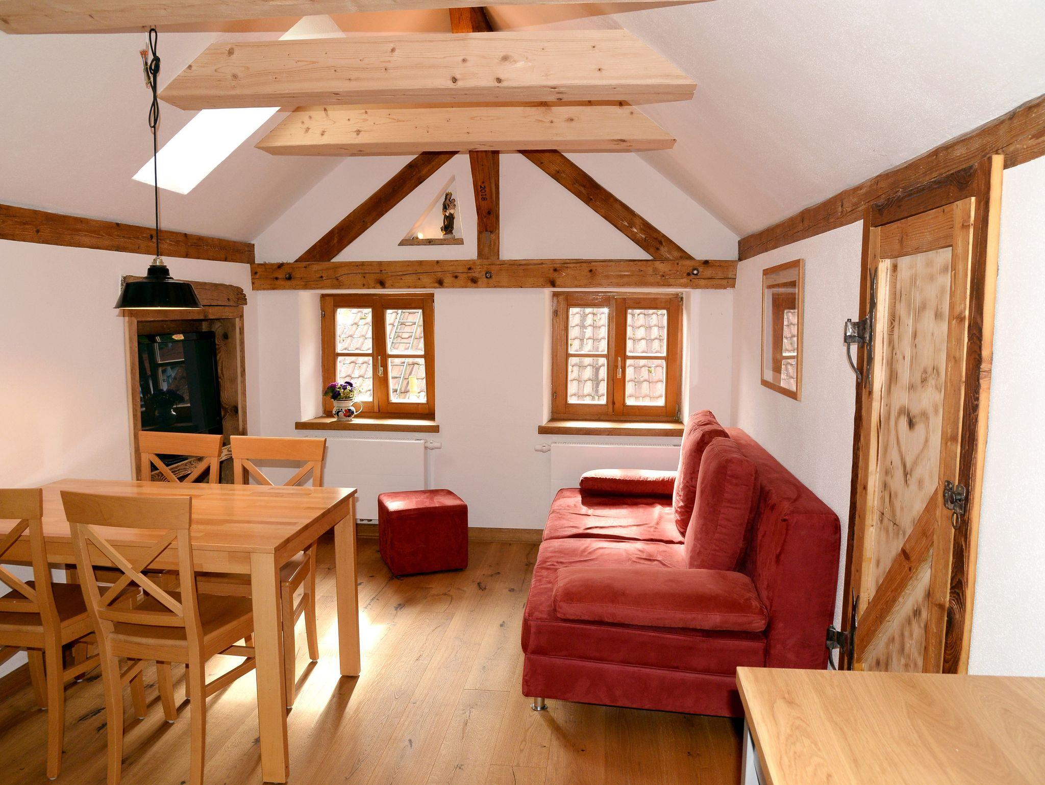 Neu teilrenovierte Ferienwohnung 2 Personen, 40 qm, Wohn/ Schlafraum mit Kochnische, 1 Schlafzimmer mit Doppelbett, Bad und WC, Sat-TV, Nichtraucher. Haustiere sind willkommen (10€ pro Nacht). Es erwartet Sie eine modernisierte Ferienwohnung im Dachgeschoss, die hell und freundlich mit neuer Einrichtung, ausgestattet ist. Bettwäsche und Handtücher sowie Toilettenartikel sind vorhanden.