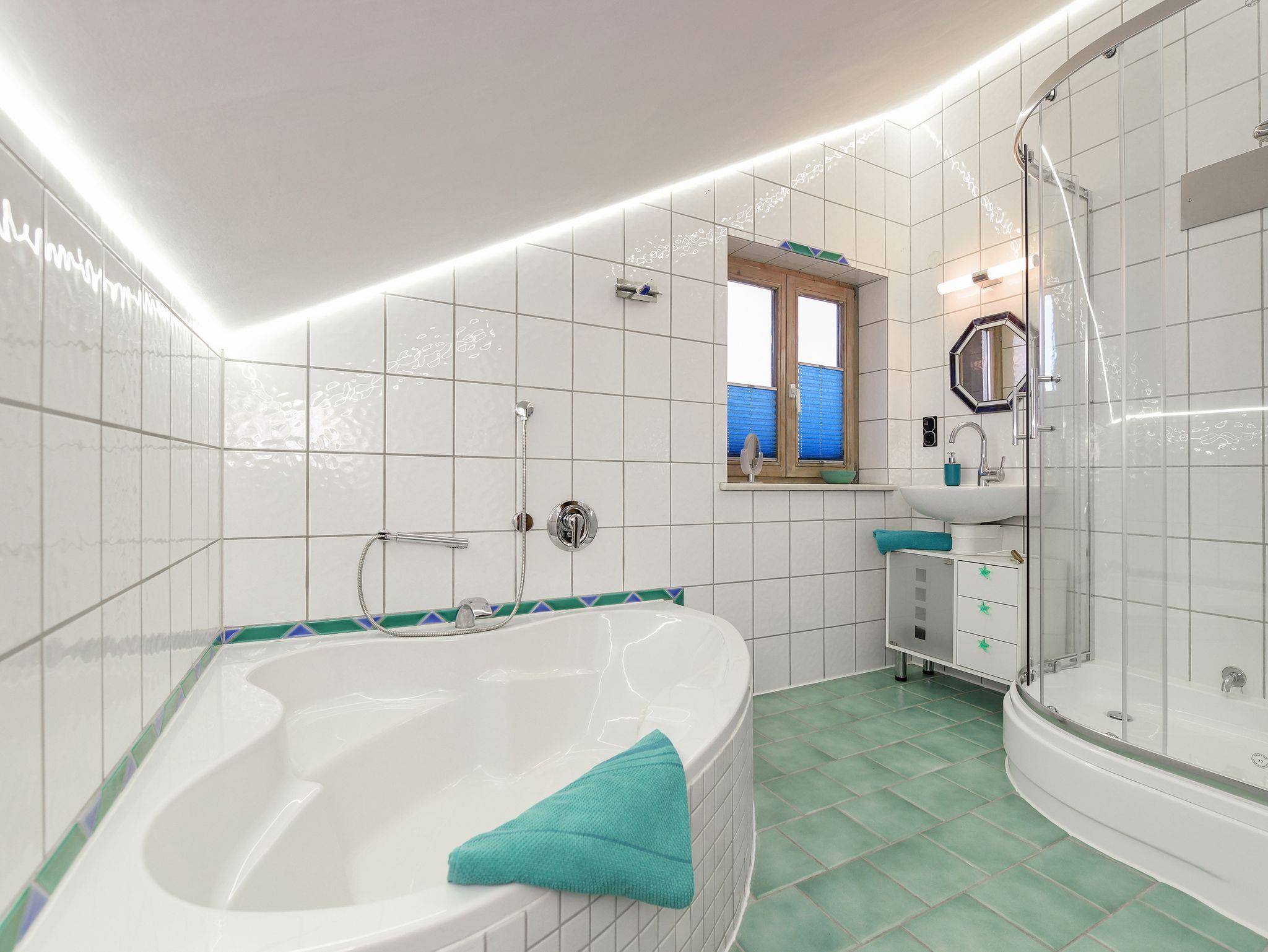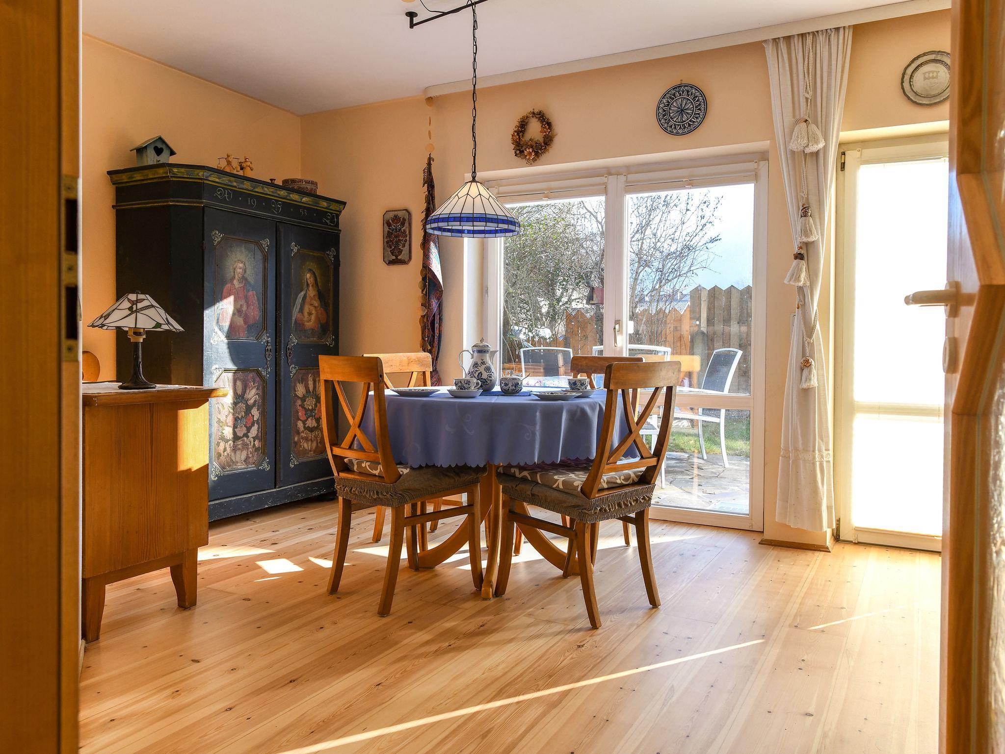 Das Ferienhaus „Im Inntal dahoam“ in Brannenburg befindet sich in einer ruhigen Wohngegend und ist mit rund 80 qm ideal für 2-4 Personen. Zwei getrennte Schlafräume sorgen für ausreichend Privatspähe. Hauptschlafzimmer ist mit einem King-Size Doppelbett eingerichtet. Das zweite Schlafzimmer ist mit einer Queen-Size Doppelbett ausgestattet. Das helle Tageslicht-Bad verfügt über Dusche, Eckbadewanne, Fenster, Waschbecken, Fön. Bettwäsche, Hand- und Badetücher sind inklusive.Die voll ausgestattete Küche inkl. E-Herd, Kühlschrank mit TK-Fach, Geschirrspülmaschine, Pad-Kaffeemaschine, Wasserkocher und Mikrowelle lässt Sie im Urlaub nichts vermissen. Vom Wohn-/Esszimmer inkl. Sat-TV und -Radio haben Sie direkten Zugang auf die sonnige Terrasse mit Blick auf die Berge. Wer einen längeren Aufenthalt in Brannenburg plant, kann die eigens für Gäste vorhandene Waschmaschine sowie Trockner im Keller des Doppelhauses nutzen.