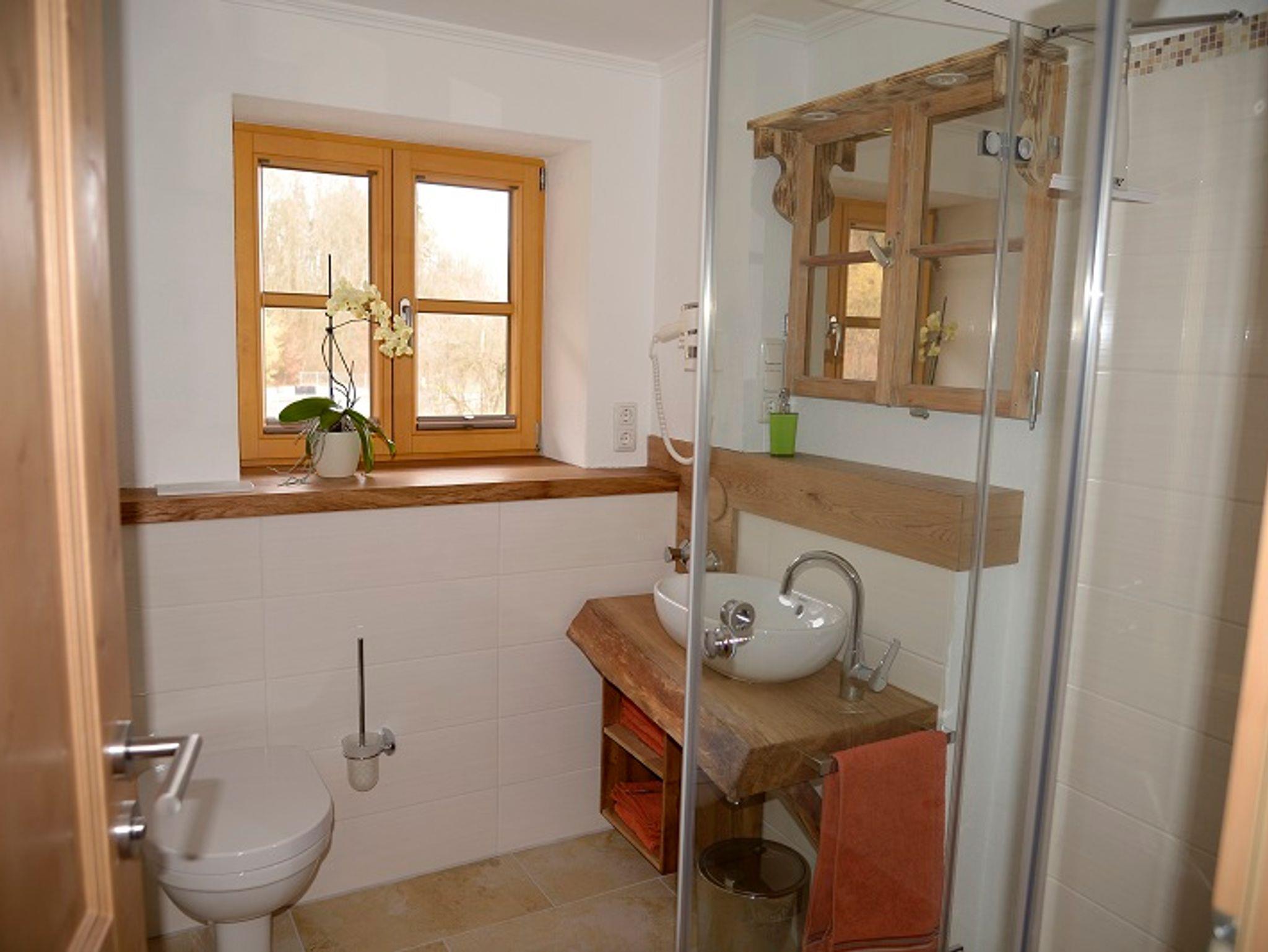 Mühlradstube... am rauschenden Bach! Unser Schmuckstück im Haus der Mühle zu Waching ist eine in handwerklicher Eigenarbeit gestaltete 2 Zimmer Ferienwohnung mit 36 qm im modernen alpenländischen Stil. Die Ferienwohnung ist hochwertig ausgestattet mit Naturholzböden/Türen und Möbeln, im separaten Schlafzimmer ist das Himmelbett, das mit Bettwäsche bezogen ist. Neben dem Kleiderschrank ist ein großer Spiegel mit Kofferablage. In allen Räumen ist eine Fußbodenheizung vorhanden. Die Küche ist vollwertig ausgestattet incl. Spülmaschine, Ceranfeld, ausreichend Geschirr, Gläser etc. Kühlschrank mit Kühlfach, der großzügige Essbereich befindet sich direkt in der Küche. Für gemütliche Stunden gibt es ein Sofa und natürlich einen Flachbild-TV mit SAT. Im Bad ist eine exklusive Sanitär-Ausstattung. Die Handtücher, Fön und Toilettenartikel sind vorhanden. Im Flur befindet sich die Garderobe.
